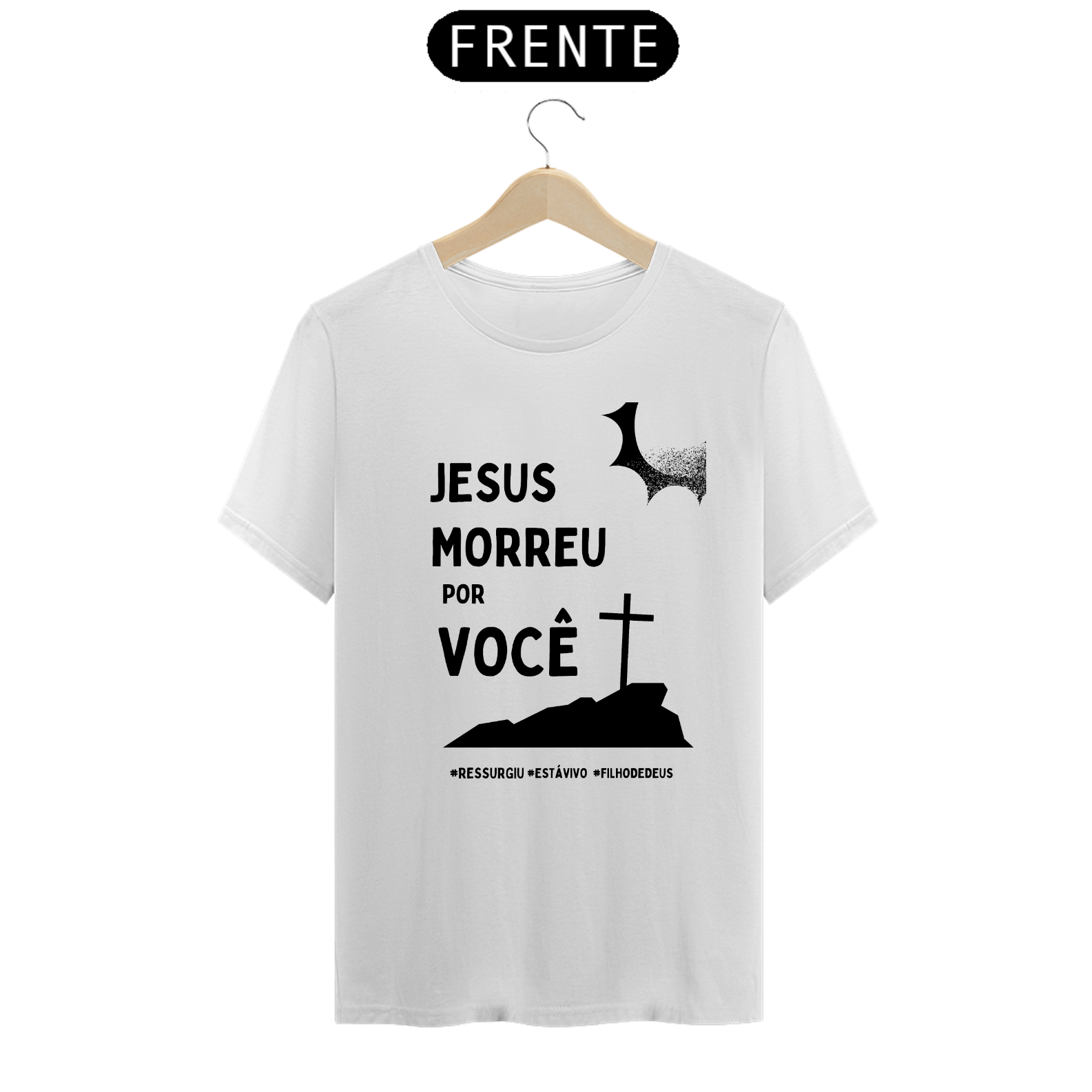 Hashtags: #JesusMorreuPorVocê #Fé #Cristianismo #MensagemDeAmor #Sacrifício #Salvação #ModaCristã #CamisetaReligiosa #EstiloComFé #JesusAmaVocê
