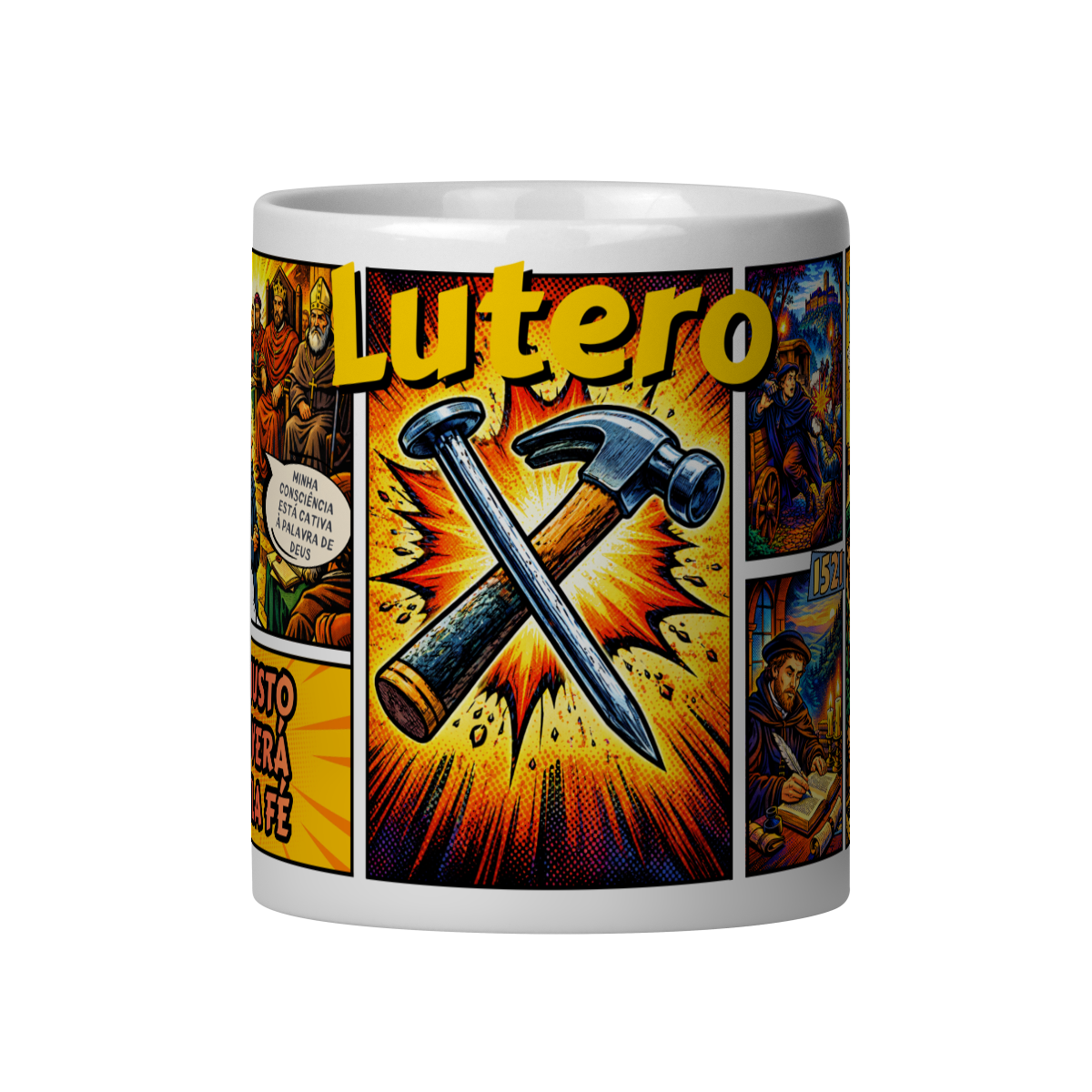 Essa caneca é inspirada em um dos Guardiões da Fé, disposto a morrer pela verdade do evangelho em seu tempo e tocando gerações futuras.