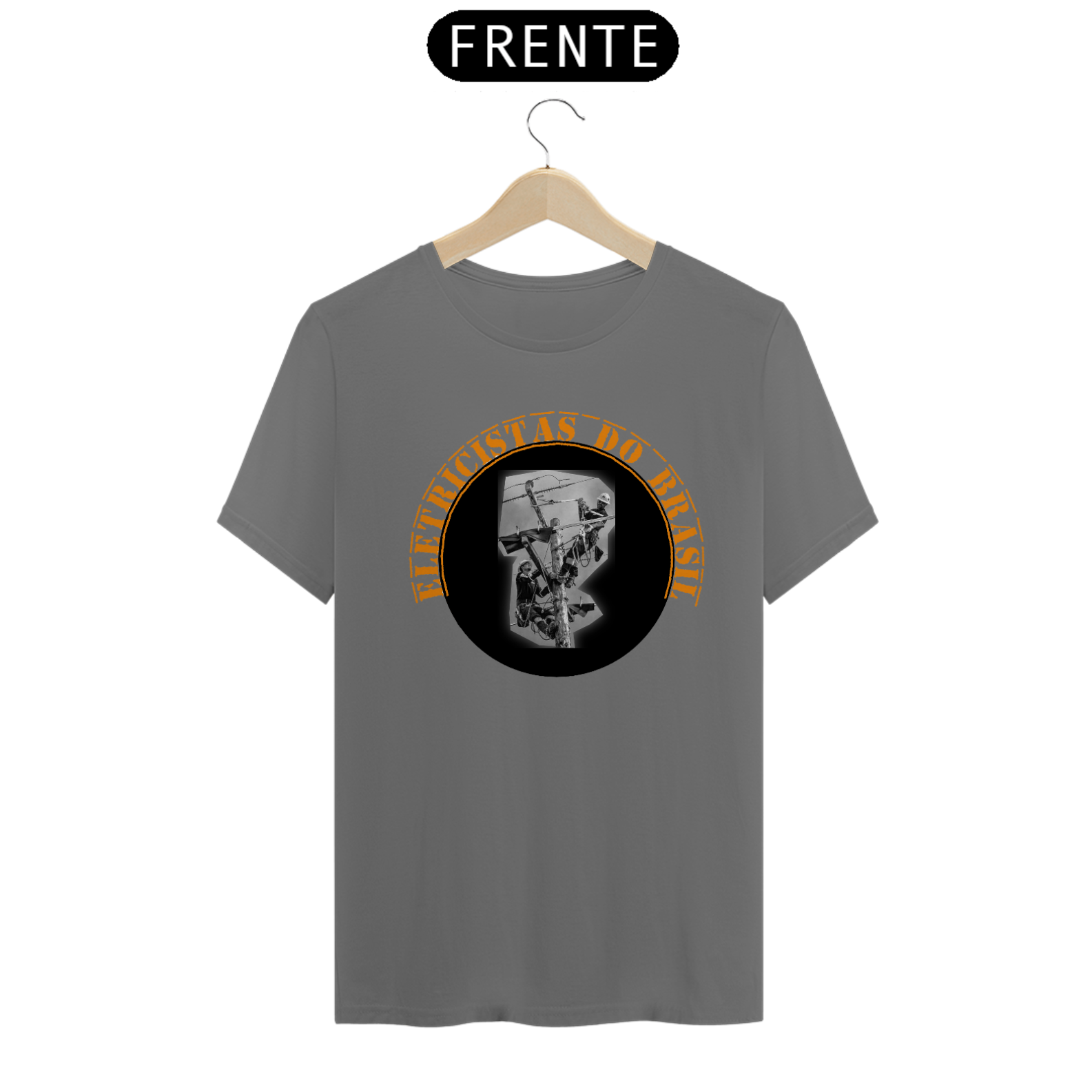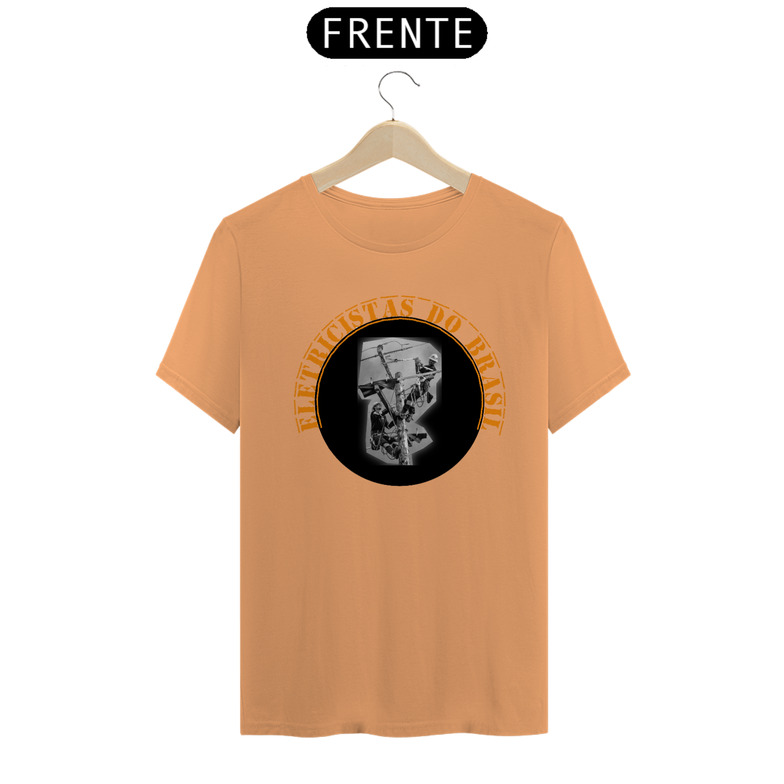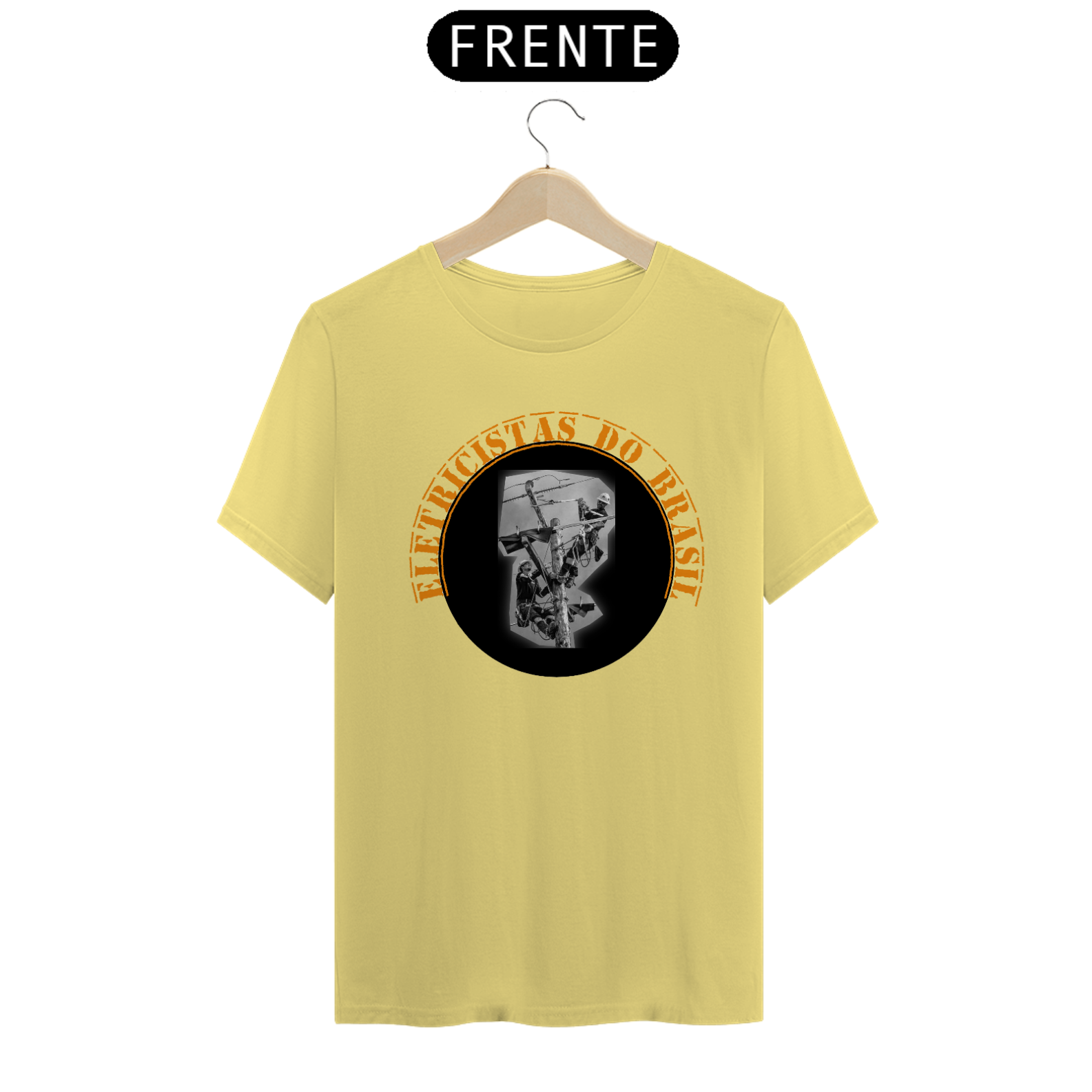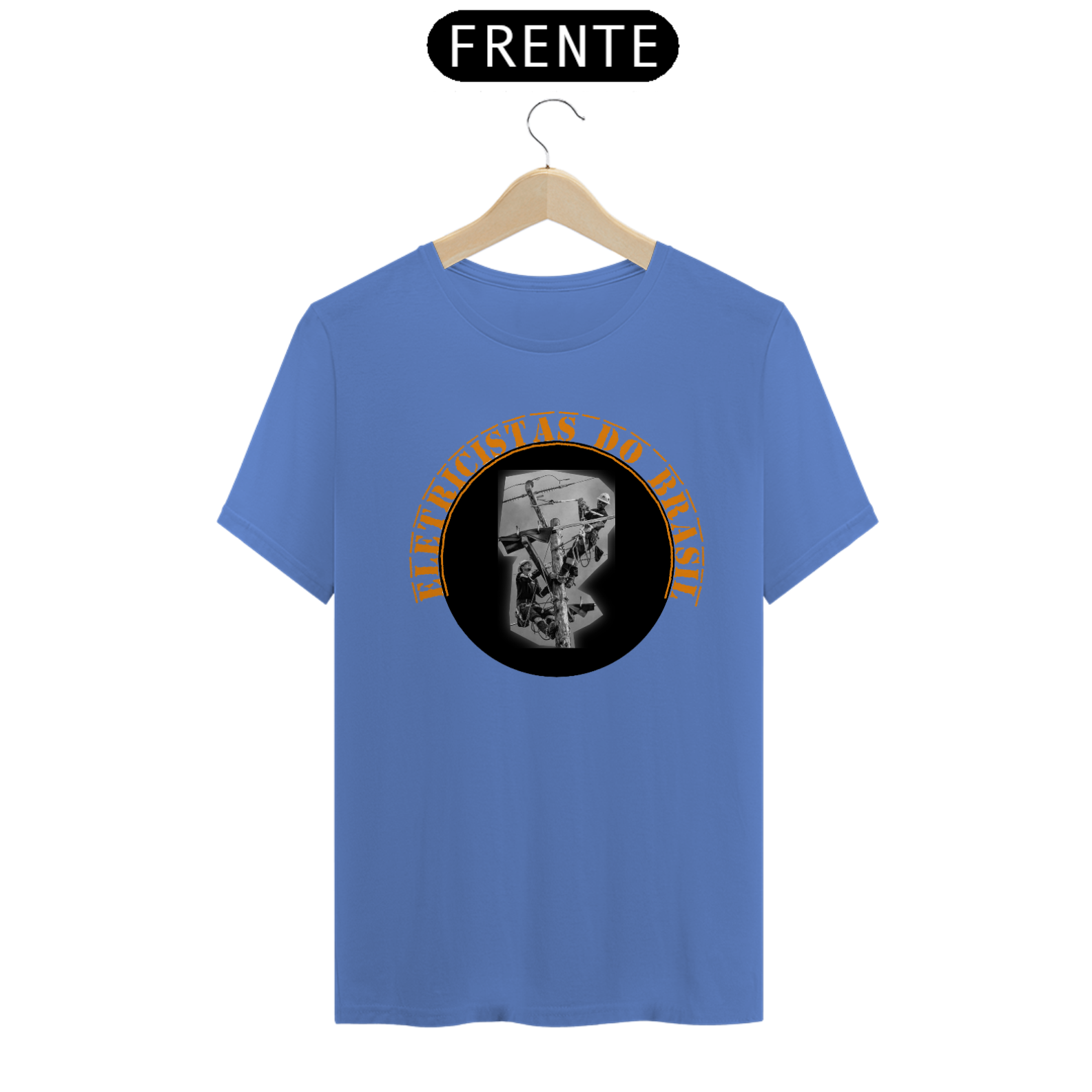 A cena, envolta pela frase em curvatura “ELETRICISTAS DO BRASIL” em laranja vibrante, homenageia quem mantém a energia circulando de norte a sul do país, muitas vezes em condições extremas, mas sempre com profissionalismo e coragem.