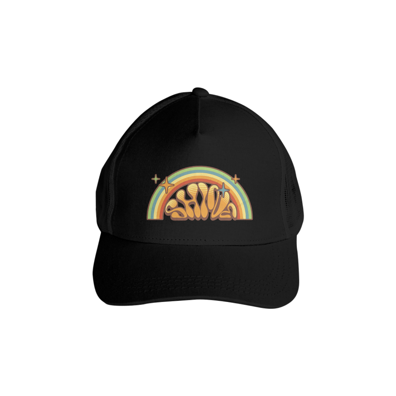 Dê um glow no visual com o boné Shine! Com uma estampa vintage psicodélica, cheia de cores vibrantes, arco-íris e estrelas, esse acessório é perfeito pra quem curte se expressar com leveza, nostalgia e muita atitude. Ideal pra proteger do sol com estilo ou só dar aquele toque fun no look do dia.