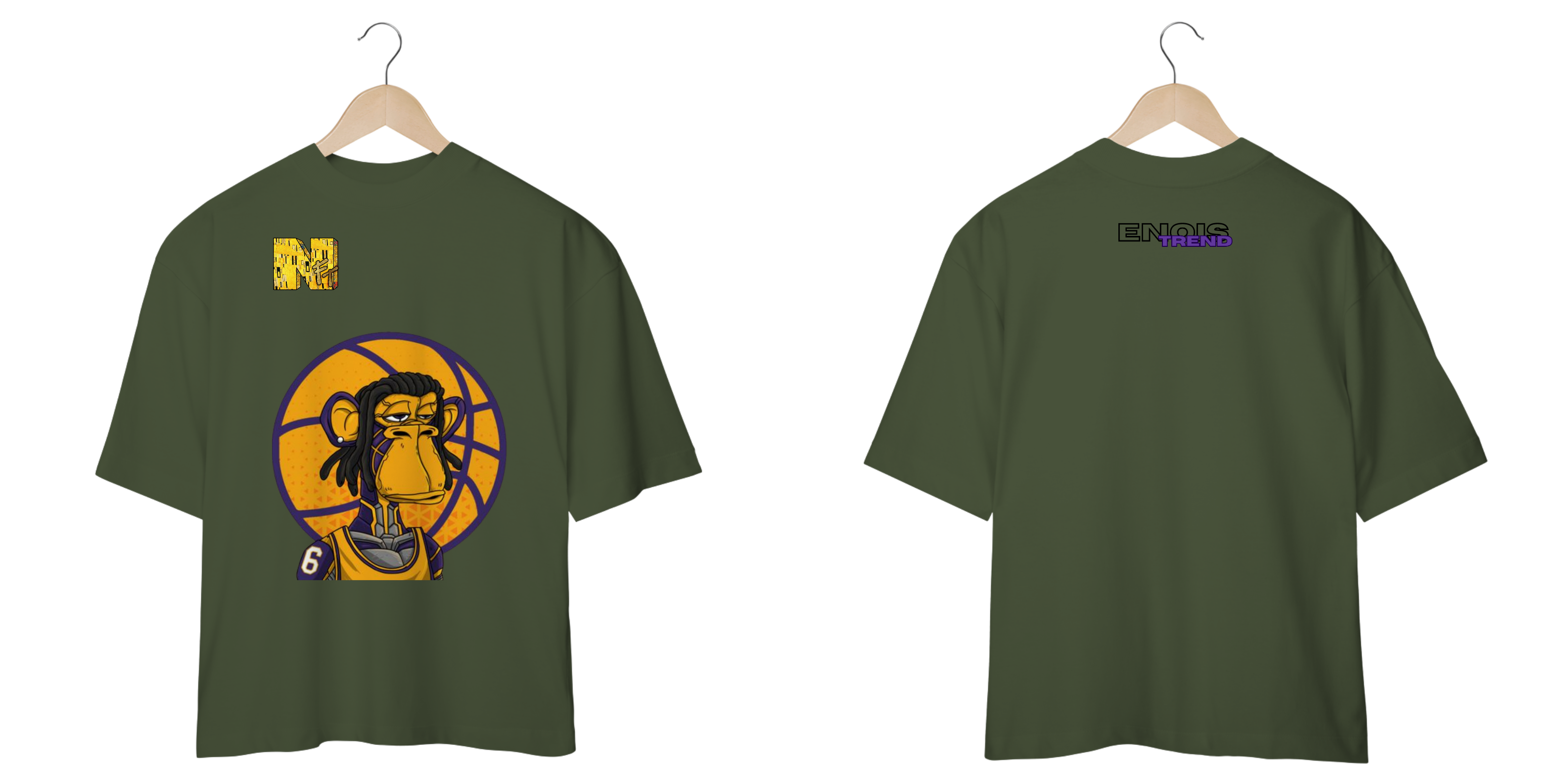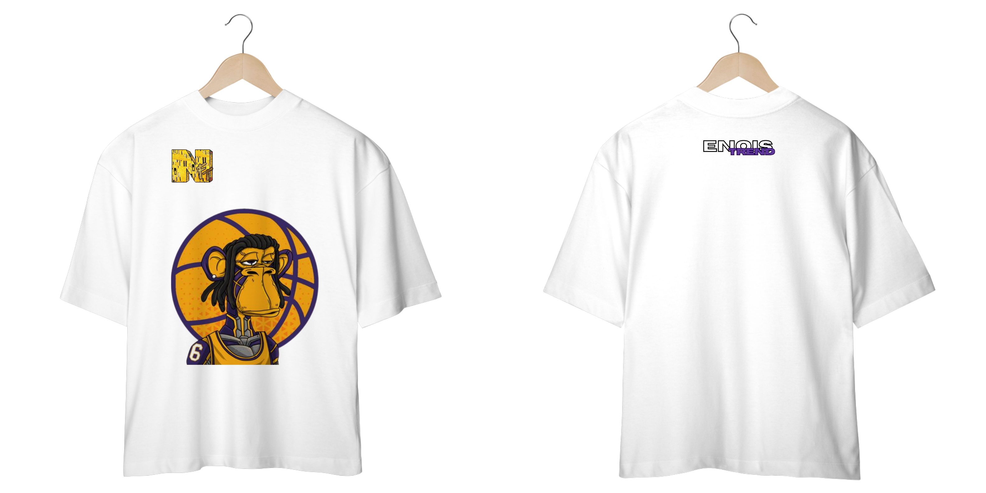 Adicione um toque exclusivo ao seu guarda-roupa com esta incrível camiseta oversized da EnoisTrend, que combina a energia da NBA com a arte digital dos NFTs. Um verdadeiro must-have para os fãs de basquete e cultura pop!