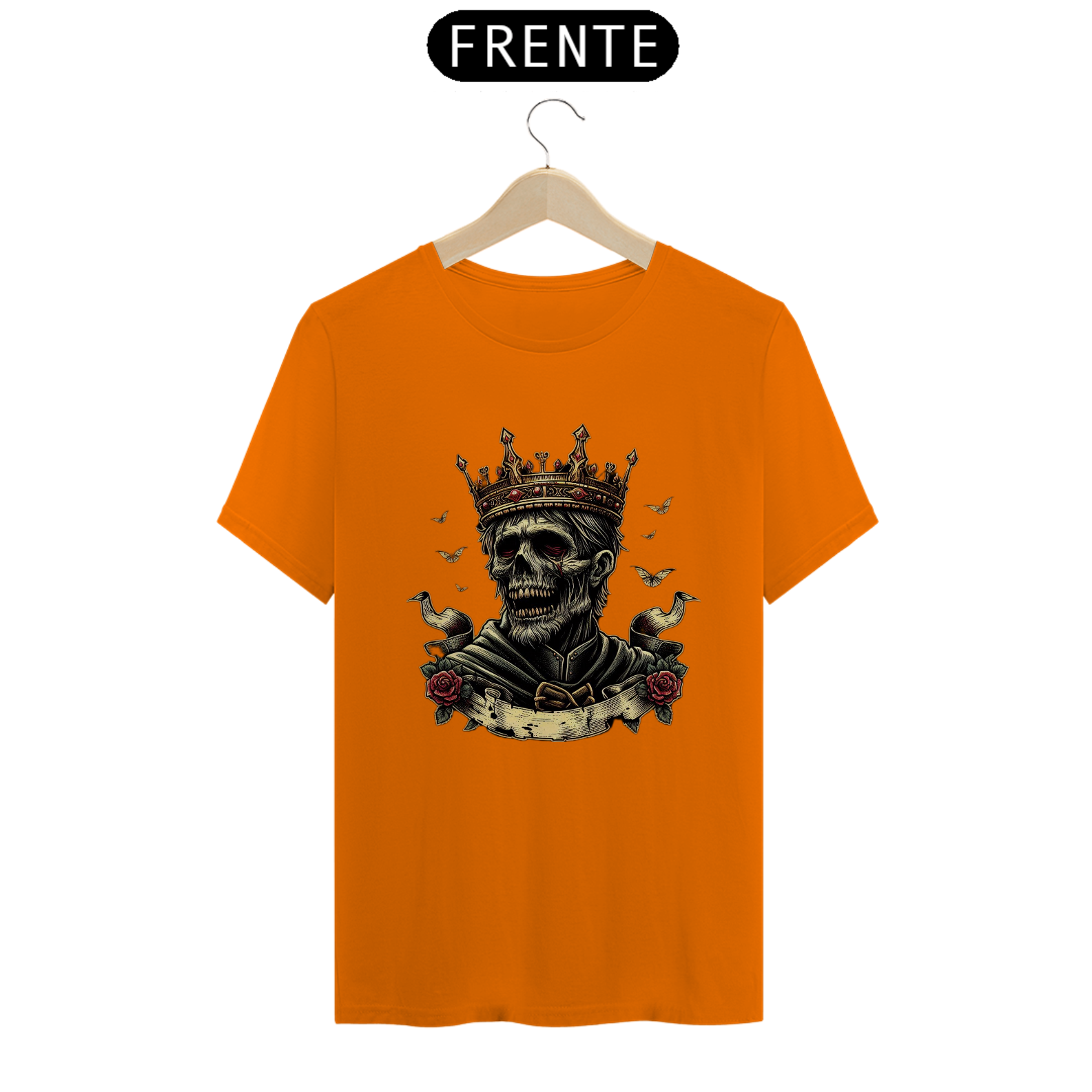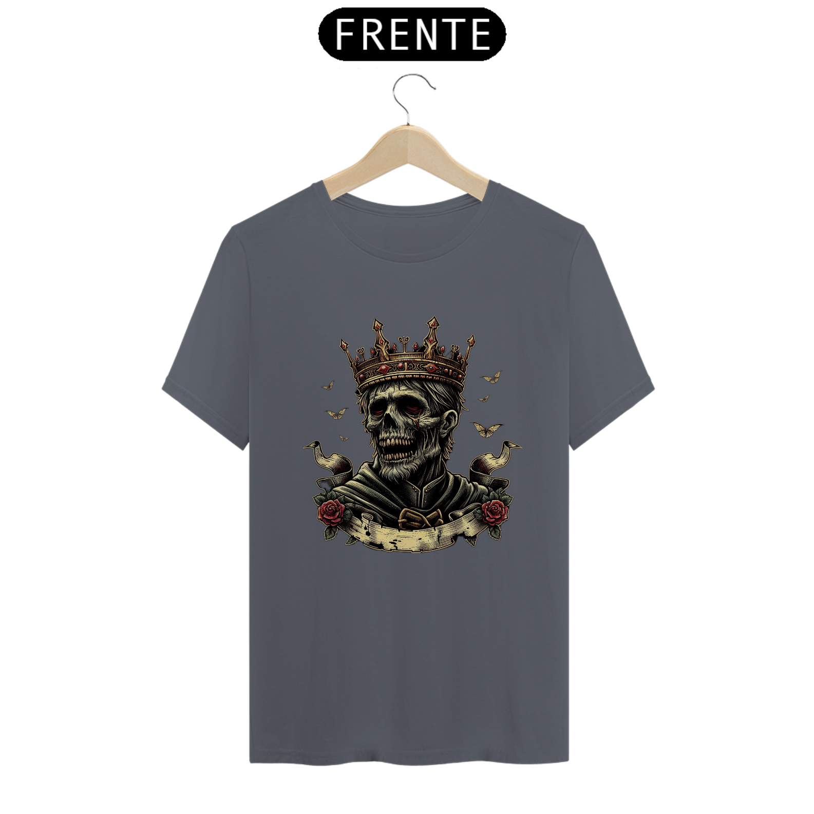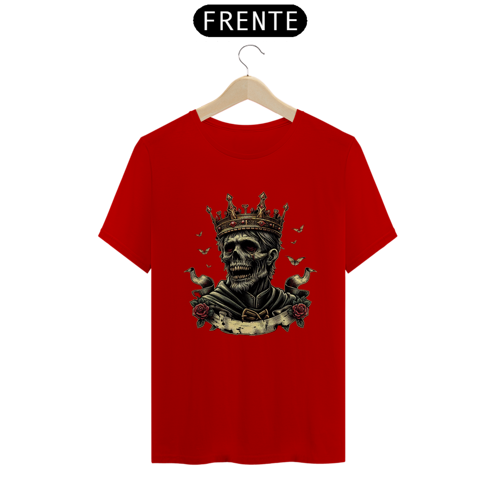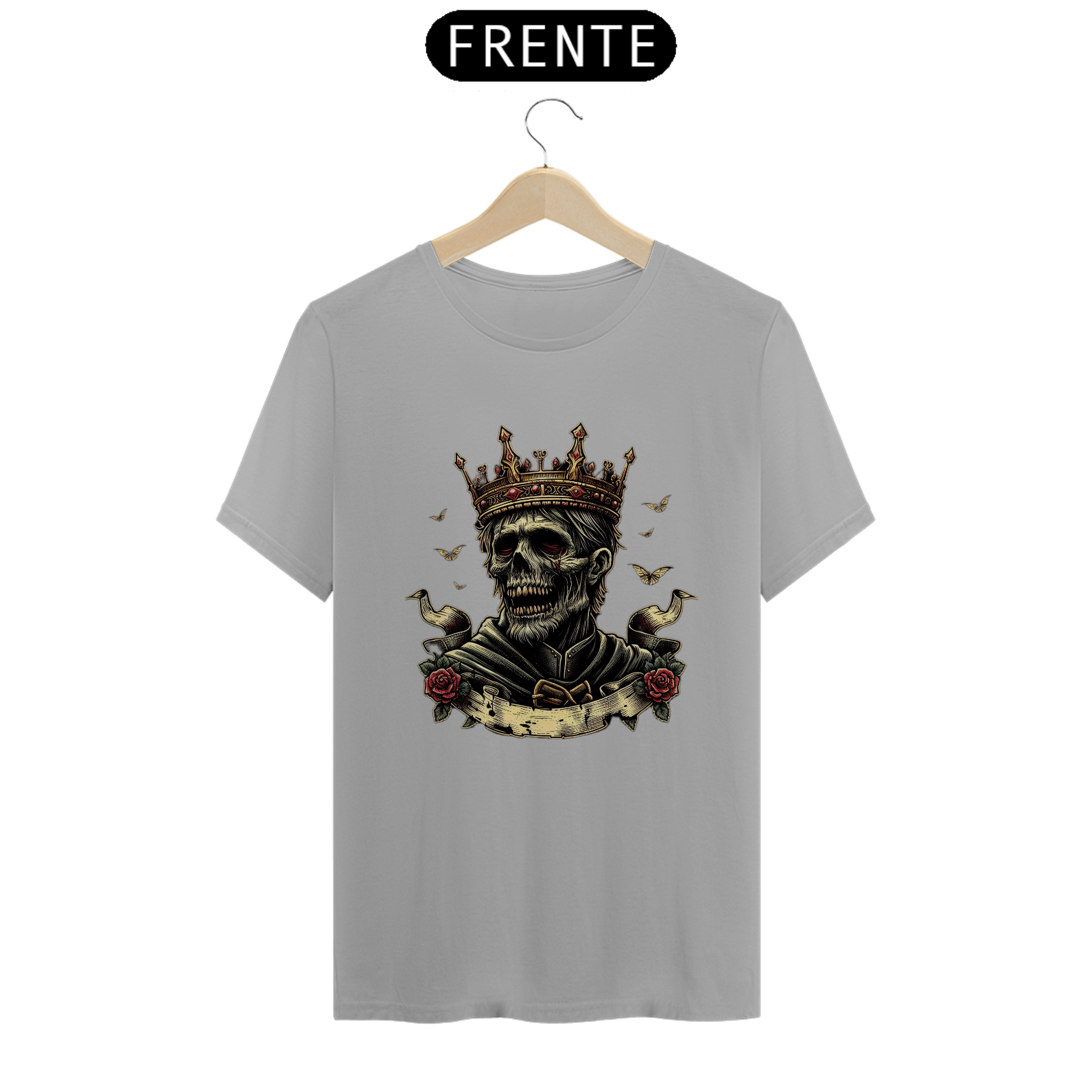 Regência Sobrenatural: Mais do que uma camiseta, é uma peça que traz à tona o poder e a imponência de um rei zumbi. Perfeita para quem busca destacar-se com estilo e uma pitada de horror.