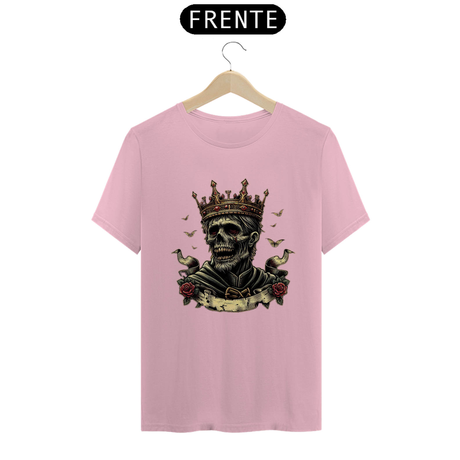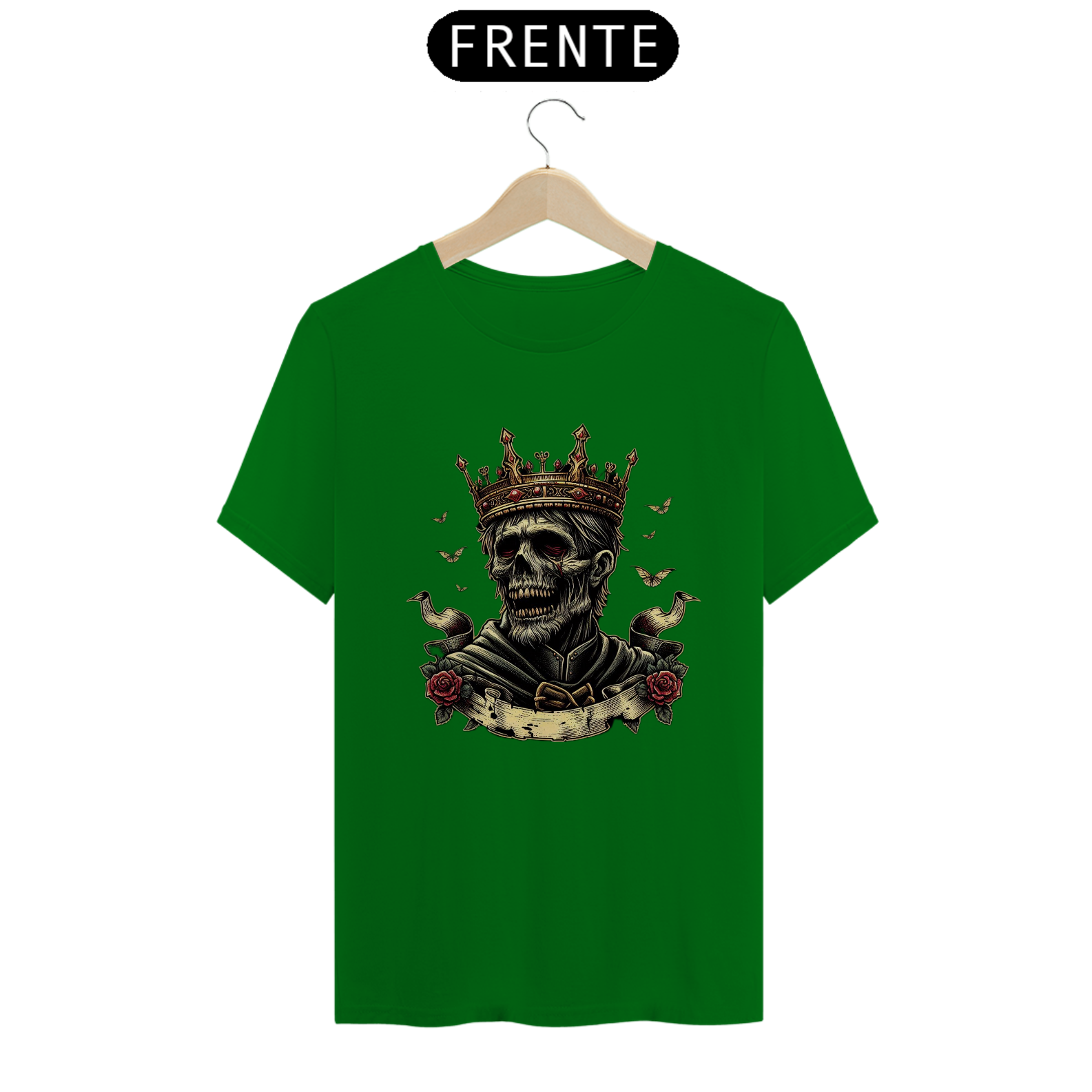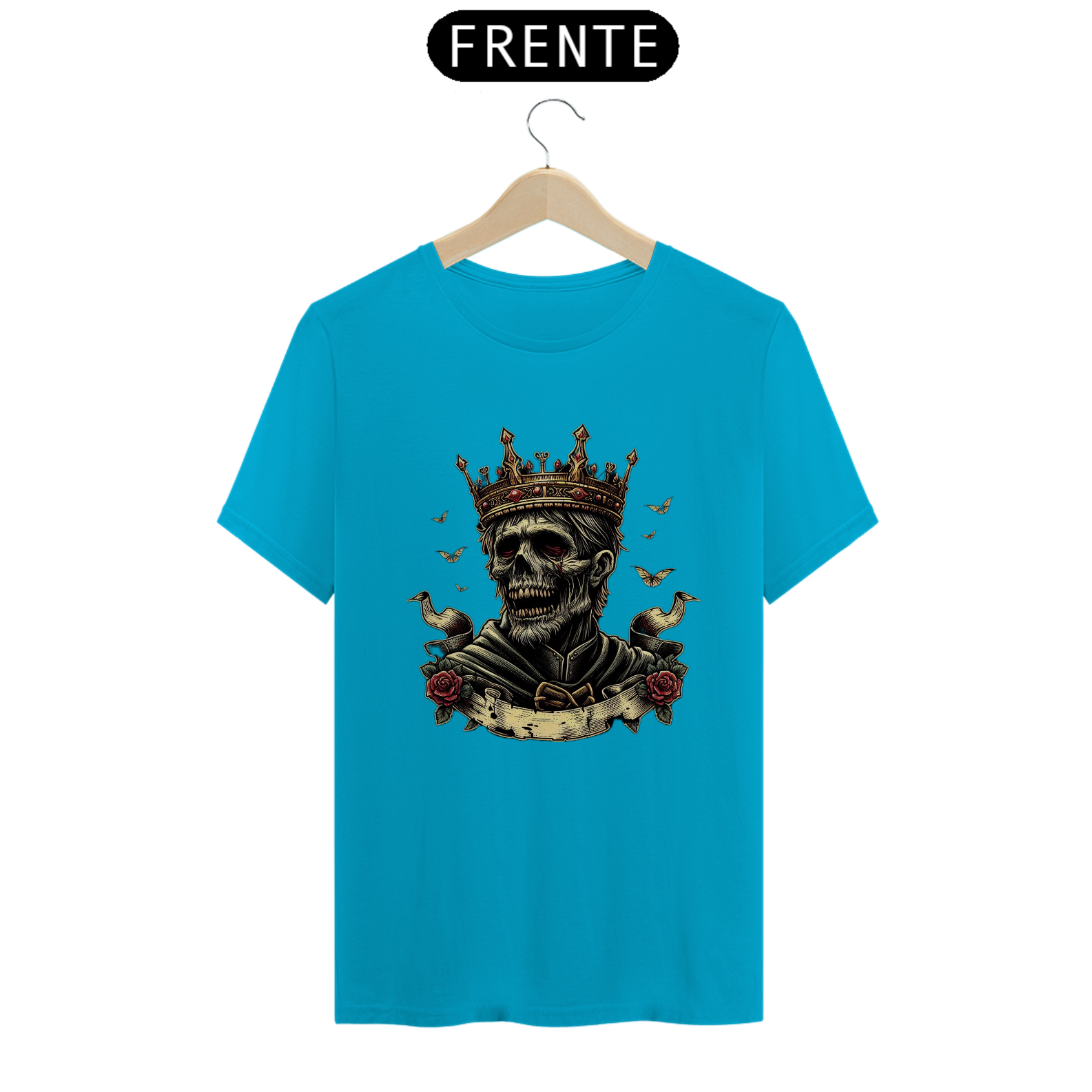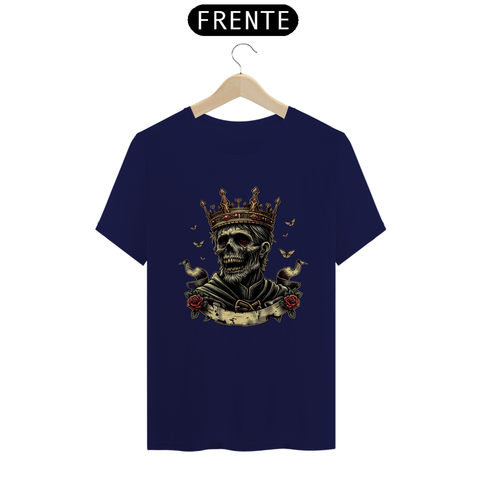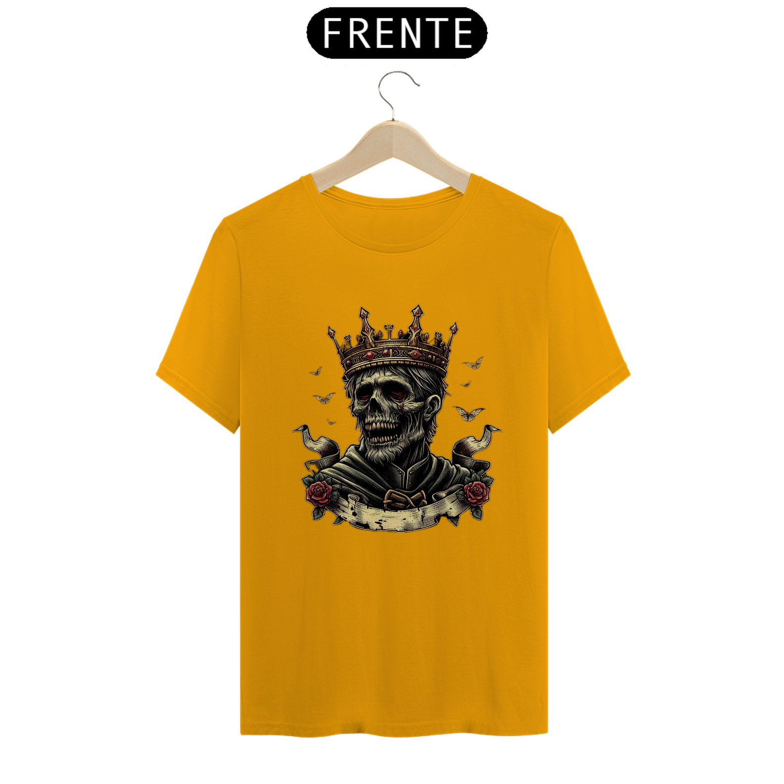Regência Sobrenatural: Mais do que uma camiseta, é uma peça que traz à tona o poder e a imponência de um rei zumbi. Perfeita para quem busca destacar-se com estilo e uma pitada de horror.