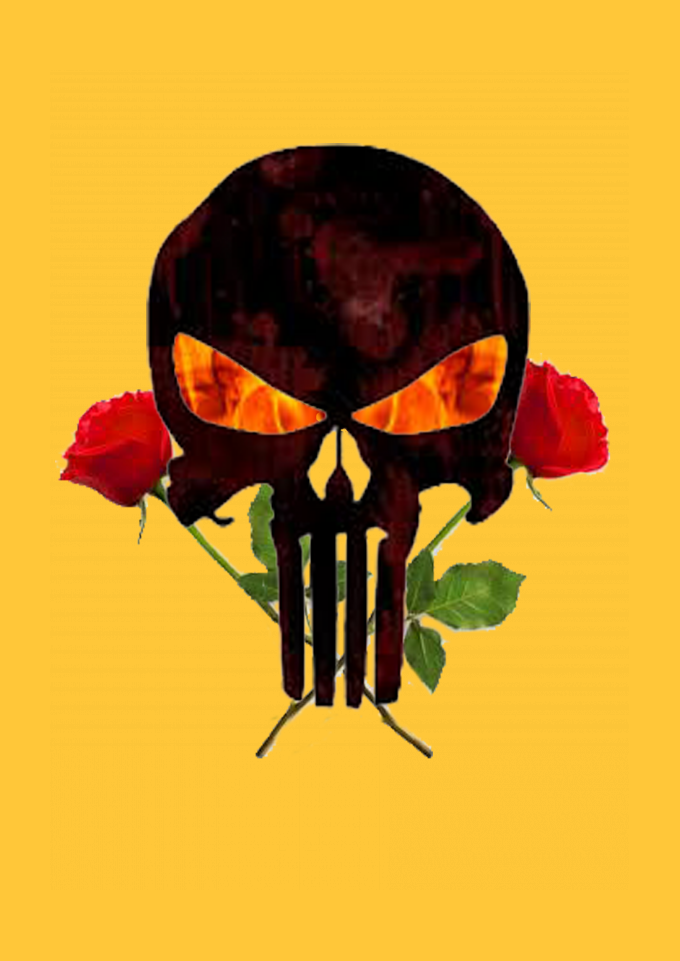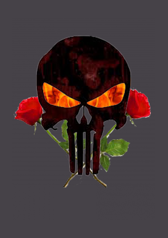 caveira, fogo, flor, rosa