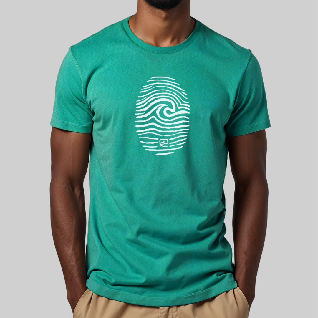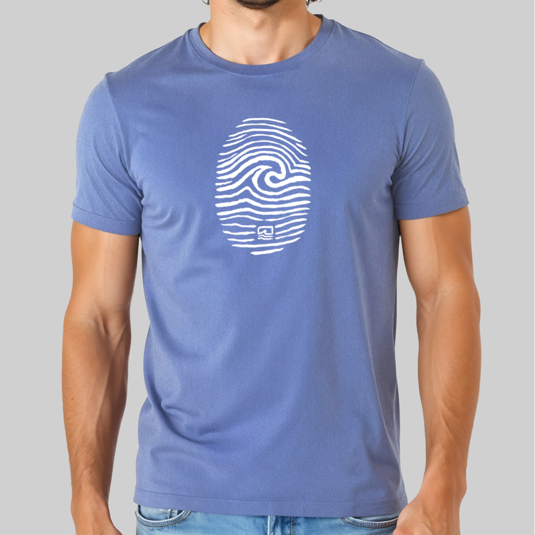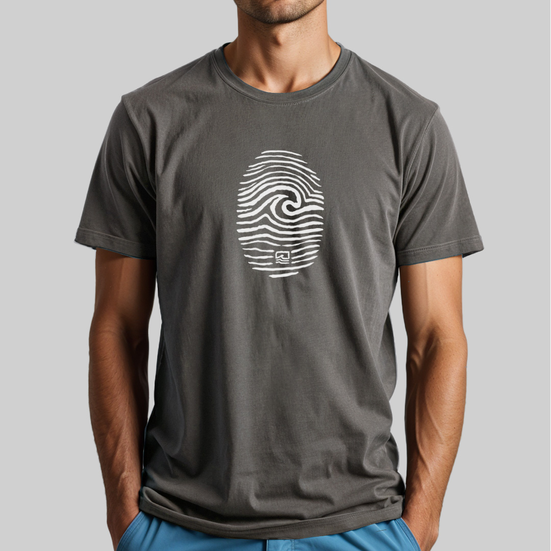 A estampa "Surf ID" une identidade e paixão pelo surf em um design único. Uma impressão digital ganha vida com uma de suas linhas formando uma onda, simbolizando que o surf faz parte de quem você é. Ideal para quem sente o chamado do mar como algo que pulsa na alma, essa peça é um manifesto visual de pertencimento à cultura das ondas.