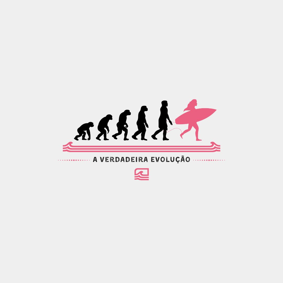 A estampa "A Verdadeira Evolução Mulher" reimagina a teoria da evolução com um toque especial, mostrando que a evolução atinge seu auge em uma surfista. Essa peça celebra a força e a conexão das mulheres com o oceano, destacando o surf como o destino final de uma evolução natural. Ideal para mulheres que vivem o surf e encontram nas ondas sua verdadeira essência.