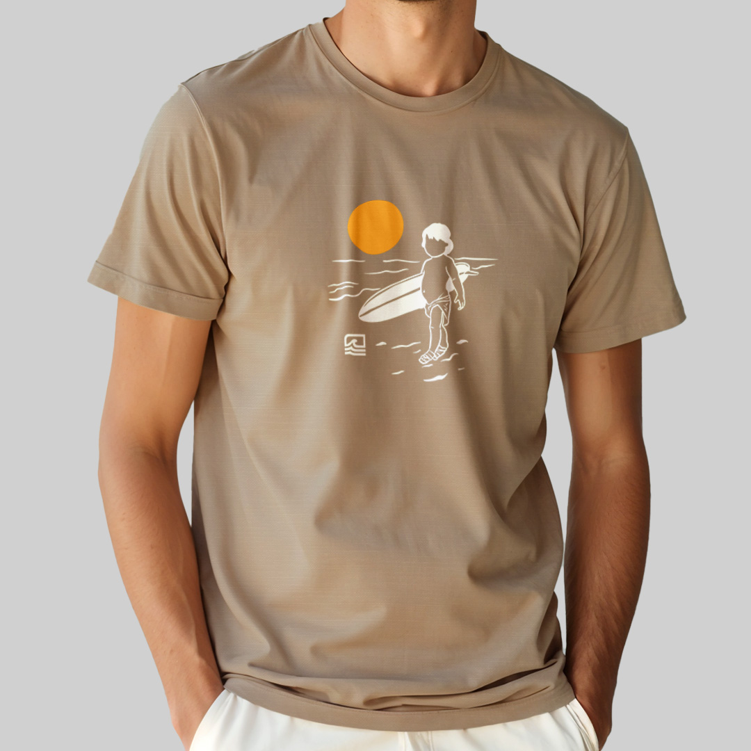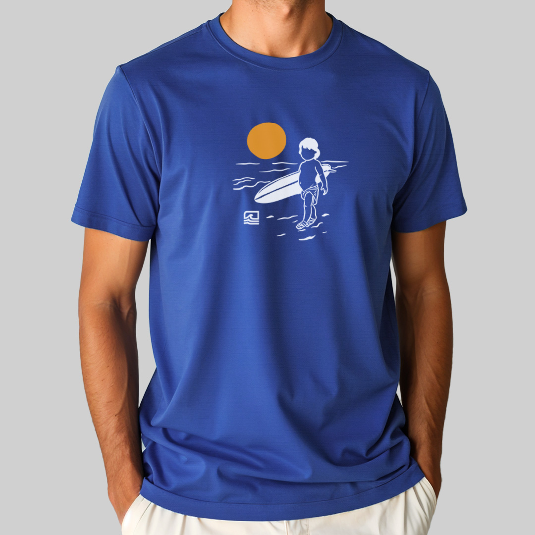 A estampa "Born to Surf" é uma homenagem ao espírito eterno do surf, inspirada na icônica capa da edição número 18 da revista Surf Guide (outubro de 1964). Com uma ilustração minimalista, ela retrata um bebê carregando uma prancha na praia, simbolizando que alguns já nascem com o chamado do mar. Perfeita para quem acredita que o surf é um destino, não apenas um esporte.