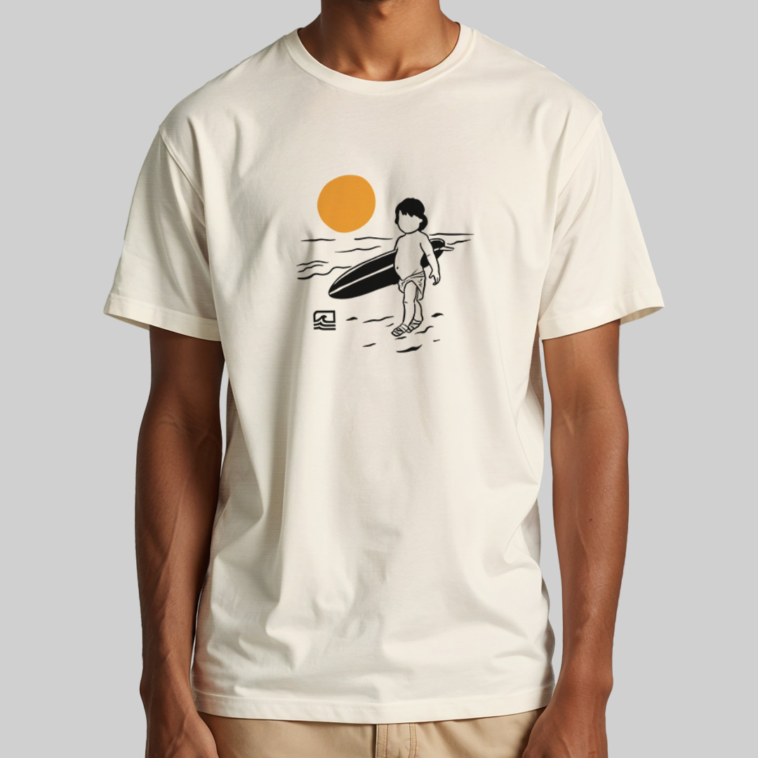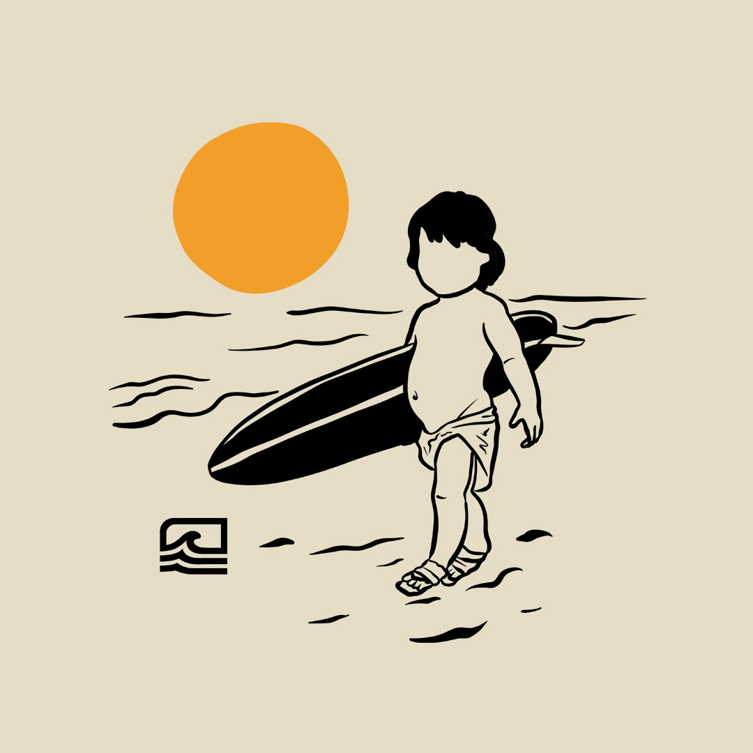 A estampa "Born to Surf" é uma homenagem ao espírito eterno do surf, inspirada na icônica capa da edição número 18 da revista Surf Guide (outubro de 1964). Com uma ilustração minimalista, ela retrata um bebê carregando uma prancha na praia, simbolizando que alguns já nascem com o chamado do mar. Perfeita para quem acredita que o surf é um destino, não apenas um esporte.