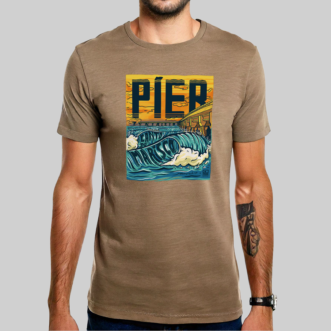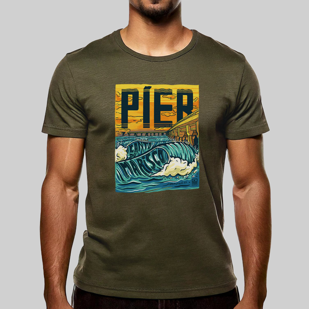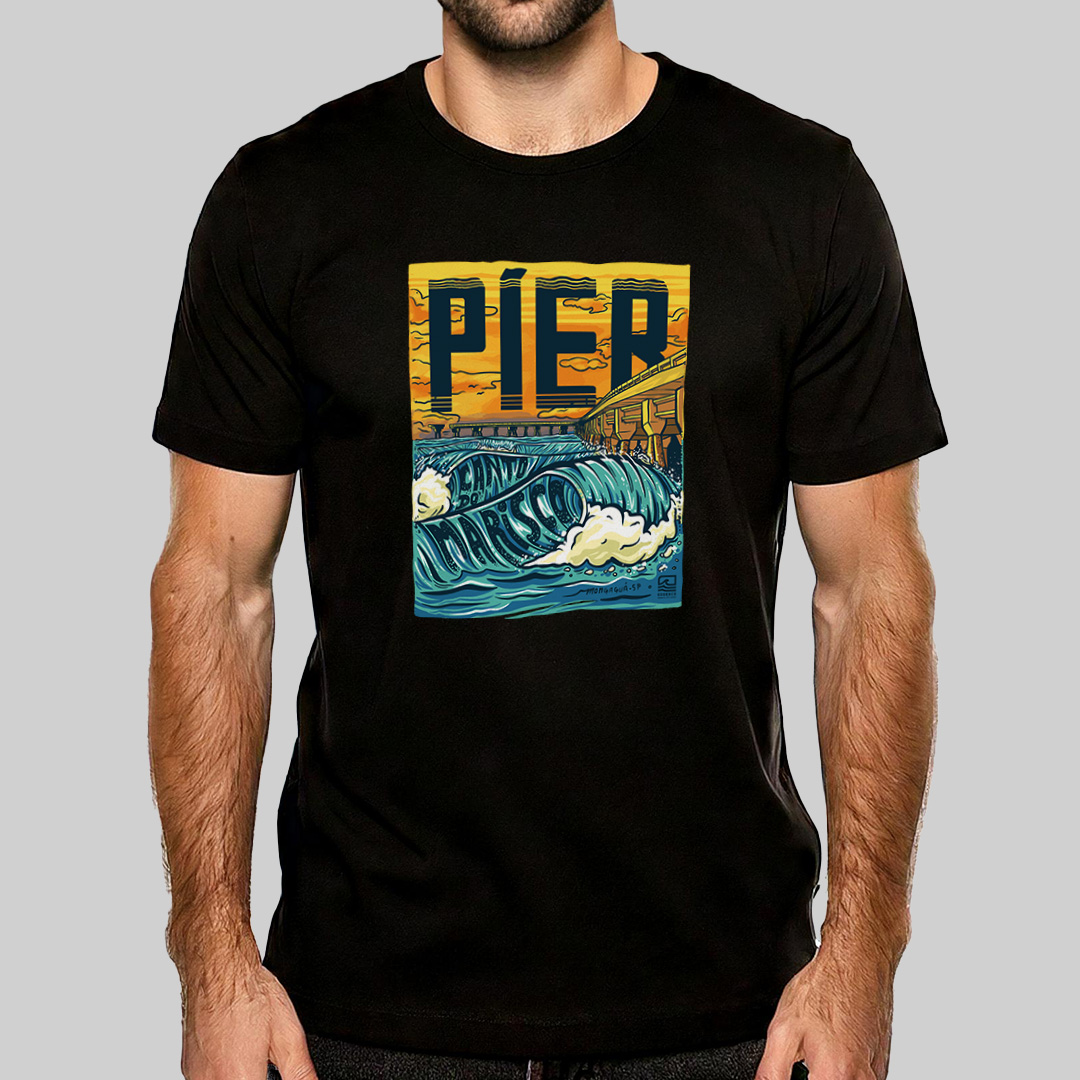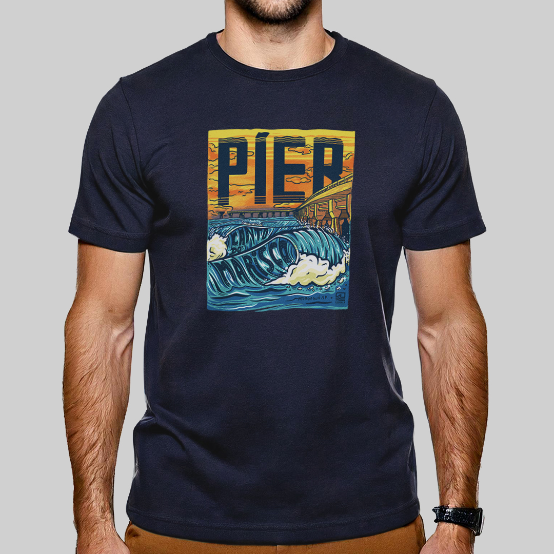 "Píer, Canto do Marisco" é uma homenagem ao icônico píer de Mongaguá, no litoral sul de São Paulo, pico preferido dos surfistas locais. A estampa traz uma ilustração detalhada do lado esquerdo do píer com boas ondas rolando. Para quem conhece suas ondas, essa camiseta é um símbolo de amor pelo surf e pela cultura local. Carregue um pedacinho de Mongaguá no peito com essa estampa cheia de personalidade!