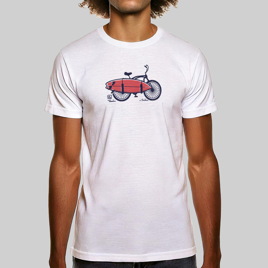 A estampa "Praiana" combina o espírito de aventura e liberdade com o estilo de vida praiano. Com uma ilustração de uma bicicleta estilo praiana carregando uma prancha no suporte, essa estampa é perfeita para quem vive o surf desde o momento em que sai de casa até chegar às ondas. Ideal para surfistas que aproveitam cada etapa da jornada, do pedal até o mar, essa peça traz o charme e a simplicidade de quem ama a praia e o surf.