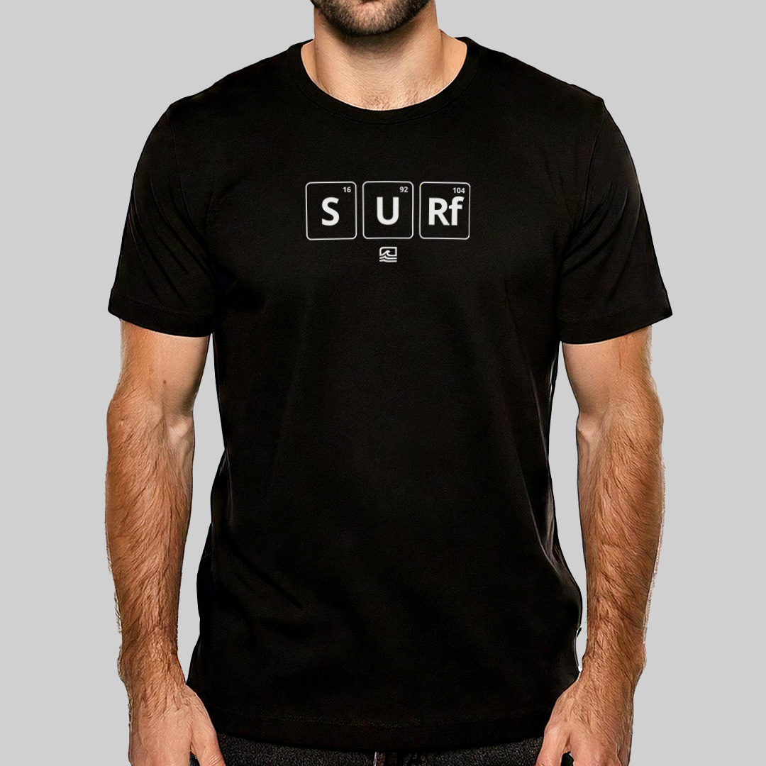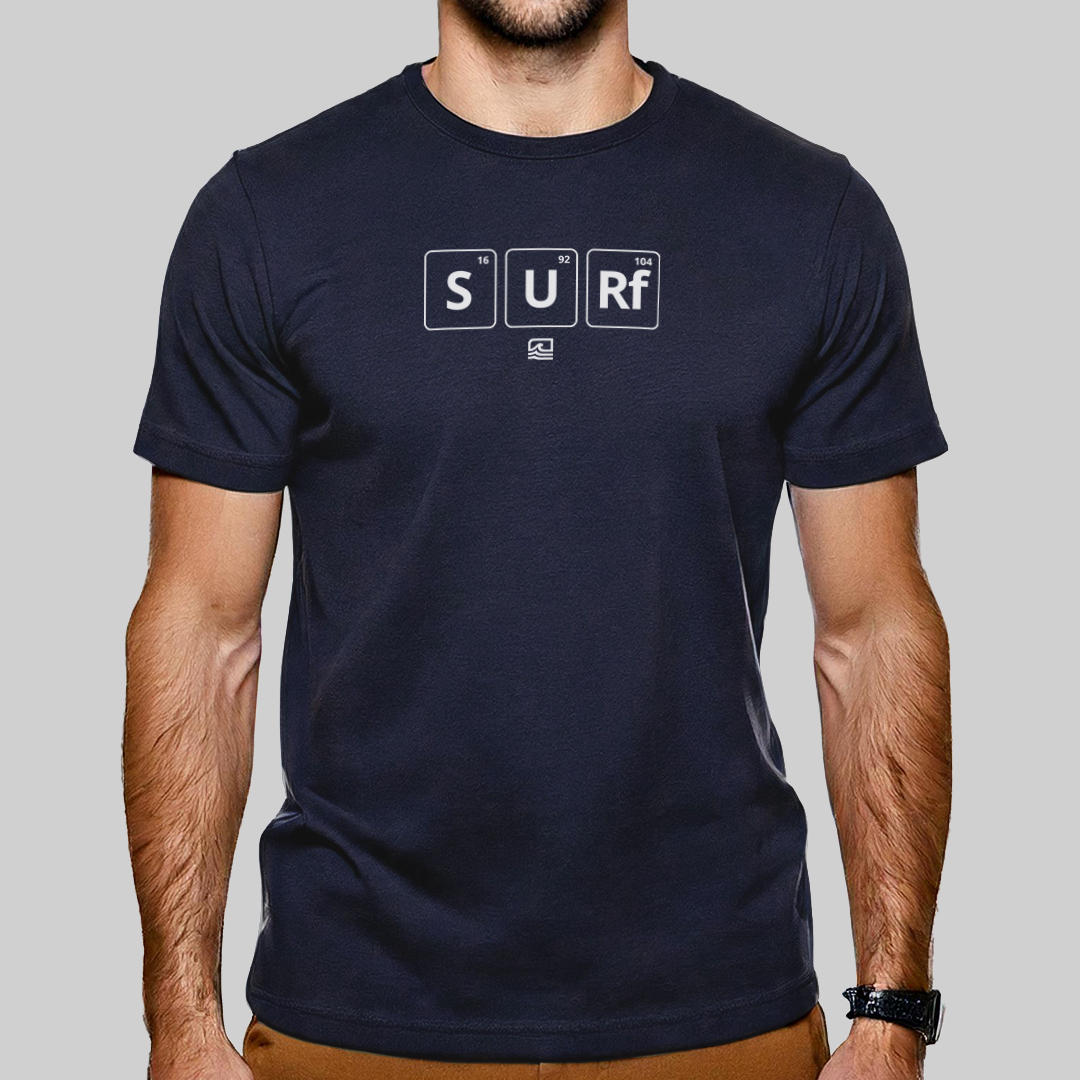 A estampa "Química Surf" une ciência e paixão pelo mar de forma criativa. Com os elementos da tabela periódica formando a palavra "SURF", ela é perfeita para quem sente que o surf está na fórmula da sua vida. Um design inteligente que combina estilo, conhecimento e amor pelas ondas.