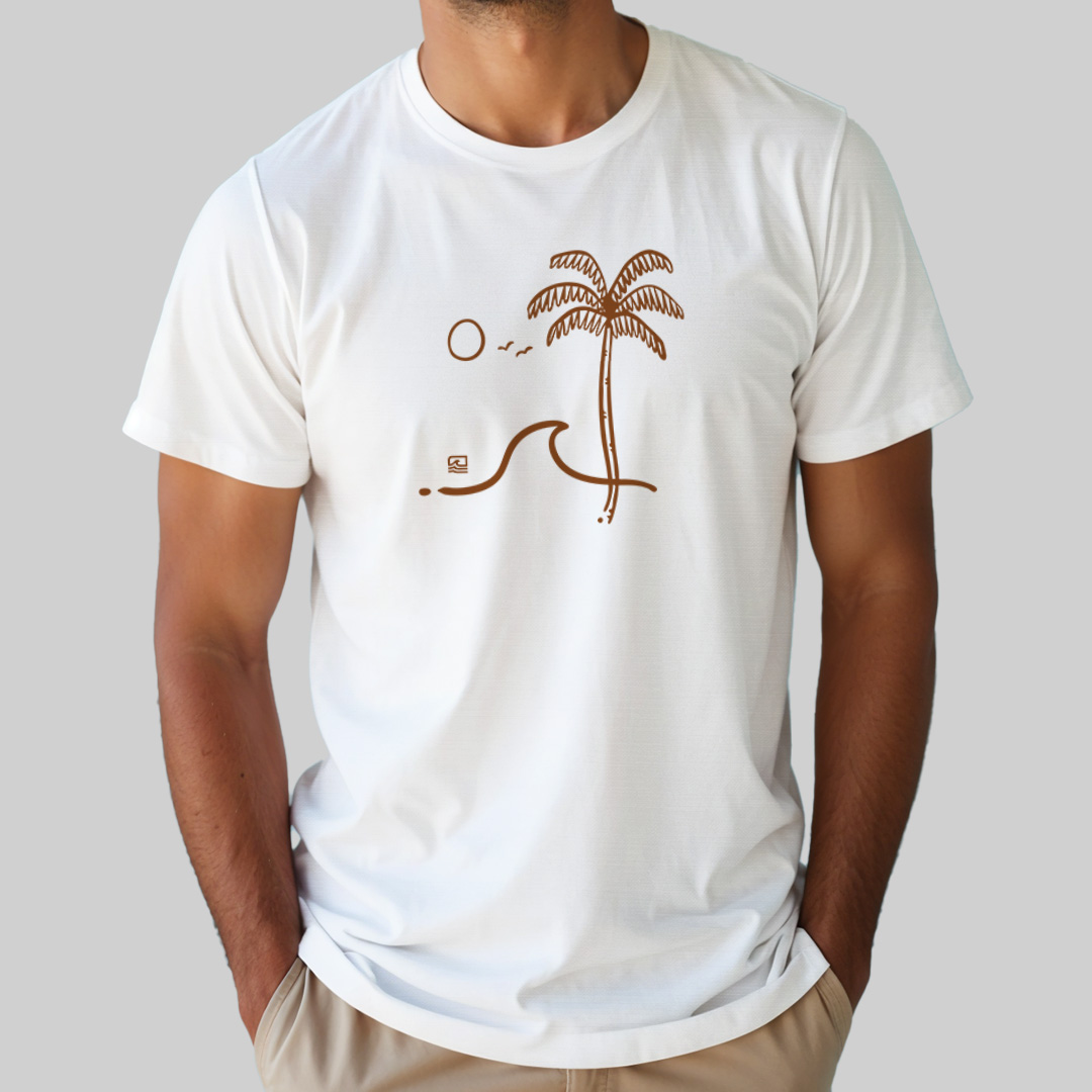 A estampa "Rascunho do Paraíso" traz a essência da praia em traços simples e descomplicados. Coqueiros, ondas, sol e gaivotas formam um desenho em estilo de rascunho, capturando aquele momento perfeito que só o litoral pode oferecer. Para quem vive com a cabeça no paraíso e o coração na brisa do mar, essa peça é pura leveza e descontração.