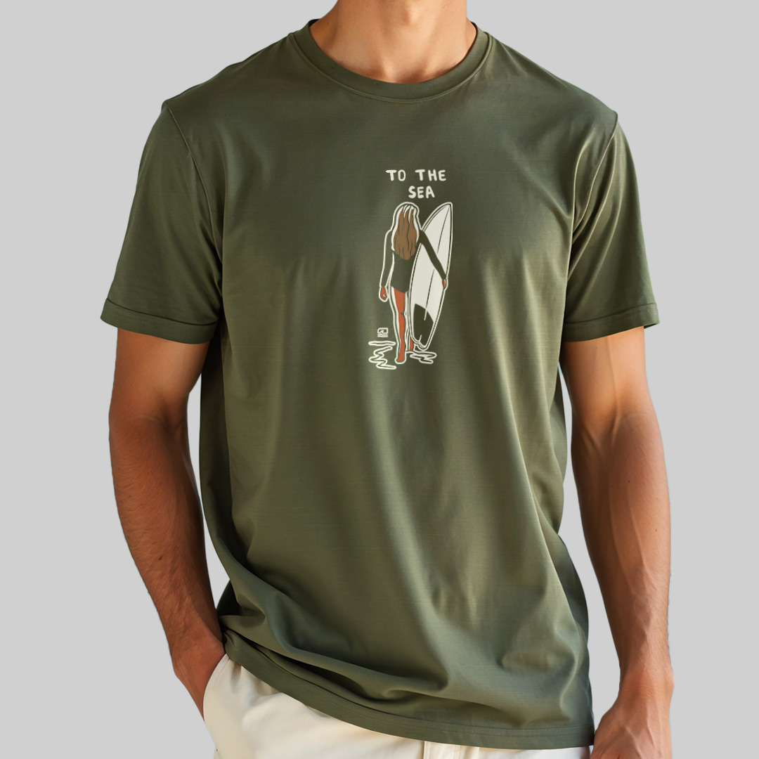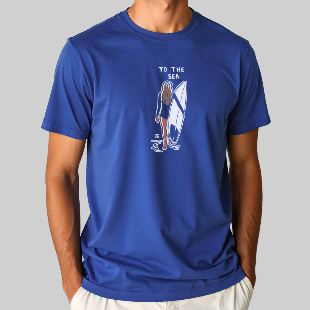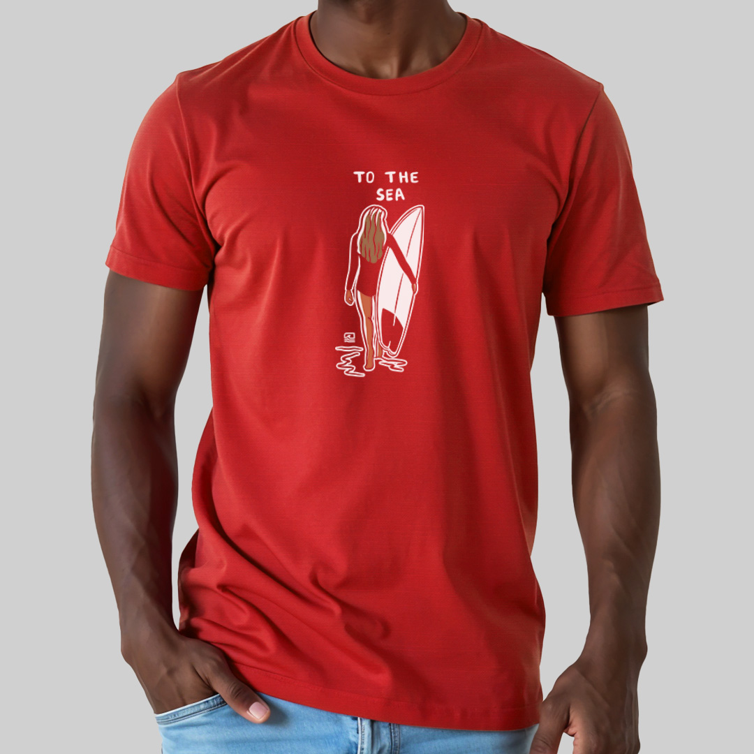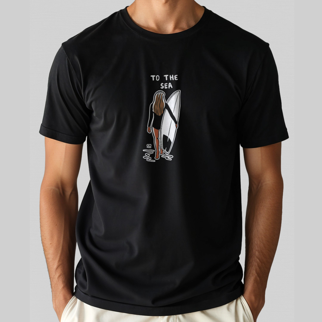 A estampa "To the Sea" é uma homenagem ao momento especial de conexão entre a surfista e o mar. Com traços simples e elegantes, a arte mostra uma mulher segurando sua prancha e caminhando em direção ao oceano, simbolizando o amor e a busca pelas ondas. Ideal para quem vive o surf de forma leve e autêntica, essa camiseta representa a essência da jornada até o mar, onde a liberdade e a aventura se encontram.