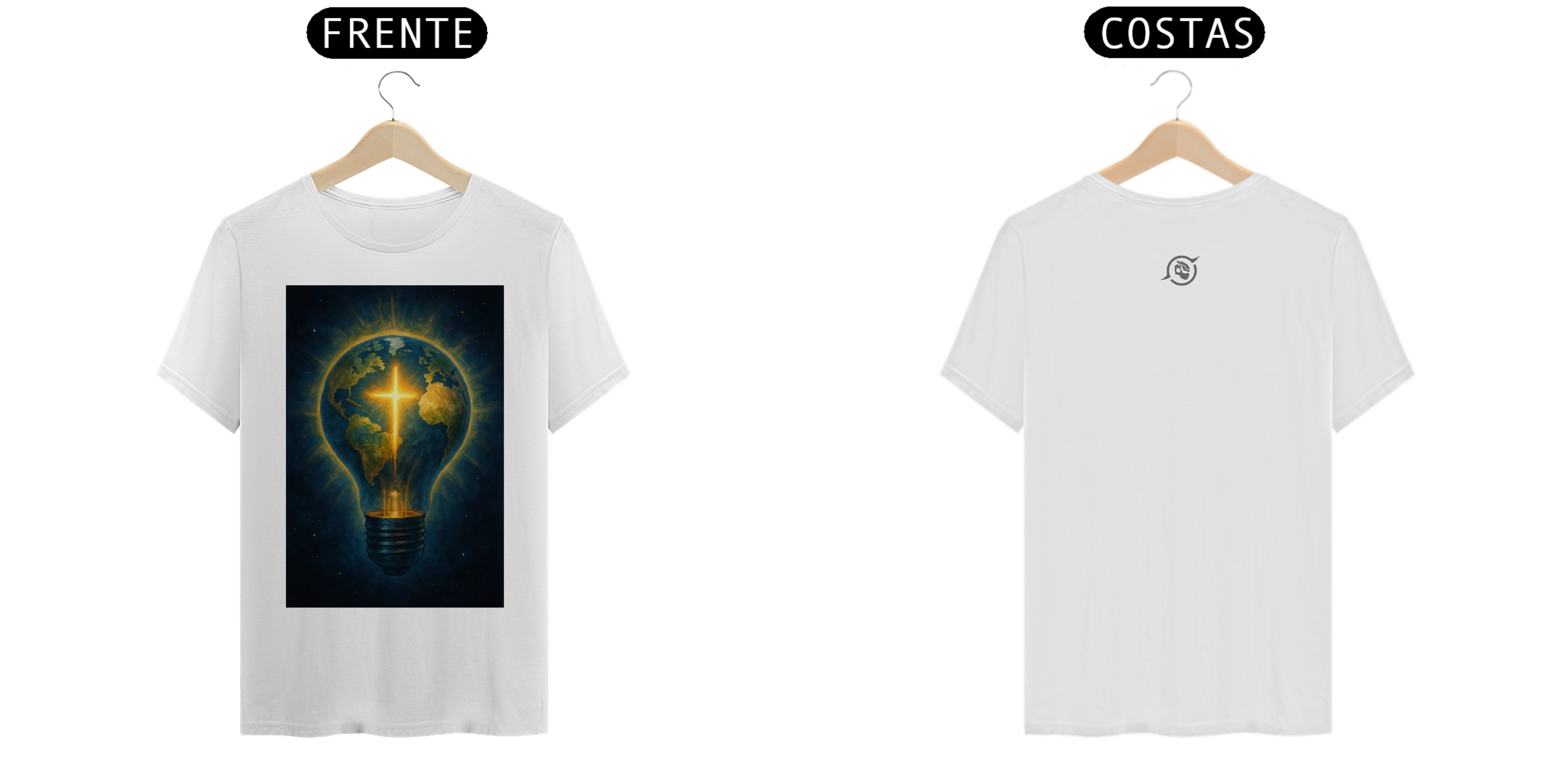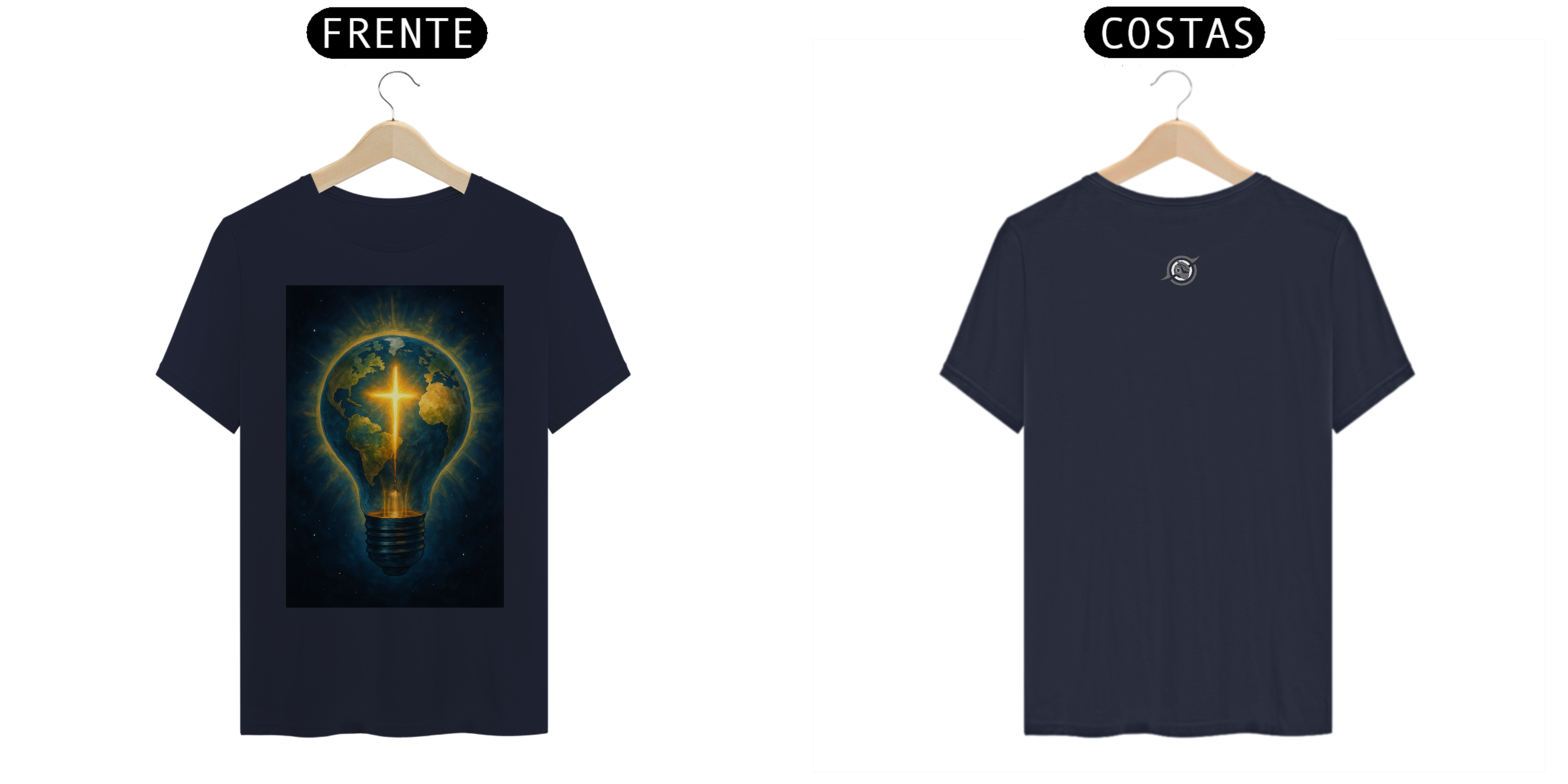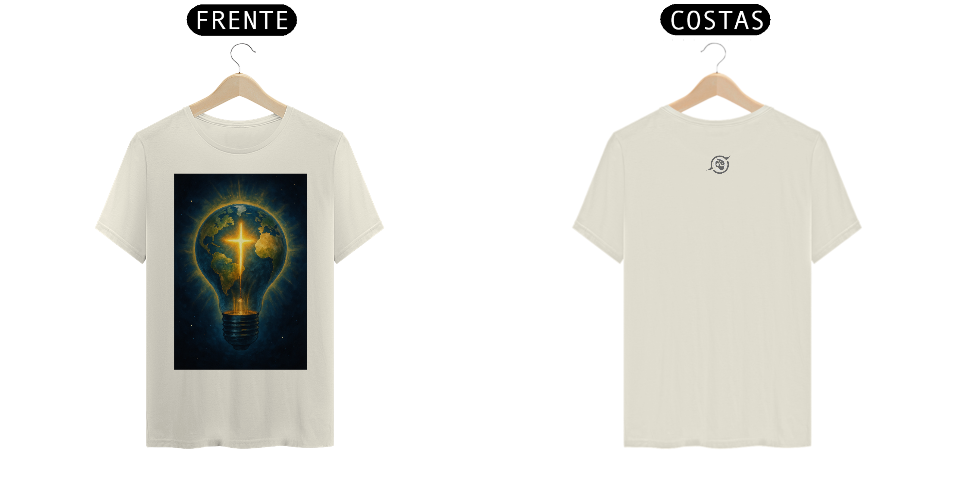 A arte estampa o contraste: um planeta coberto de sombras, atravessado por uma cruz de energia pura. Porque a luz que vem de dentro não se apaga — ela guia. E quem veste essa peça entende: estilo é expressão, mas presença é missão.