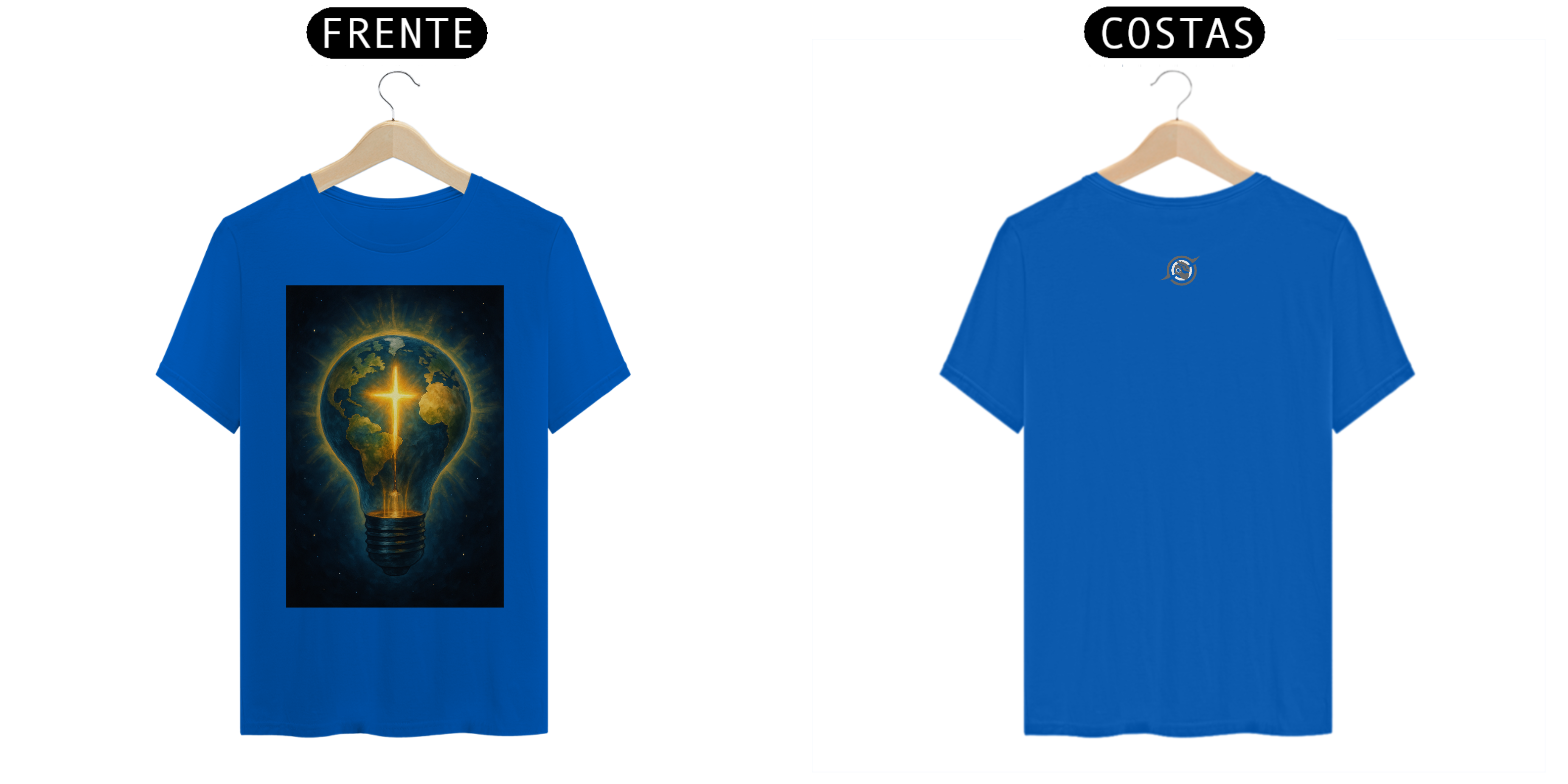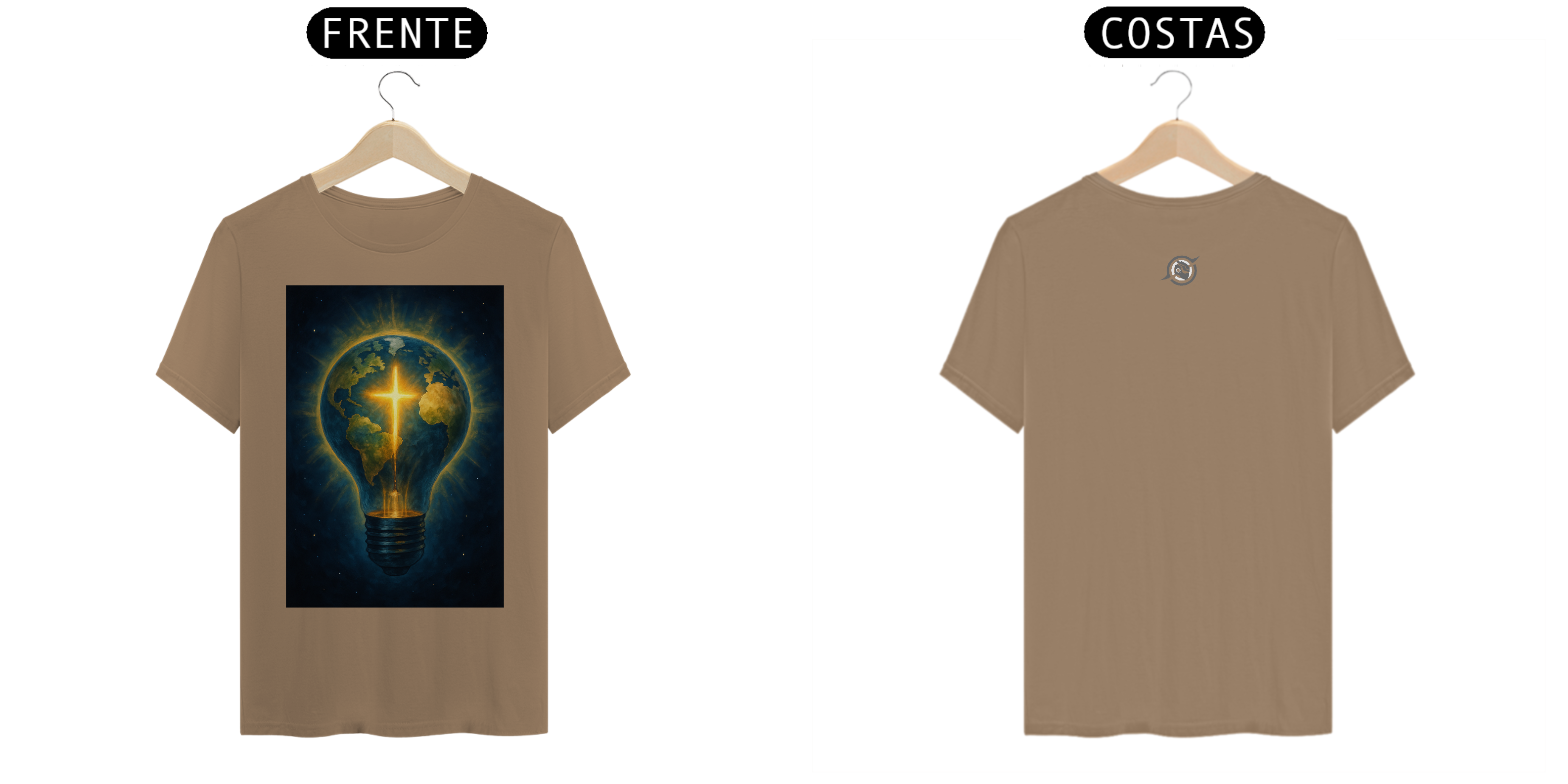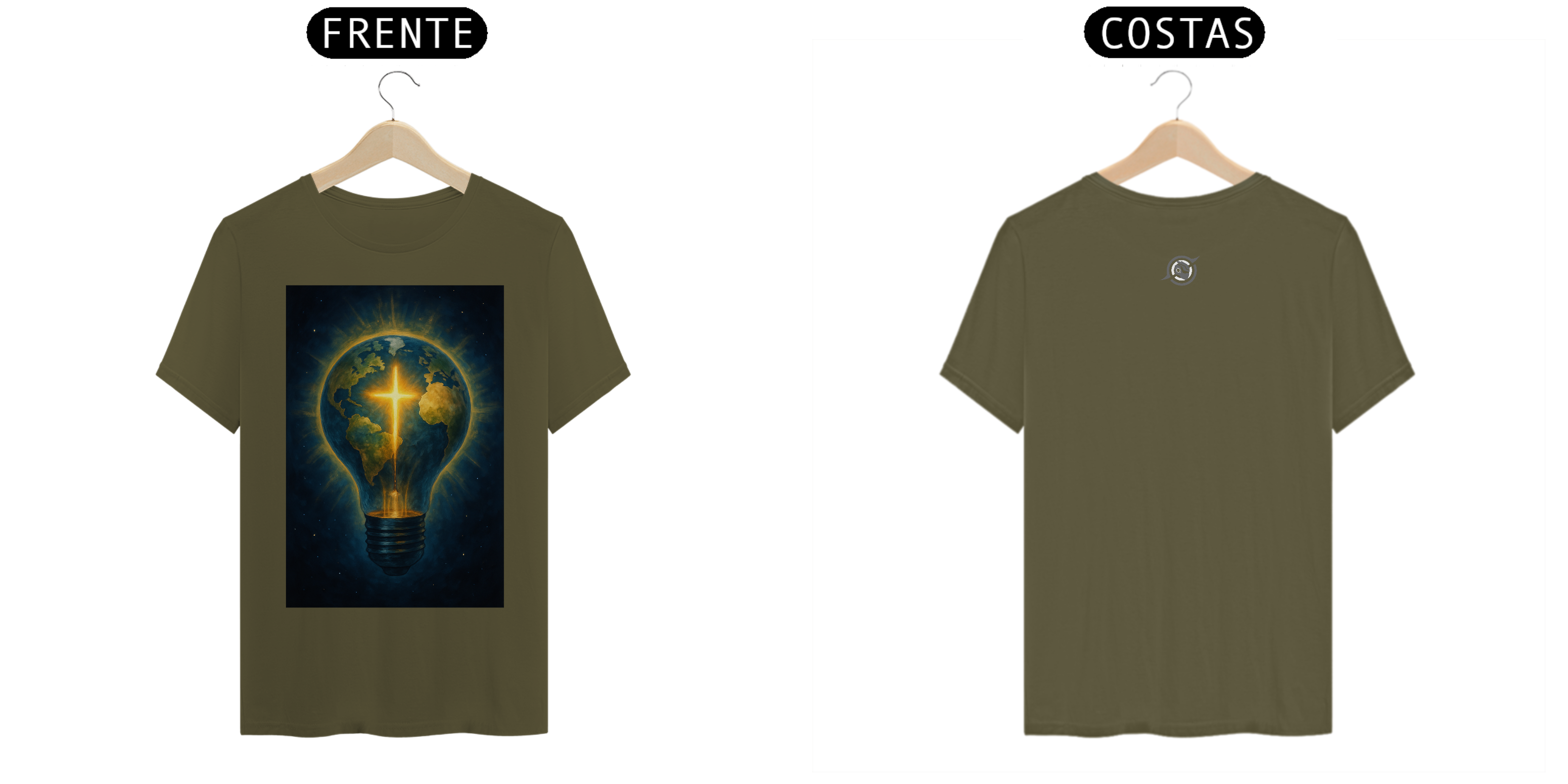 A arte estampa o contraste: um planeta coberto de sombras, atravessado por uma cruz de energia pura. Porque a luz que vem de dentro não se apaga — ela guia. E quem veste essa peça entende: estilo é expressão, mas presença é missão.