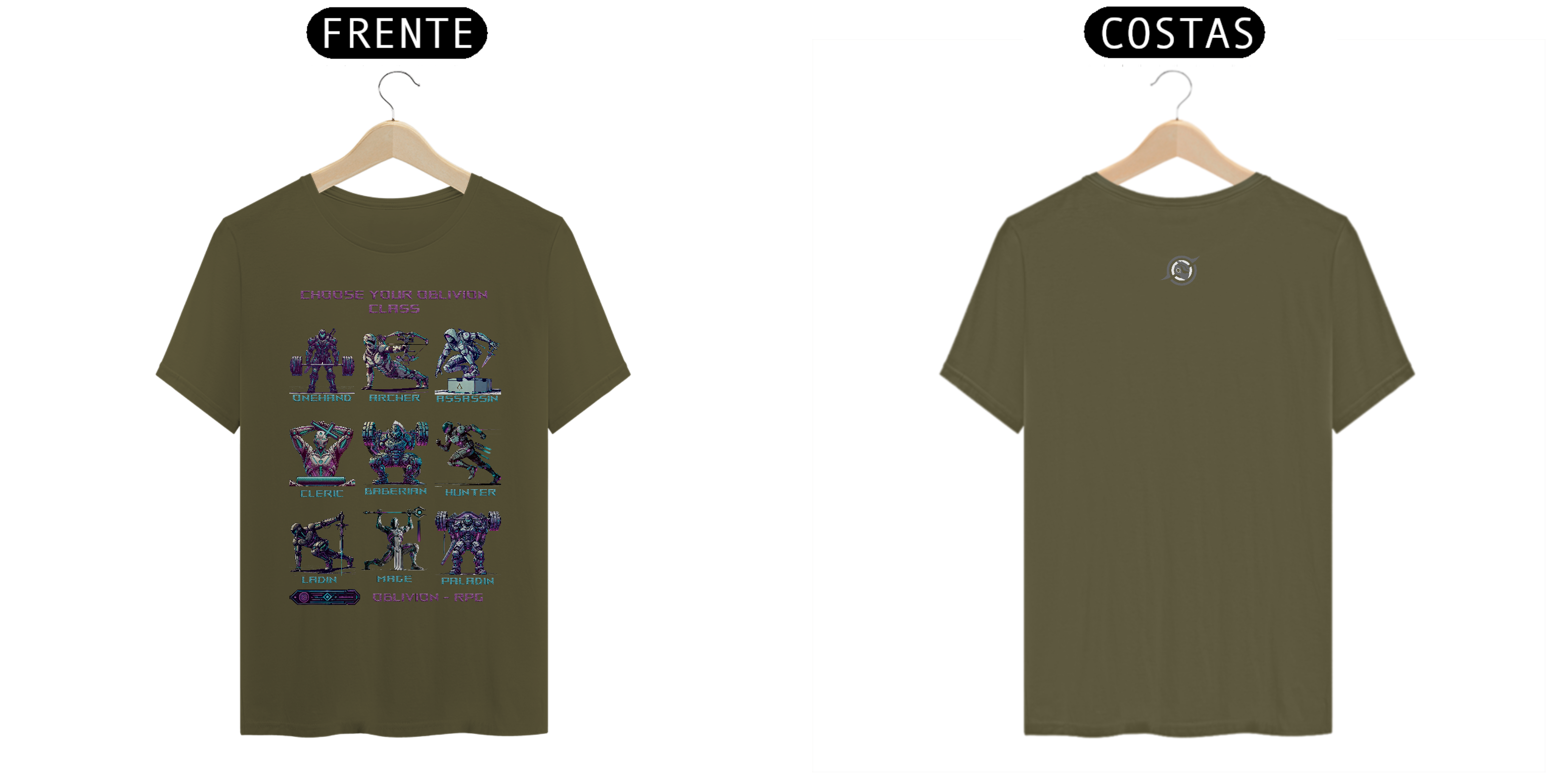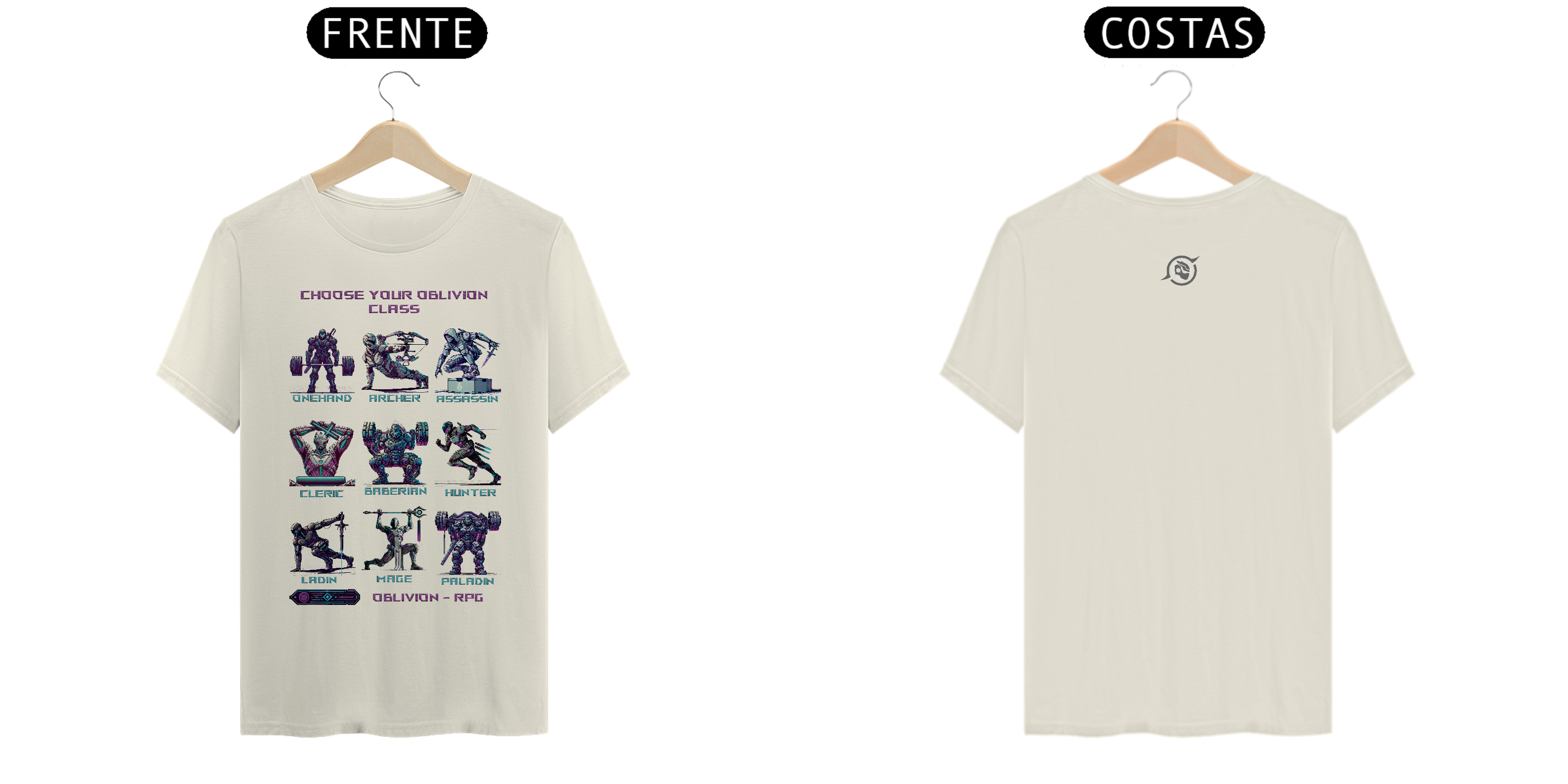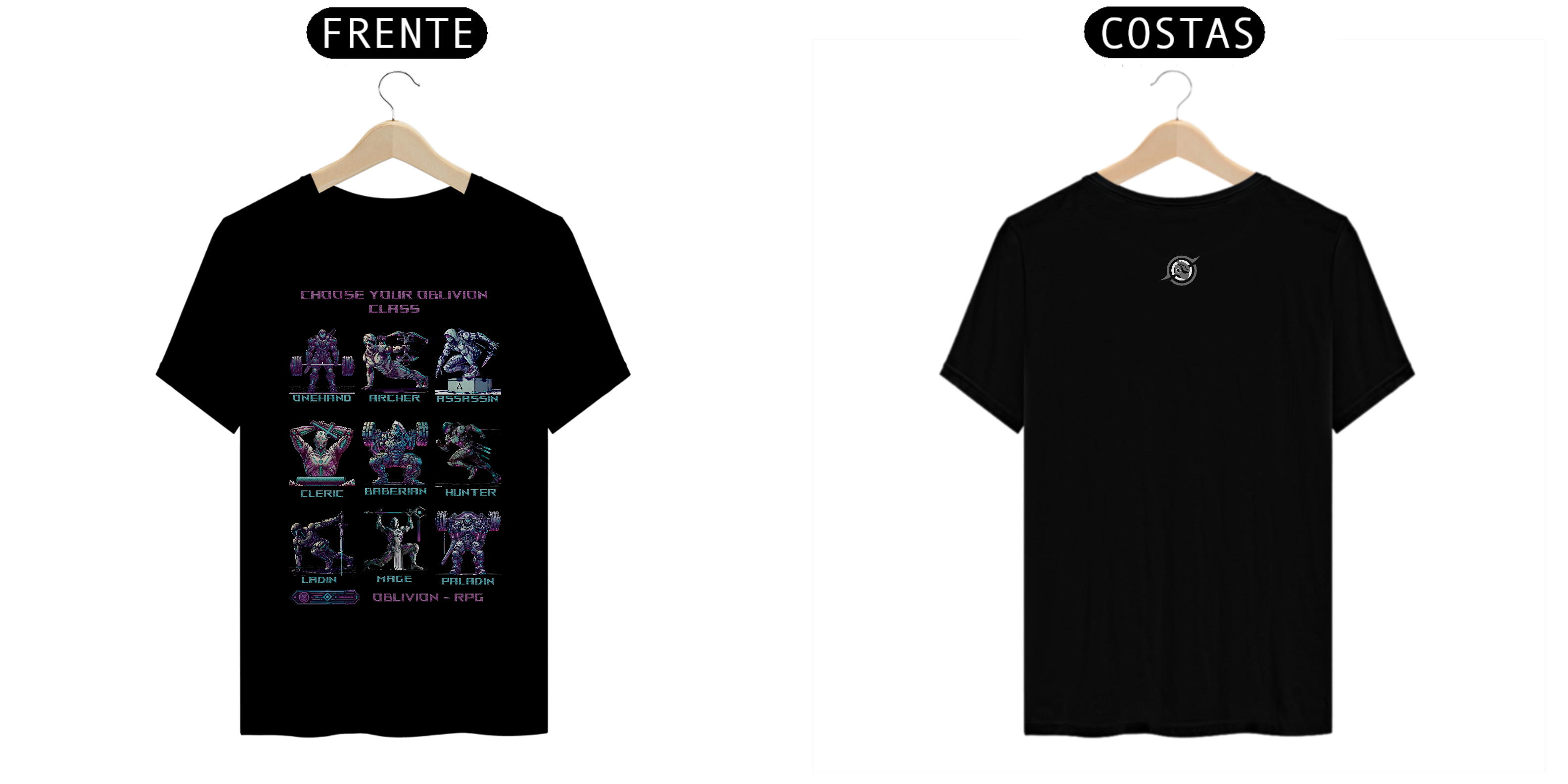 Design Temático e Exclusivo: Cada camiseta representa uma classe distinta do RPG, capturando sua essência em um estilo sci-fi e futurista. Dos guerreiros aos magos, cada personagem reflete força, estratégia e resistência – qual será o seu caminho?