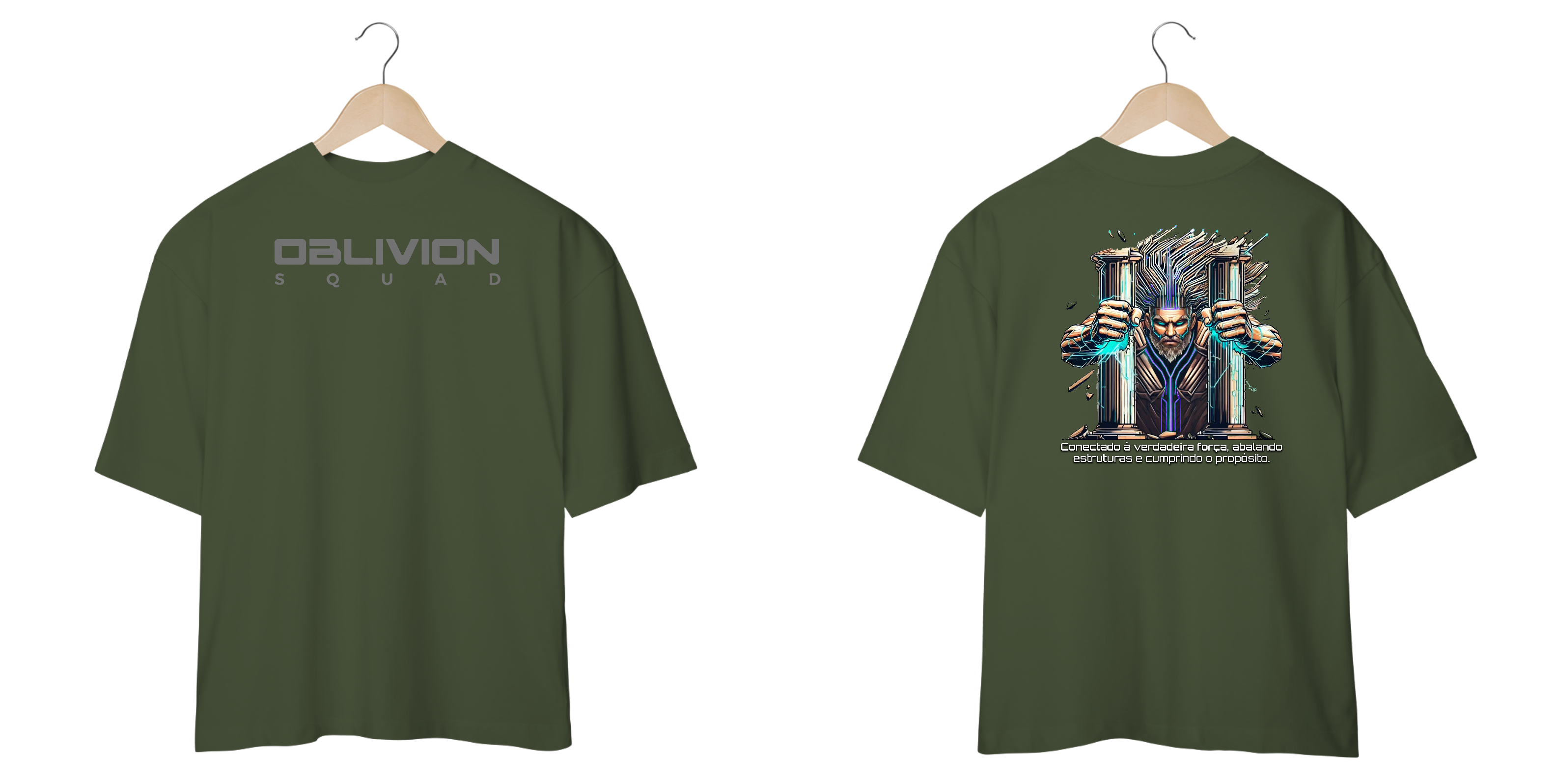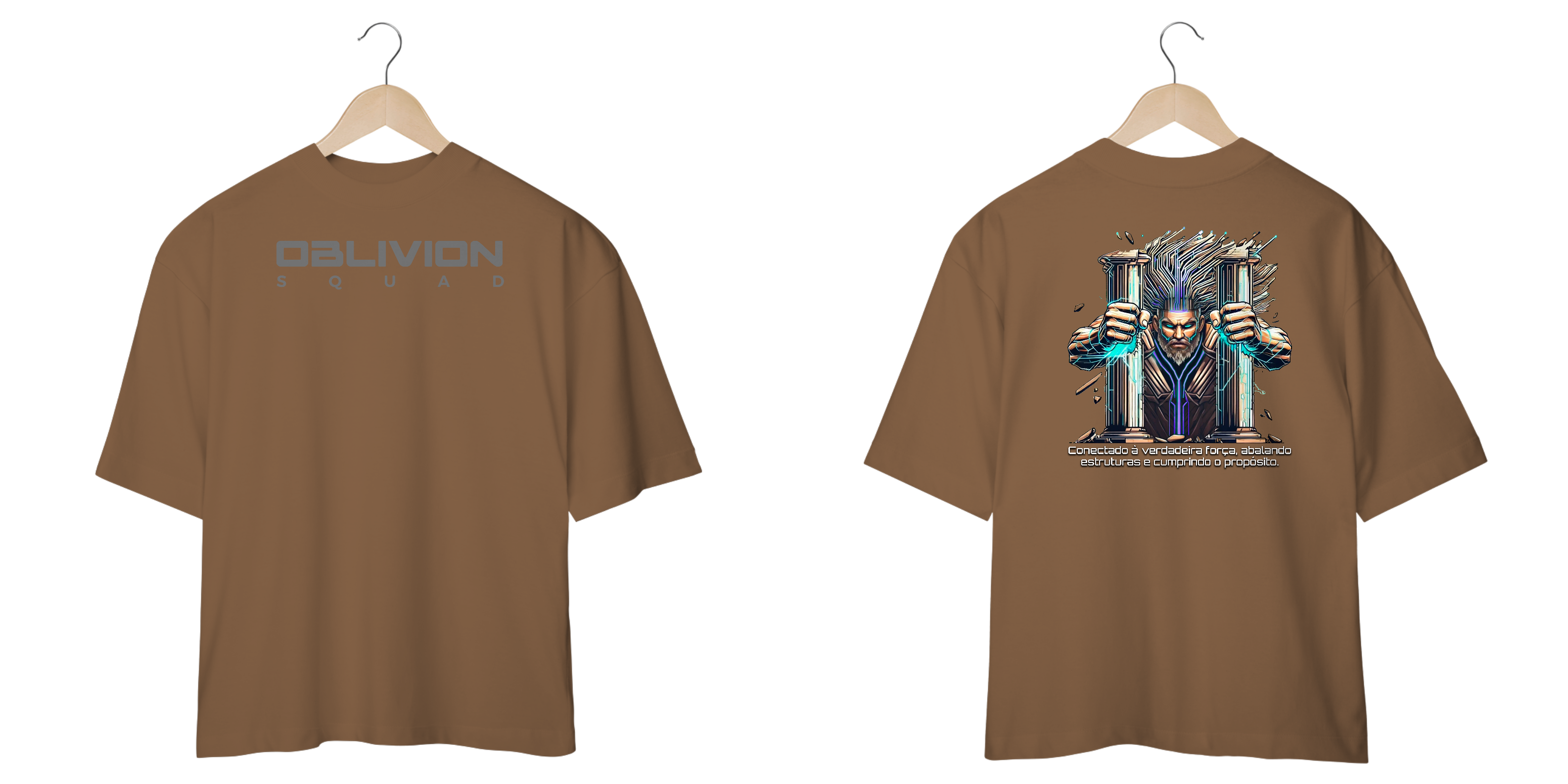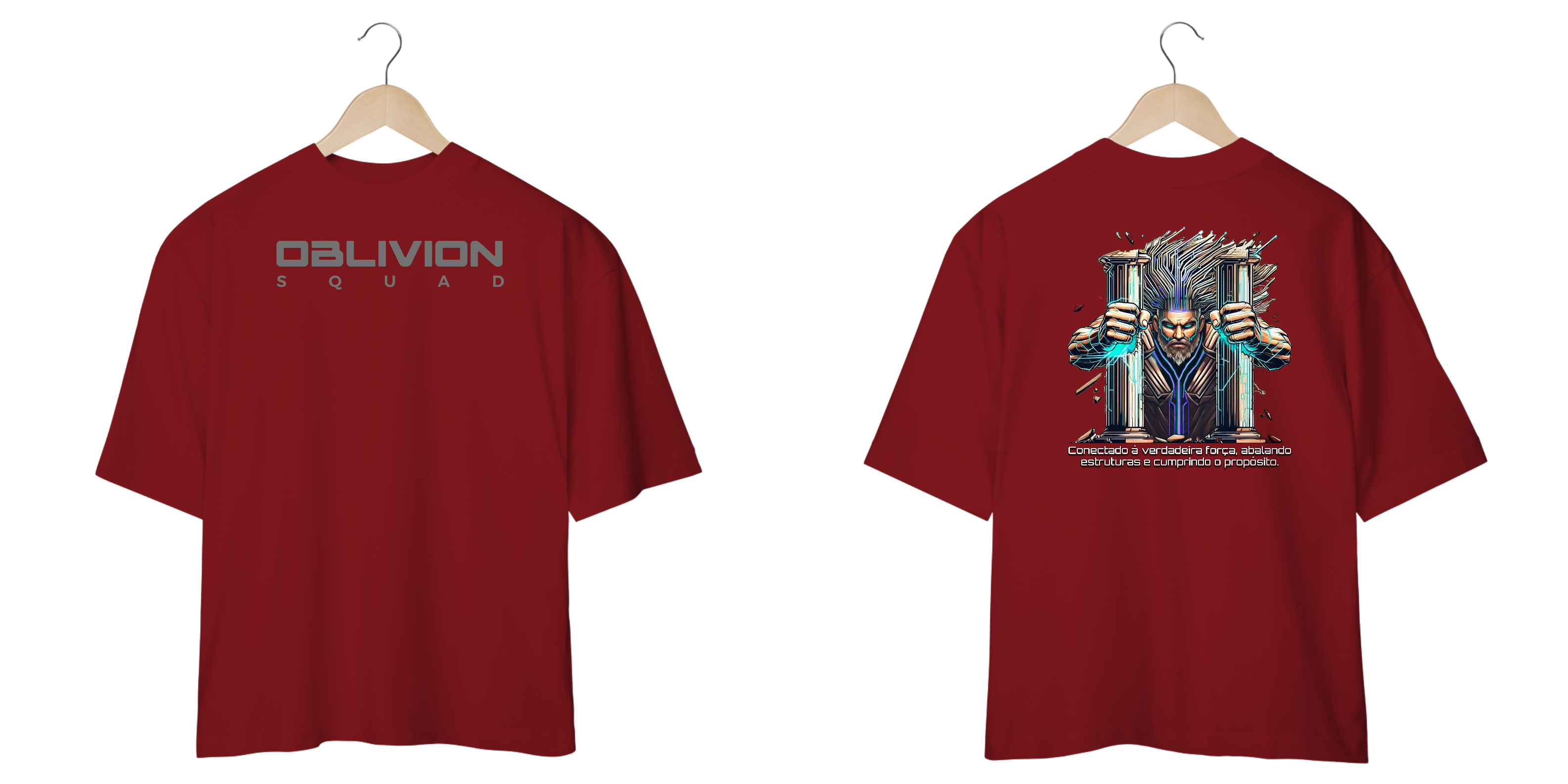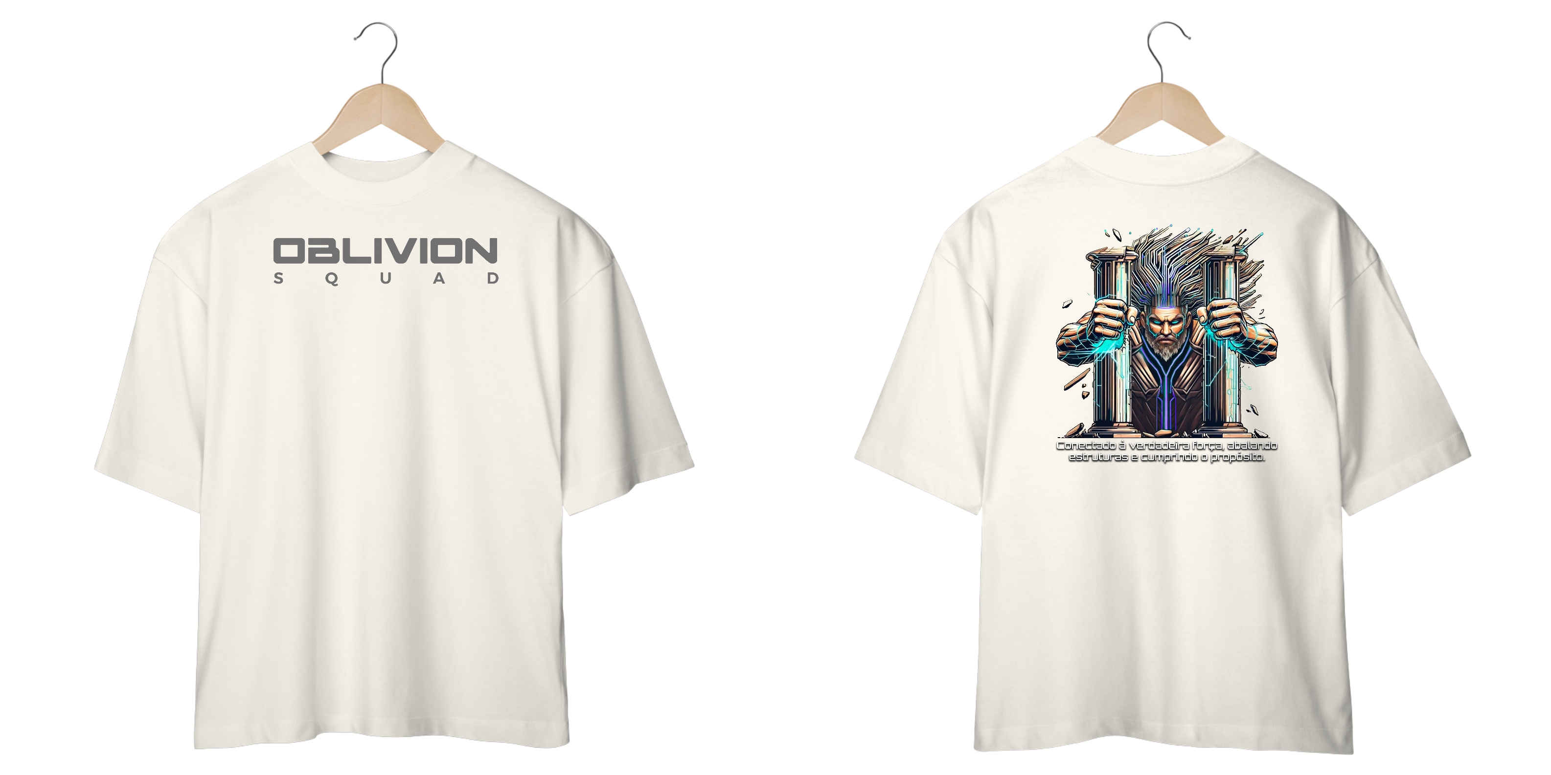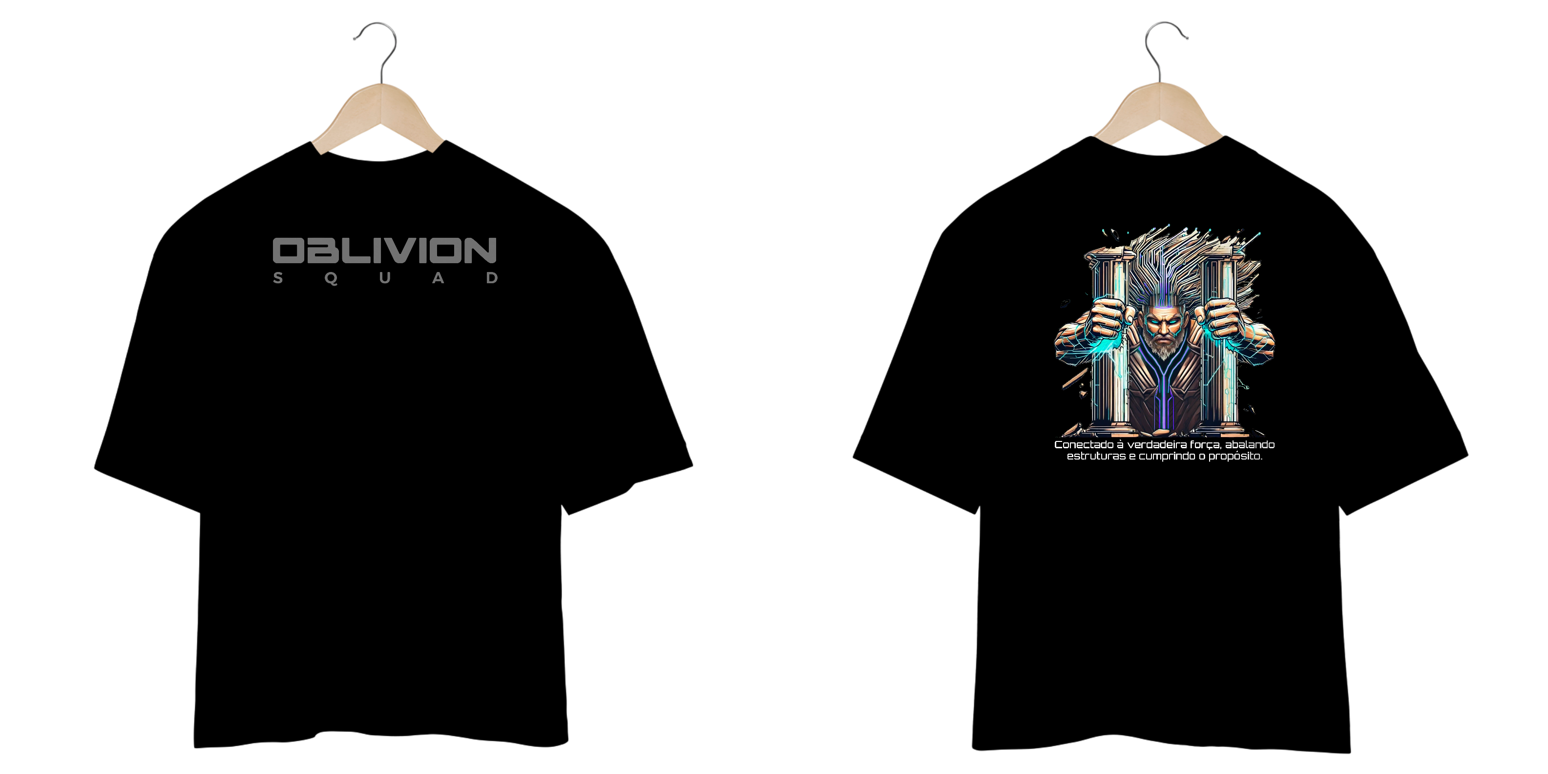 Uma peça que simboliza força absoluta e determinação inquebrável. Inspirada na lenda de um guerreiro que, em sua última missão, destruiu as colunas que o prendiam e reescreveu seu destino, essa camiseta traz uma arte futurista e cyberpunk, elevando a estética da Oblivion Squad ao próximo nível.