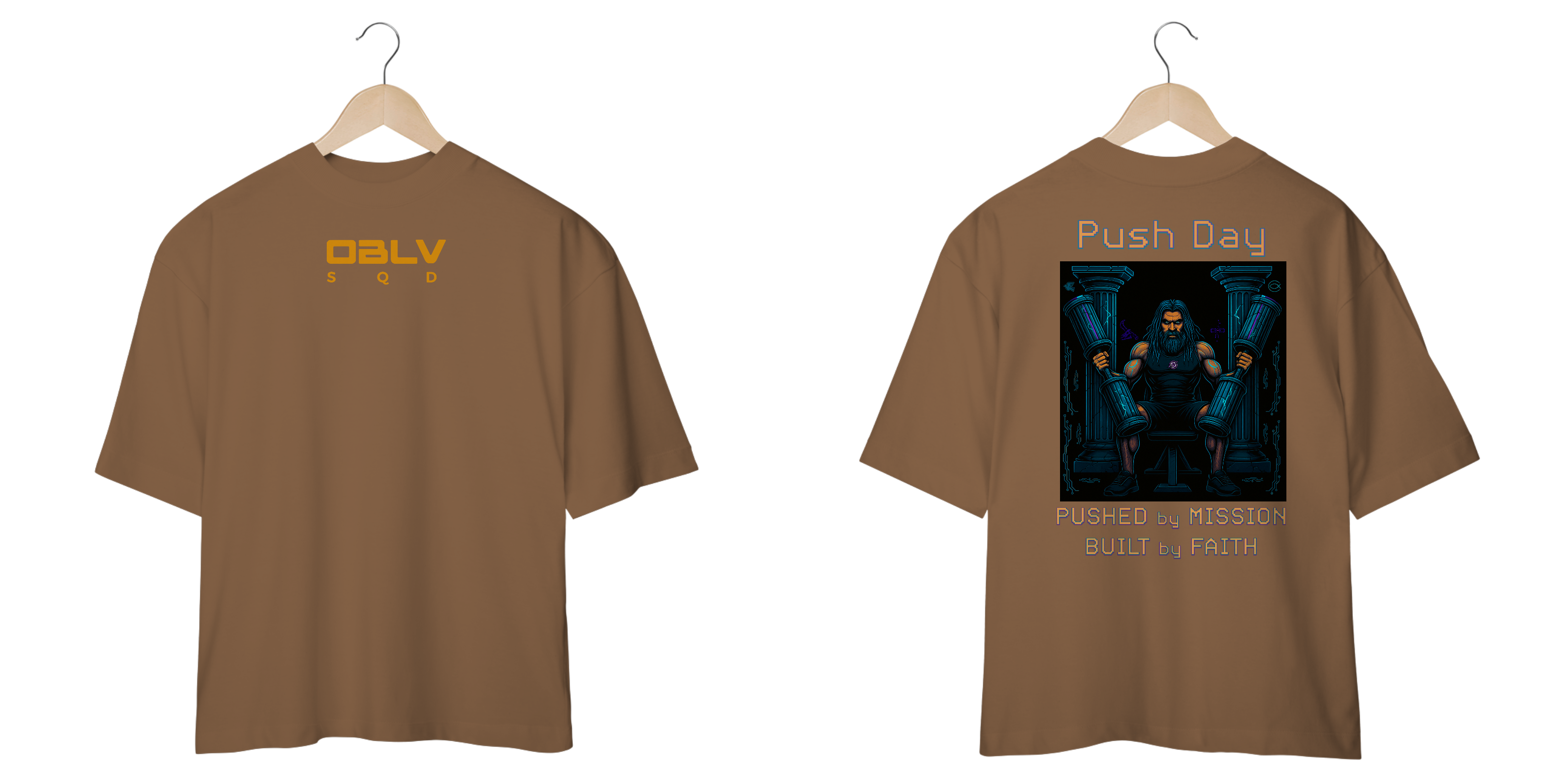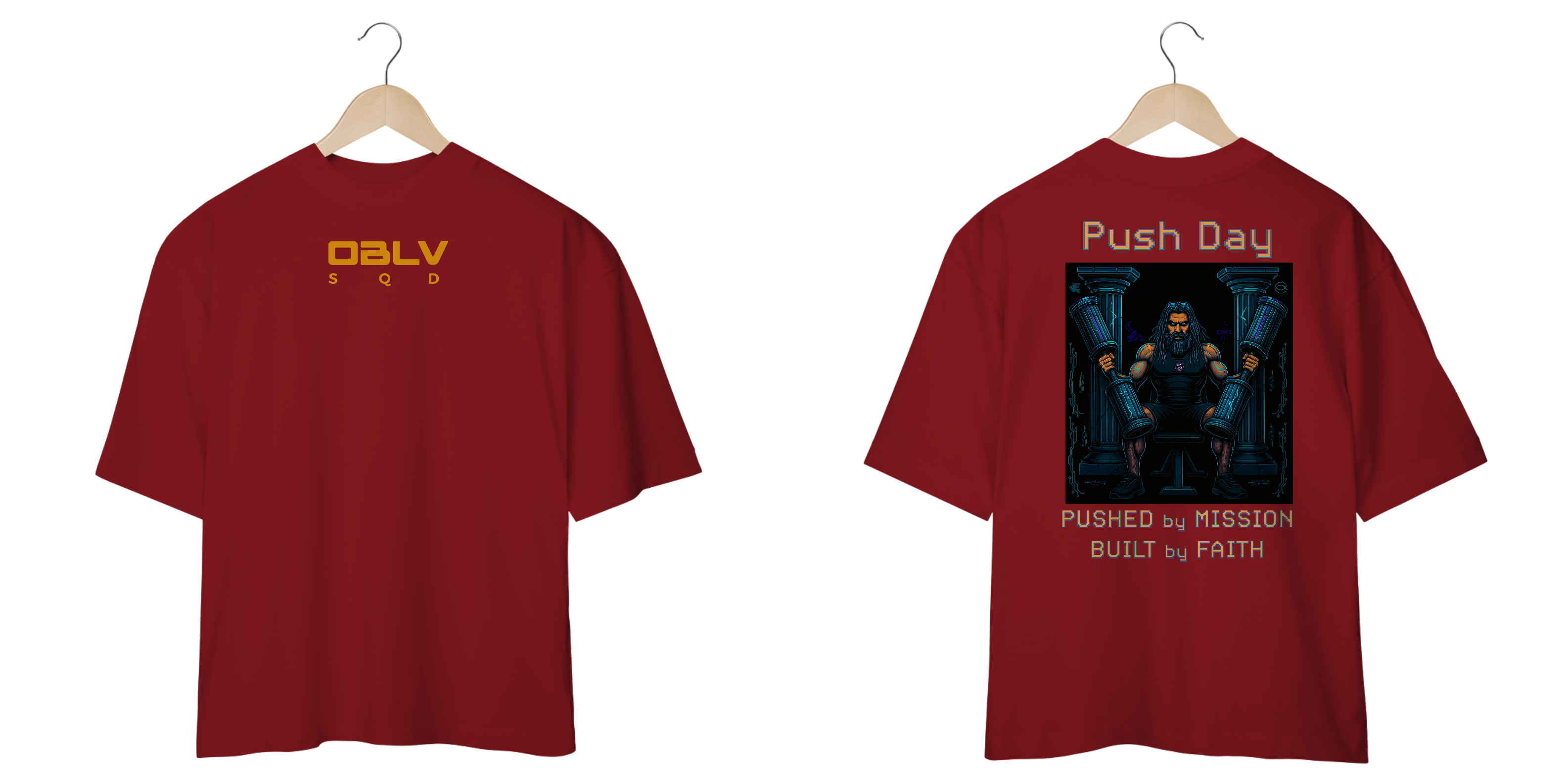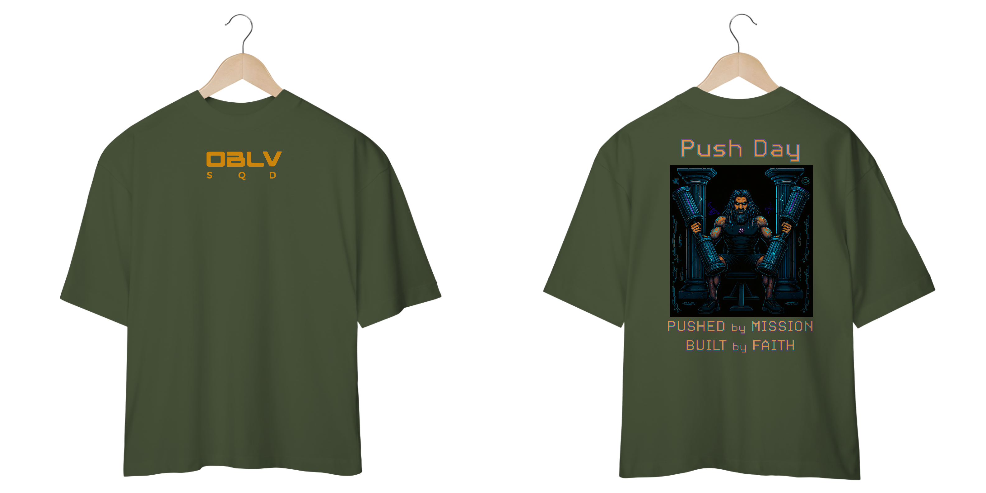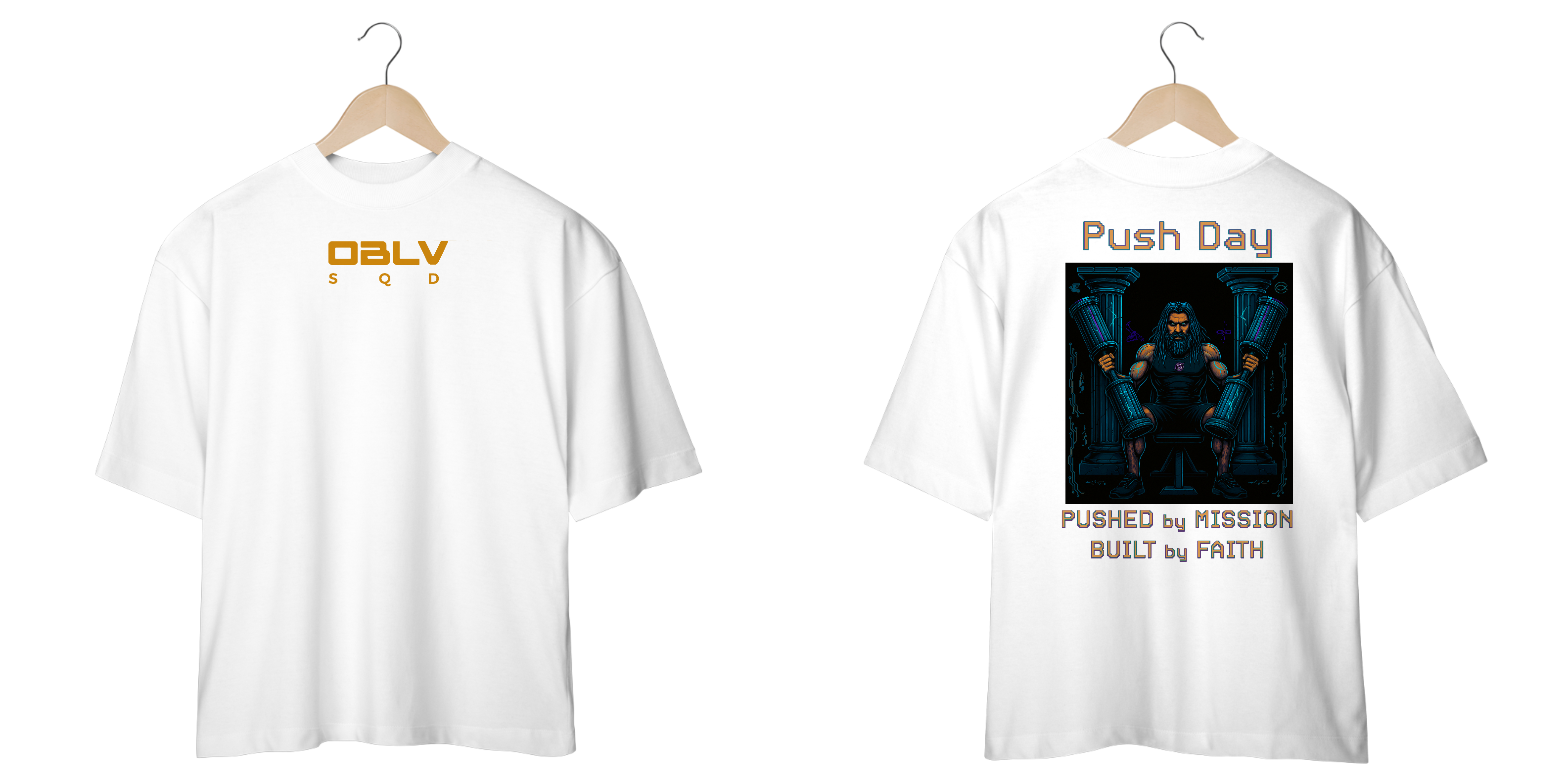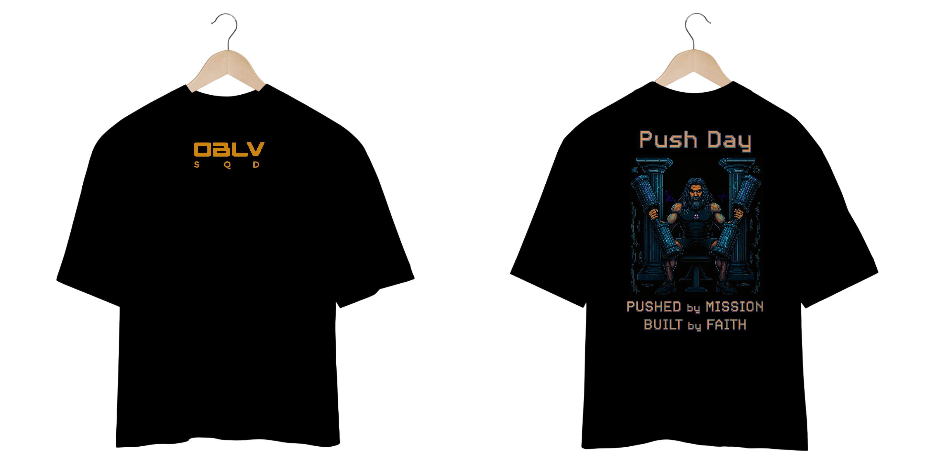 A camiseta Push Day da Oblivion Squad representa a ação consciente de quem sabe que carregar peso é mais do que esforço físico — é cumprir uma missão maior.