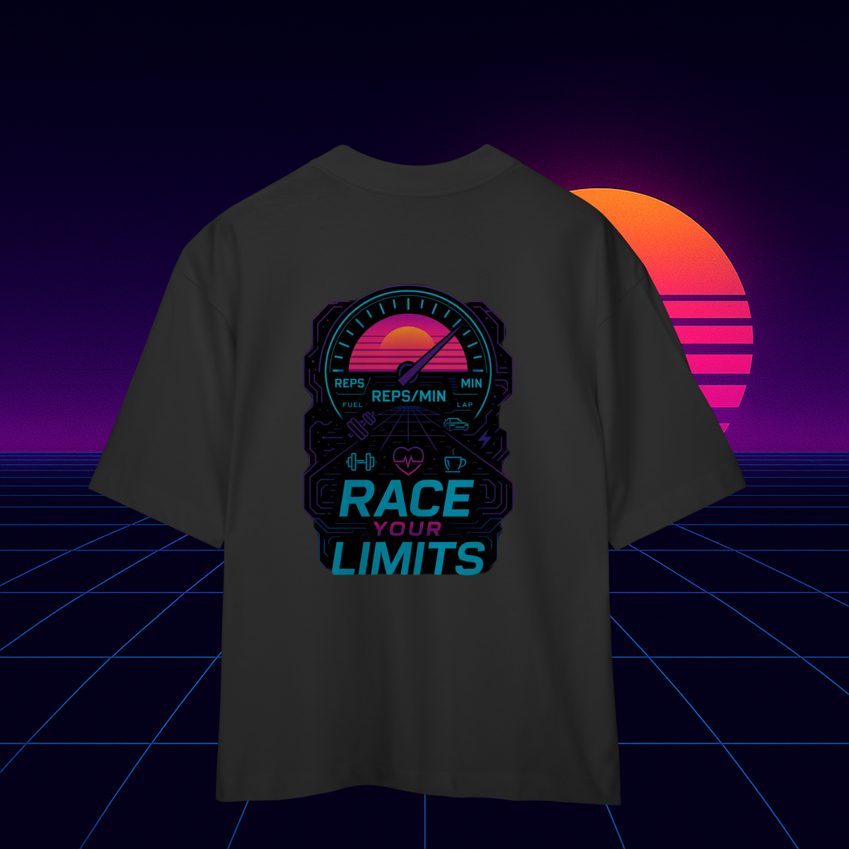 Não é só uma camiseta — é o painel da sua jornada, lembrando que o corpo também tem marchas, e cada treino é uma volta completa rumo à versão mais rápida, forte e implacável de si mesmo.