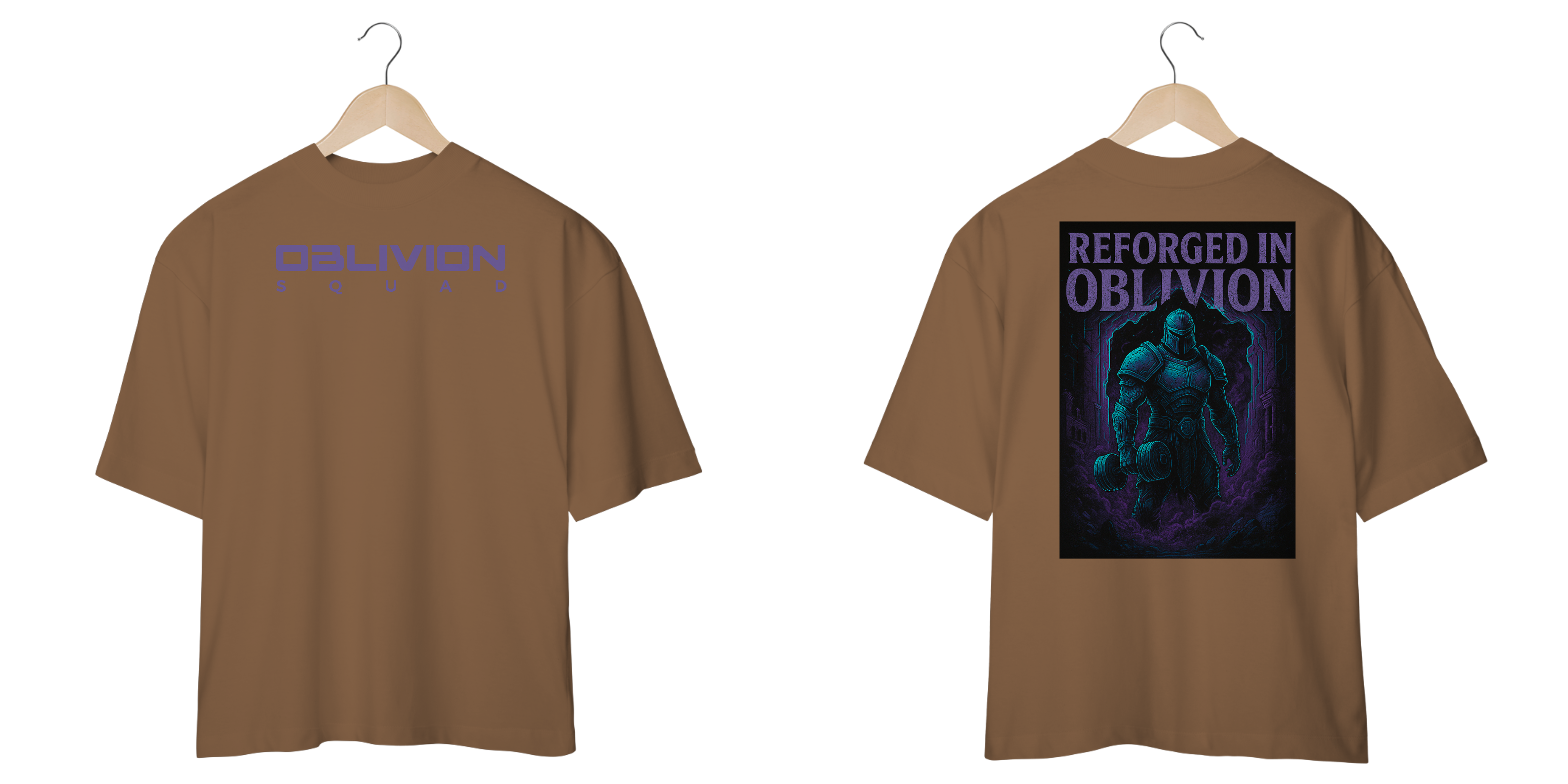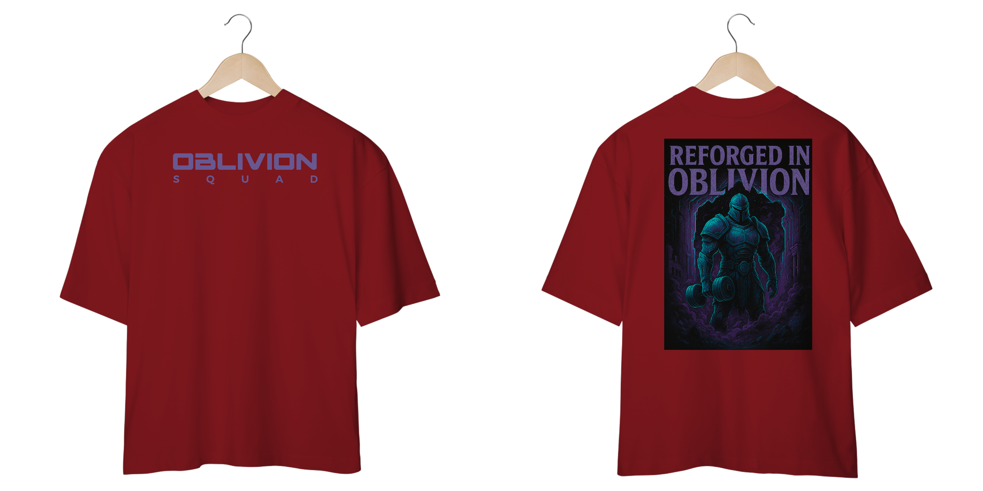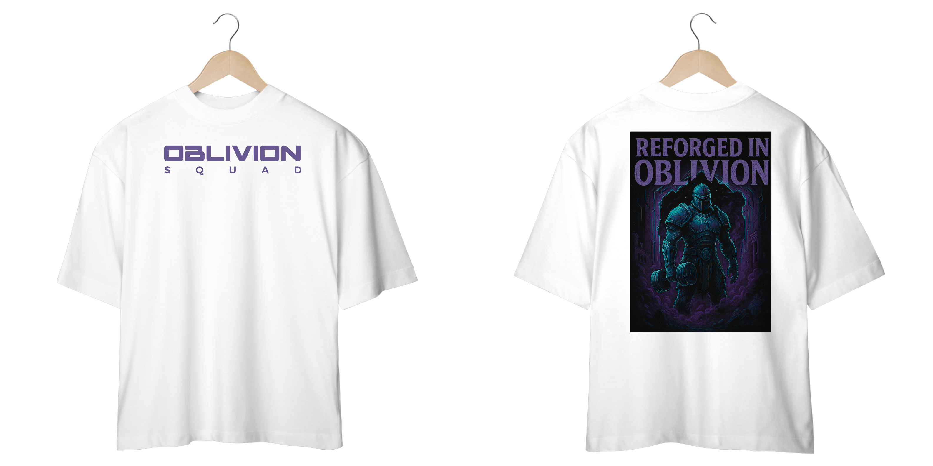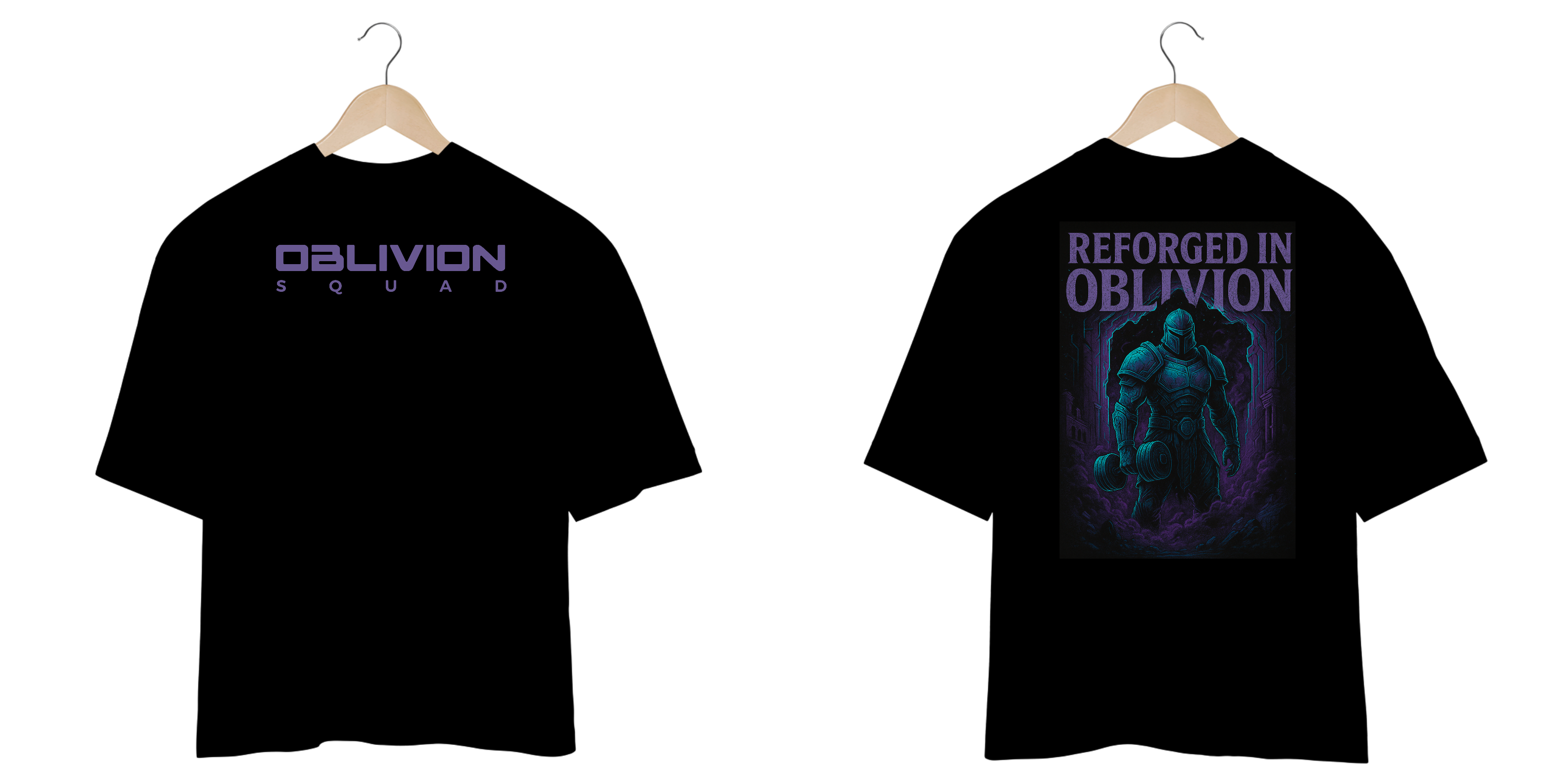 A arte exclusiva traz um guerreiro sci-fi rompendo um portal dimensional, com armadura energética e dumbbell em punho, simbolizando força, renascimento e superação. A fusão perfeita entre cultura gamer e a estética futurista da Oblivion Squad.