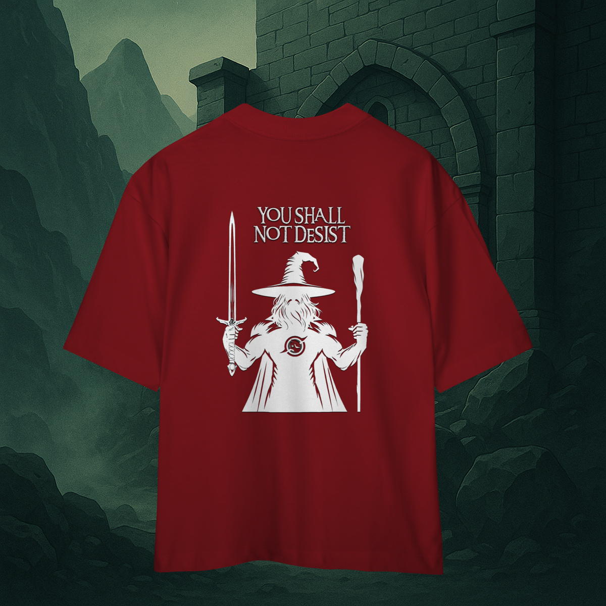 Acima, a frase “YOU SHALL NOT DESIST” ecoa como um decreto, um juramento silencioso entre guerreiros de fé e foco.