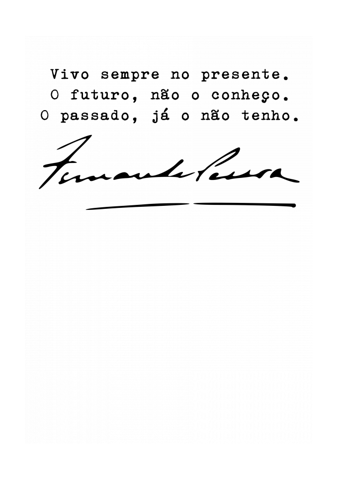 Camiseta com versos do poeta Fernando Pessoa sobre como viver em relação ao presente.