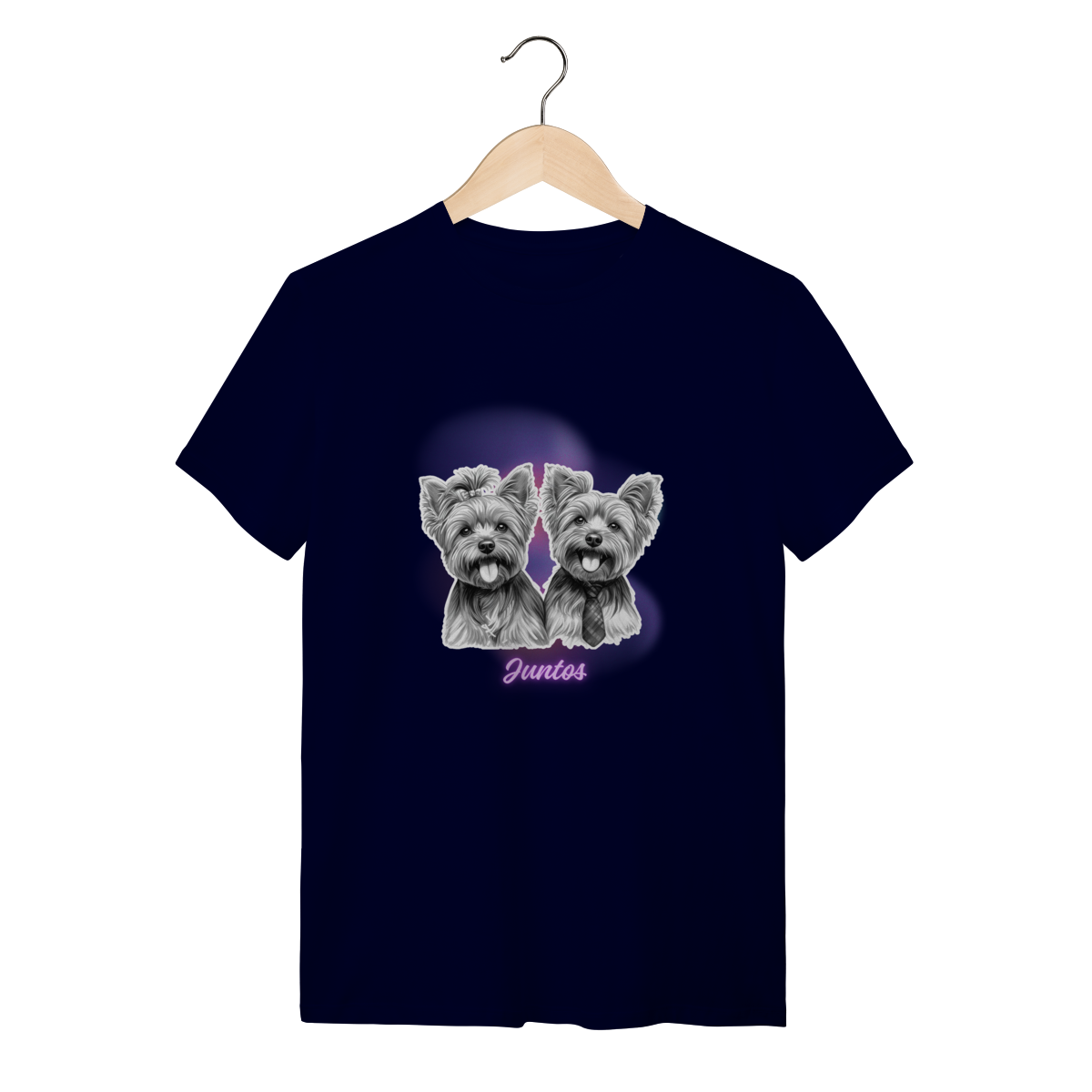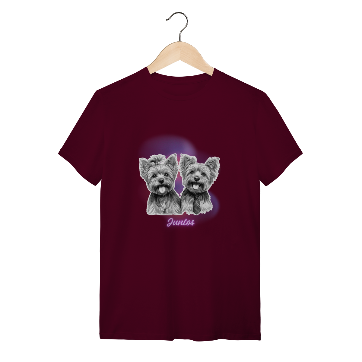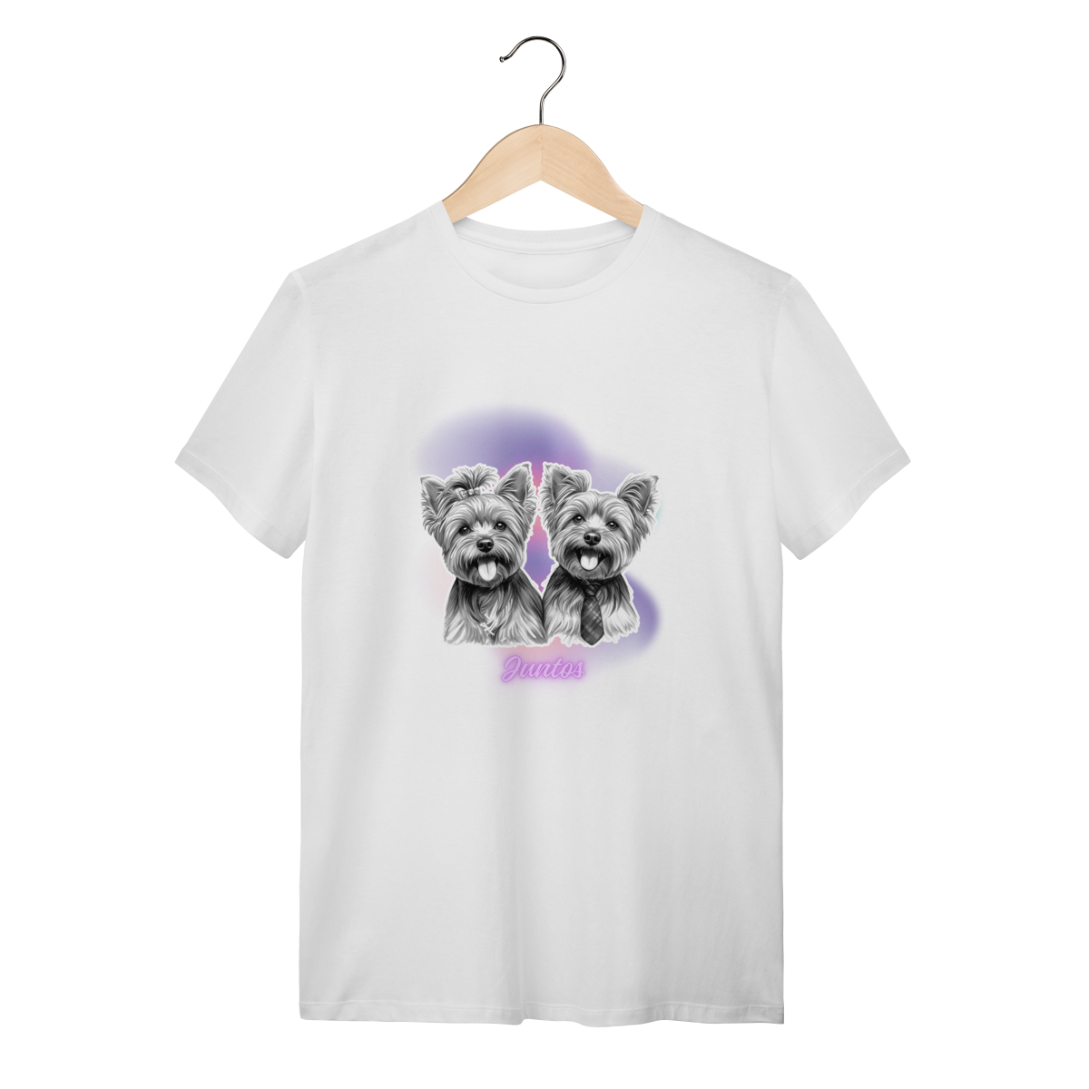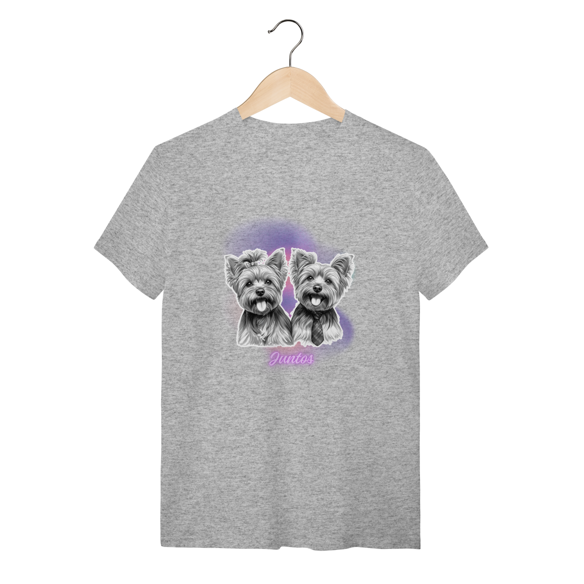 T-Shirt Quality - Casal Yorkshire- Juntos. Compartilhe essa mensagem de carinho e afeto com esses peludinhos.