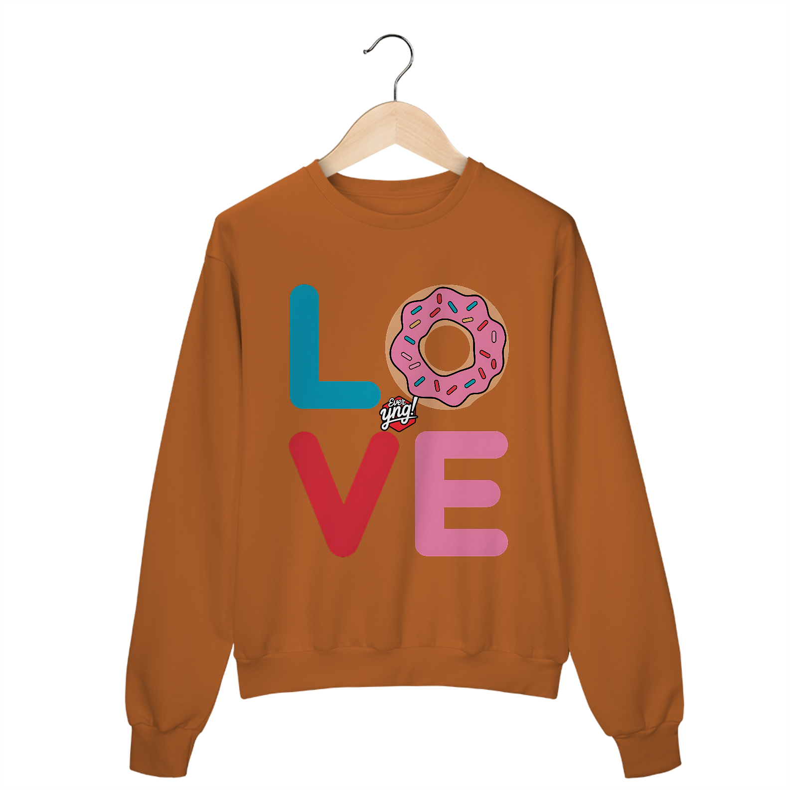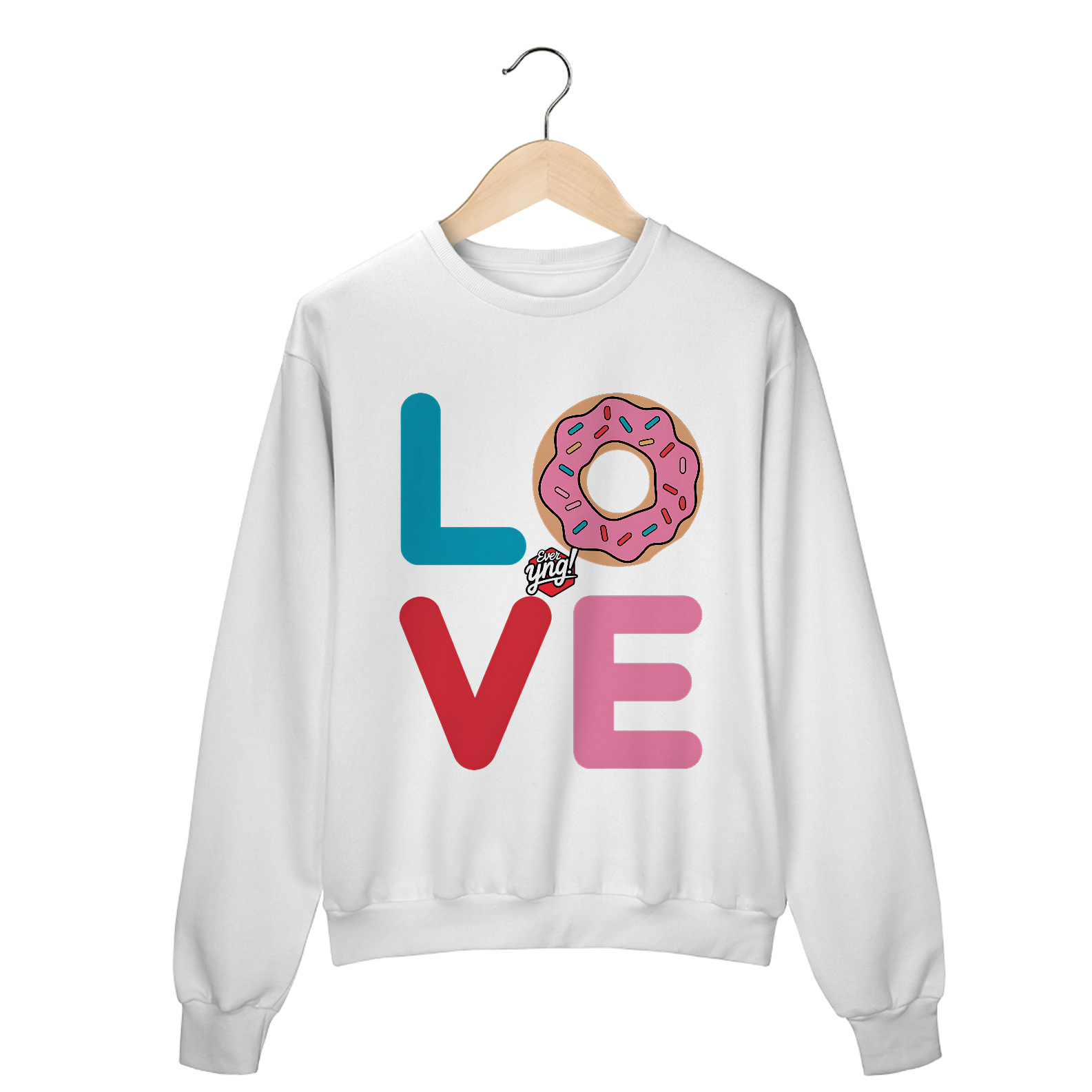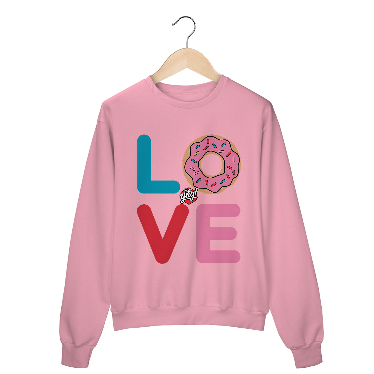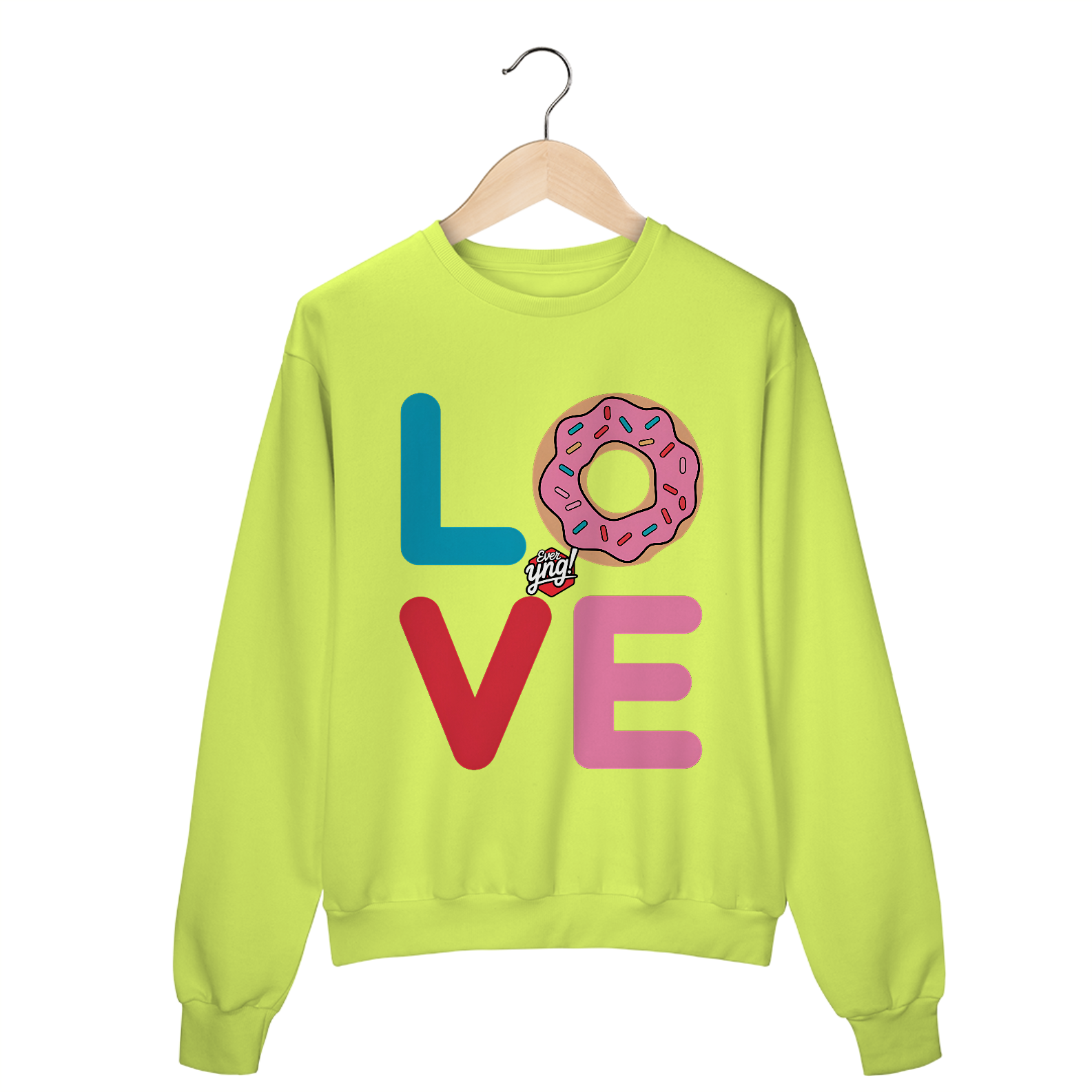 Espalhe amor com a estampa "AMOR" da Ever Yng!. Com letras vibrantes e um donut centralizado, esta peça combina cor e humor de forma irresistível. Ideal para aqueles que amam doces e querem expressar sua personalidade divertida!