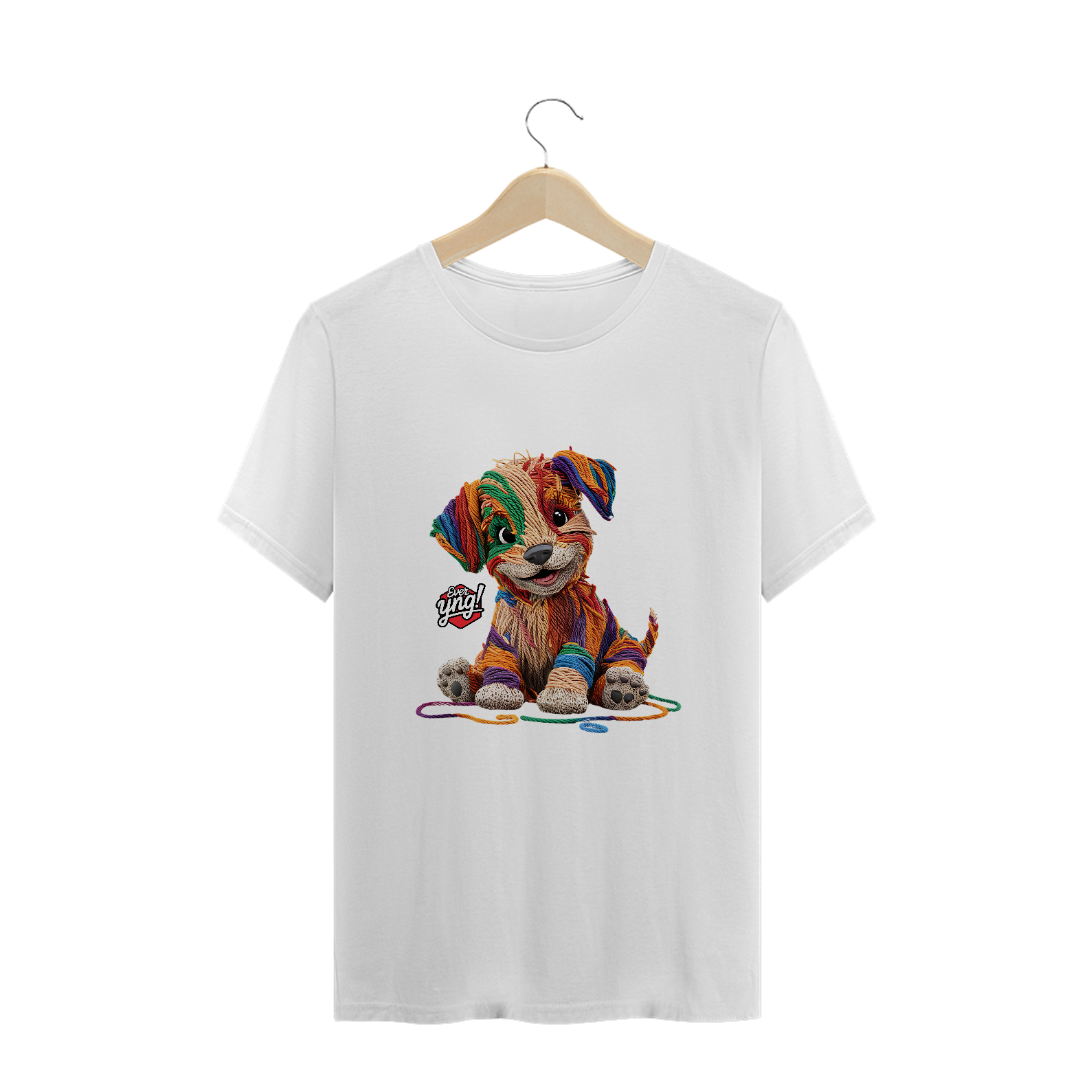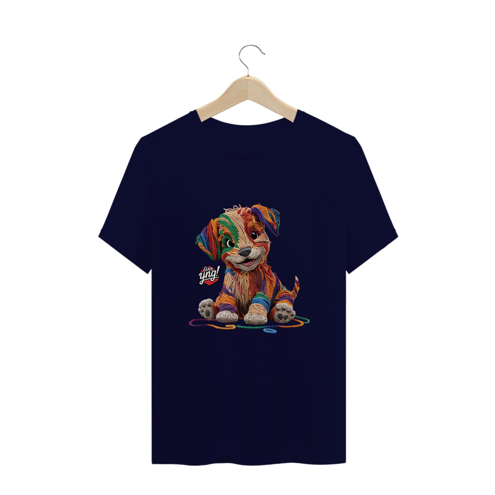 Descubra a mistura perfeita entre capricho e arte com a estampa "Cachorrinho de Fios". Com um design que lembra um cachorrinho feito de lã em várias cores vibrantes, esta peça da Ever Yng! é a escolha ideal para quem busca um estilo divertido e criativo. A textura dos fios e os olhos expressivos do cachorro trazem uma sensação de modernidade artística. Mostre sua jovialidade e estilo, porque na Ever Yng!, envelhecer não faz parte do plano!