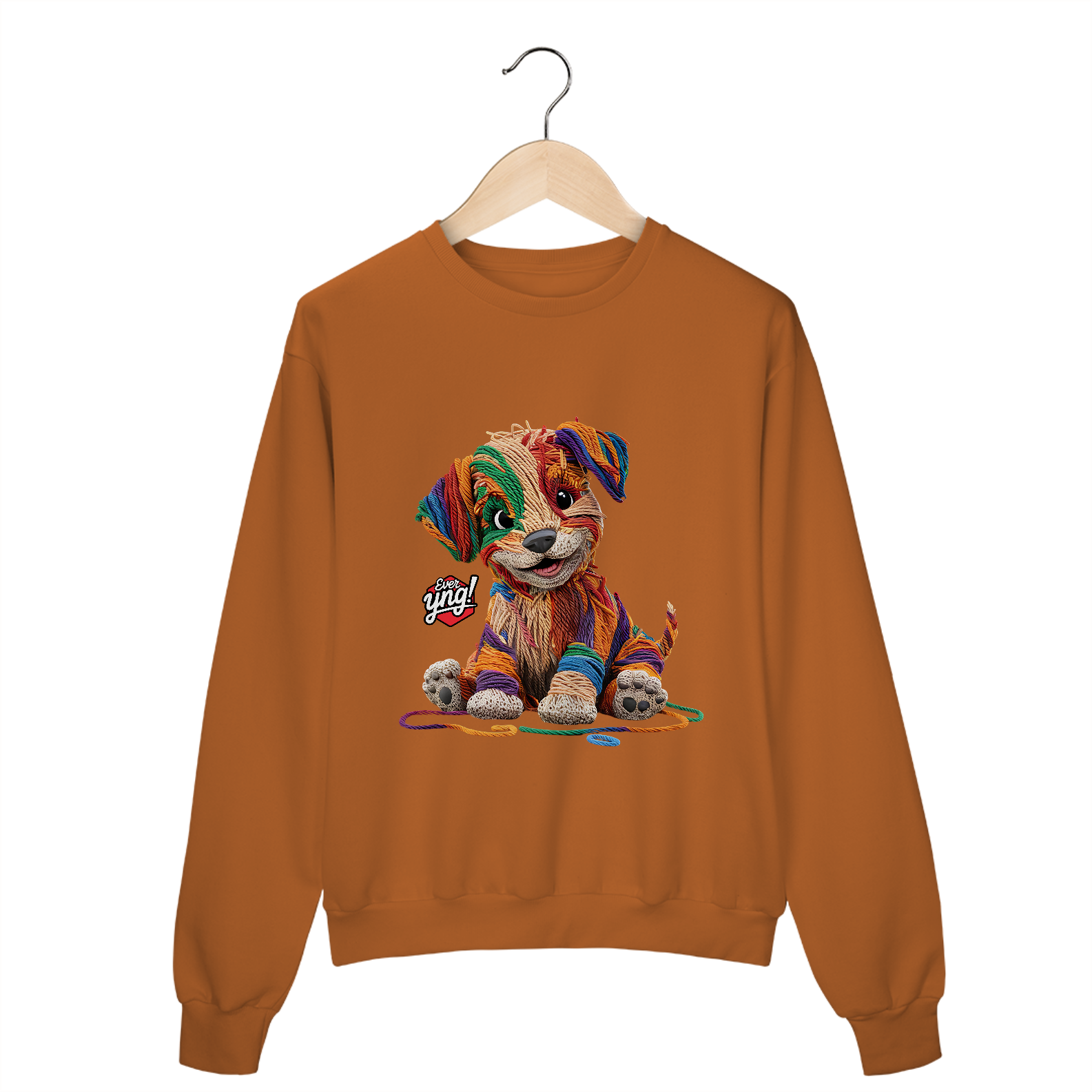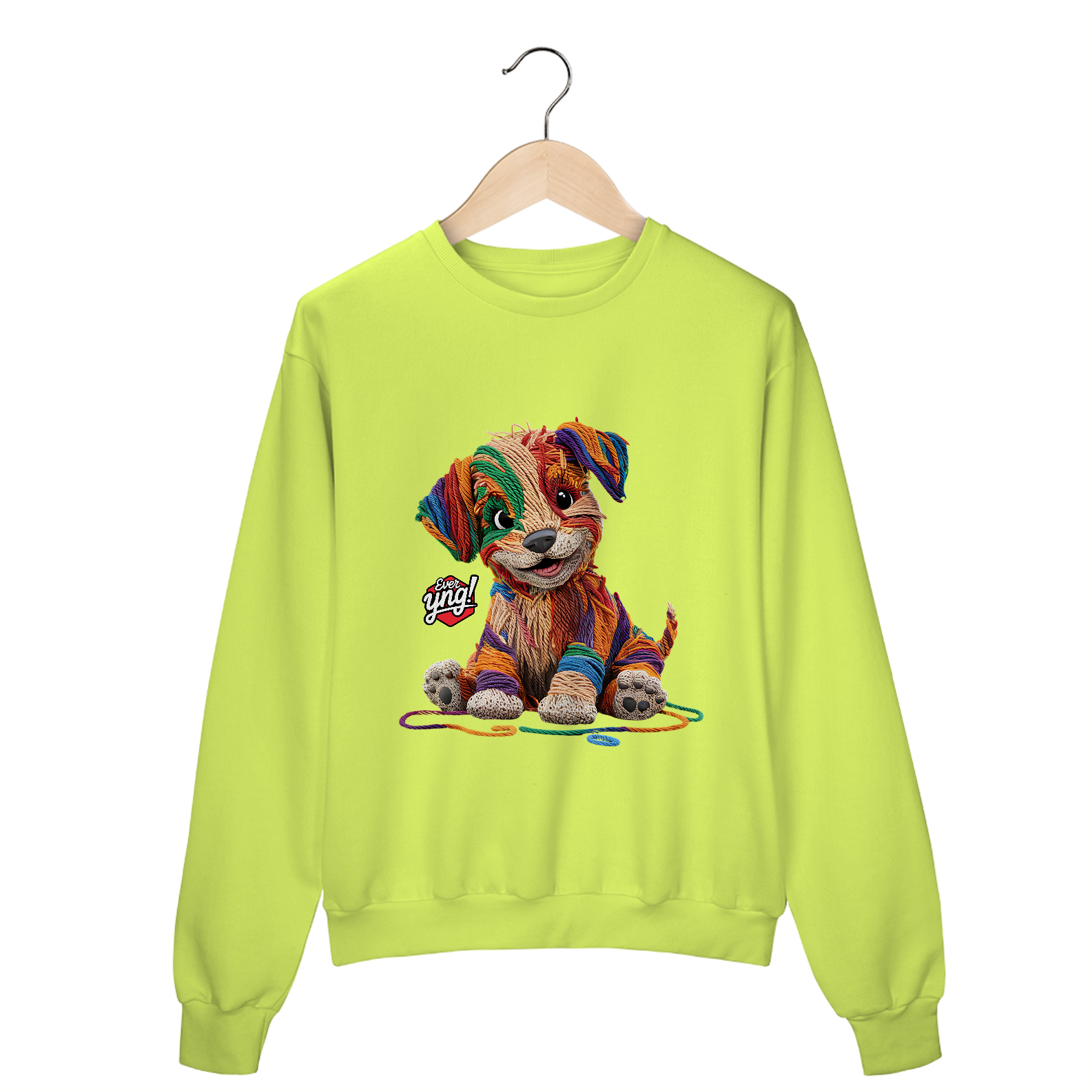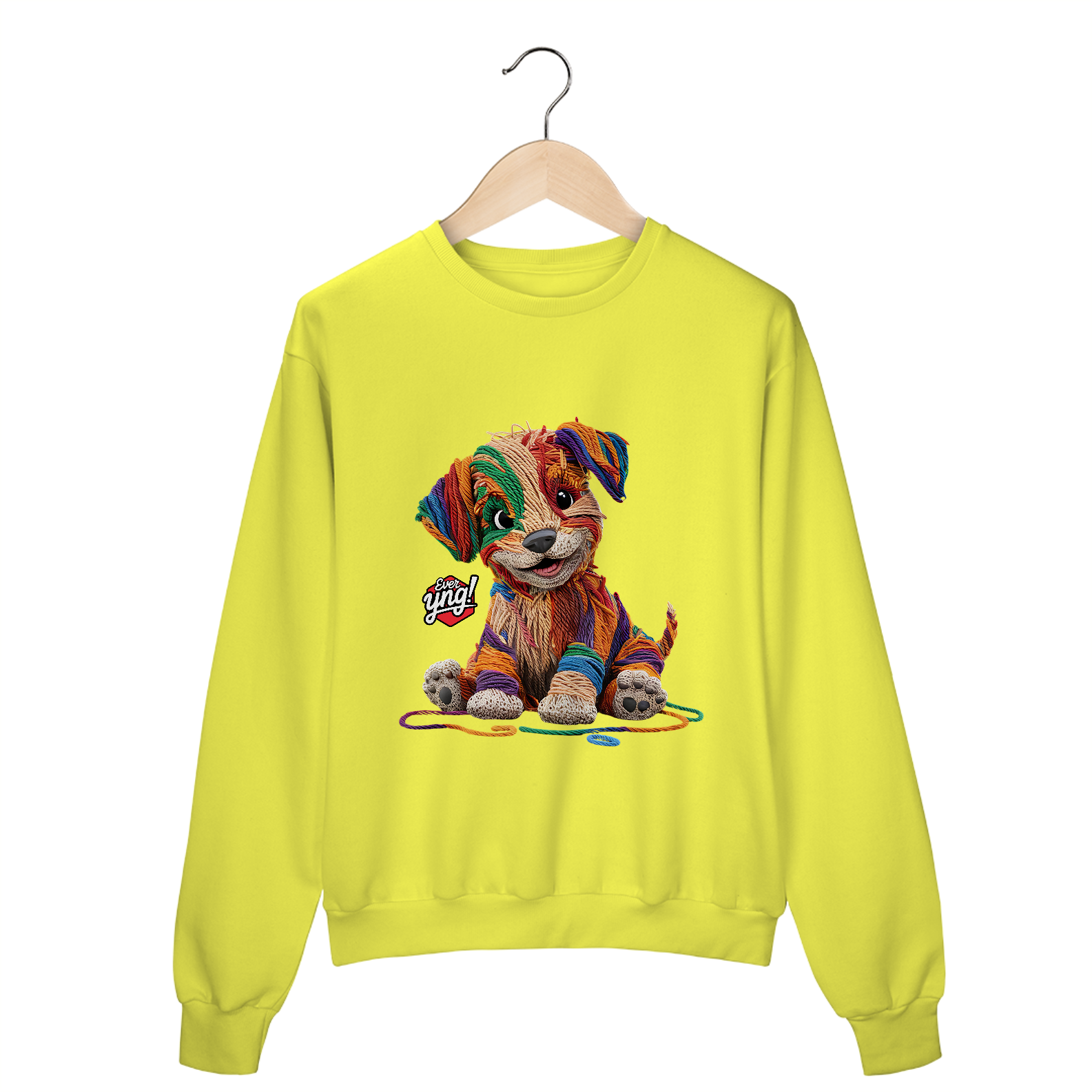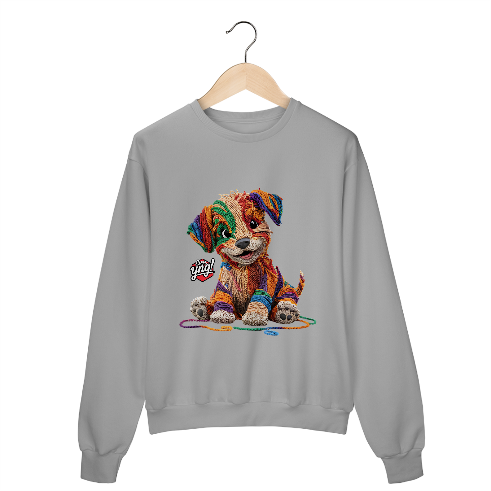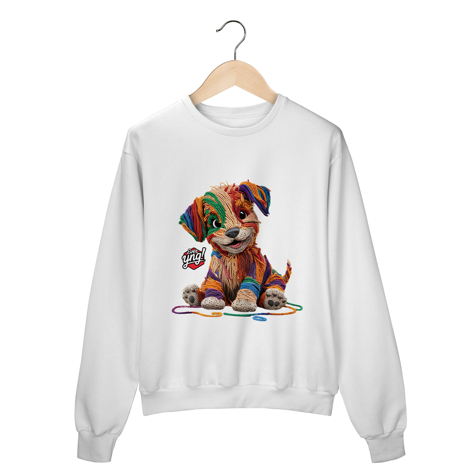 Descubra a mistura perfeita entre capricho e arte com a estampa "Cachorrinho de Fios". Com um design que lembra um cachorrinho feito de lã em várias cores vibrantes, esta peça da Ever Yng! é a escolha ideal para quem busca um estilo divertido e criativo. A textura dos fios e os olhos expressivos do cachorro trazem uma sensação de modernidade artística. Mostre sua jovialidade e estilo, porque na Ever Yng!, envelhecer não faz parte do plano!