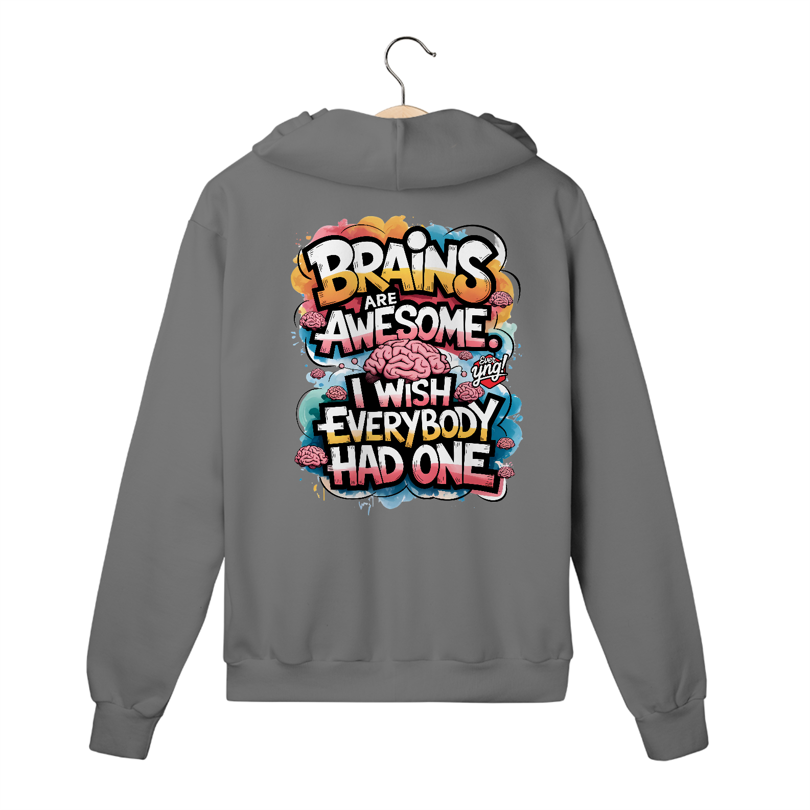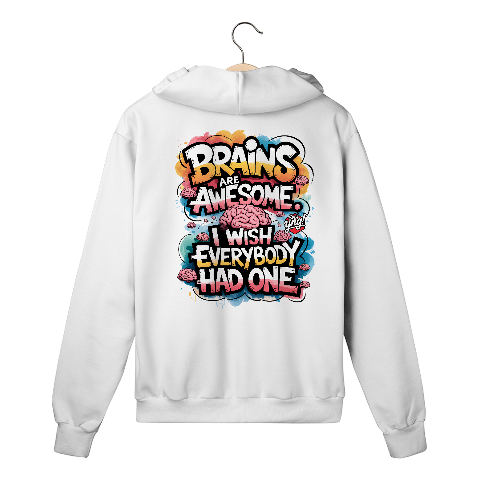 Uma explosão vibrante de cores e ilustrações de cérebros estilizados, com a frase “CÉREBROS SÃO INCRÍVEIS” flutuando no centro da composição. Uma peça energizante para aqueles que querem destacar sua inteligência com muito estilo. A Ever Yng capricha em criatividade com essa estampa cheia de cor e energia!