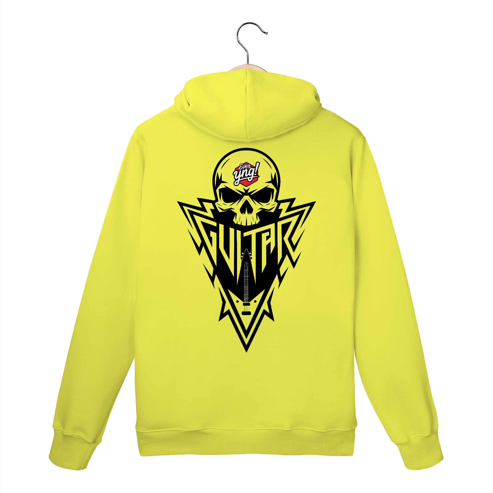 Dê um toque ousado ao seu visual com esta estampa impressionante! Com um crânio anguloso no centro, a palavra "GUITAR" em letras grandes e impactantes, e uma forma geométrica que envolve tudo, este moletom é para os amantes da música e do estilo. O esquema monocromático em preto e branco torna a peça ainda mais intensa e moderna. Perfeita para quem quer se destacar com autenticidade e atitude!