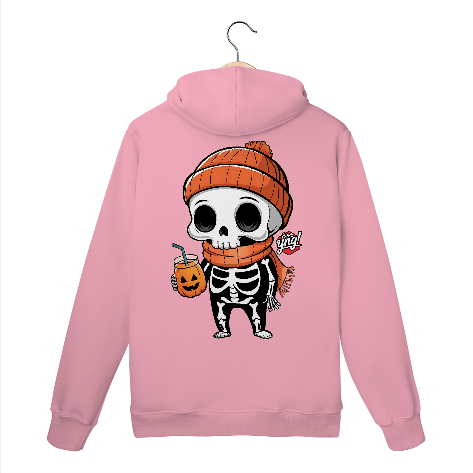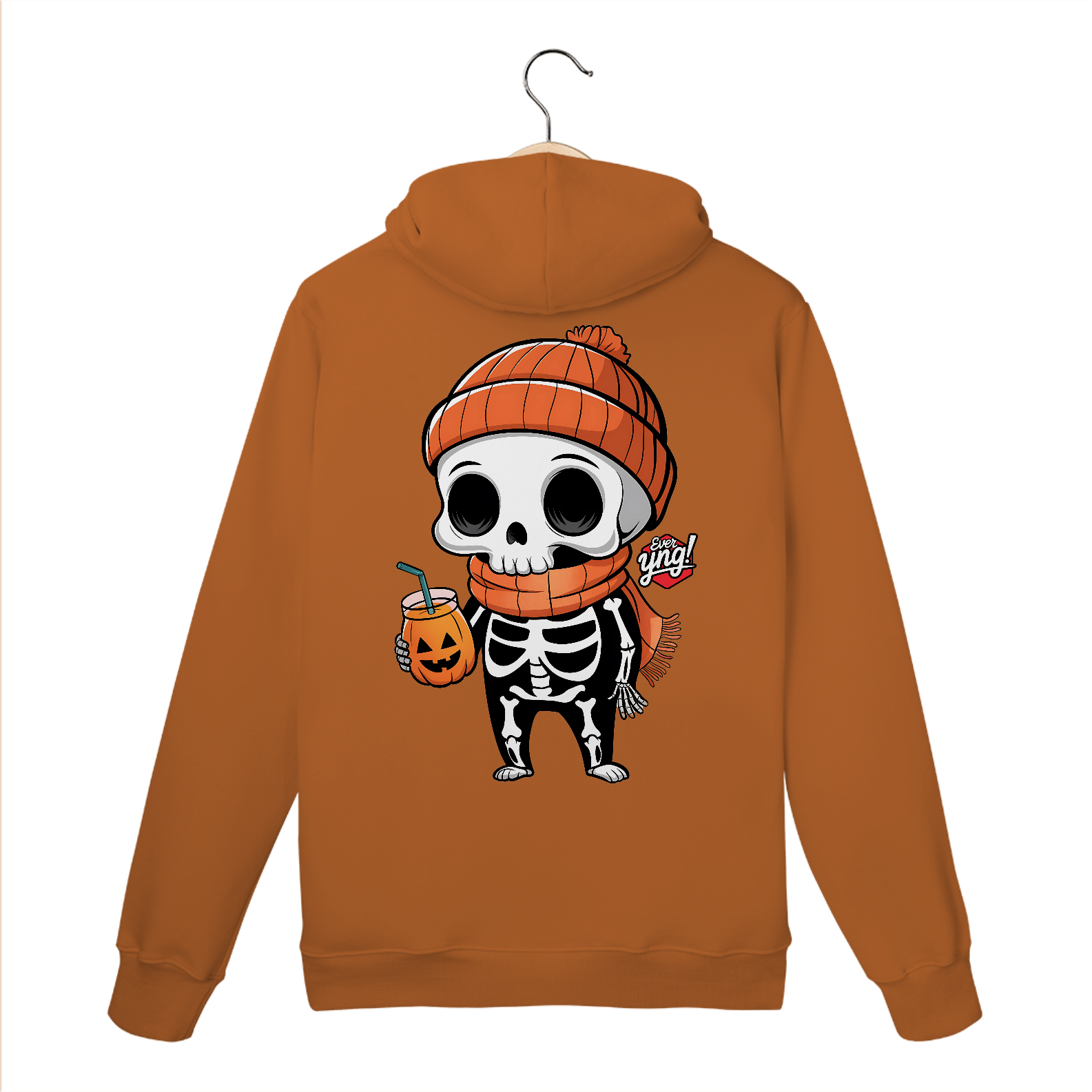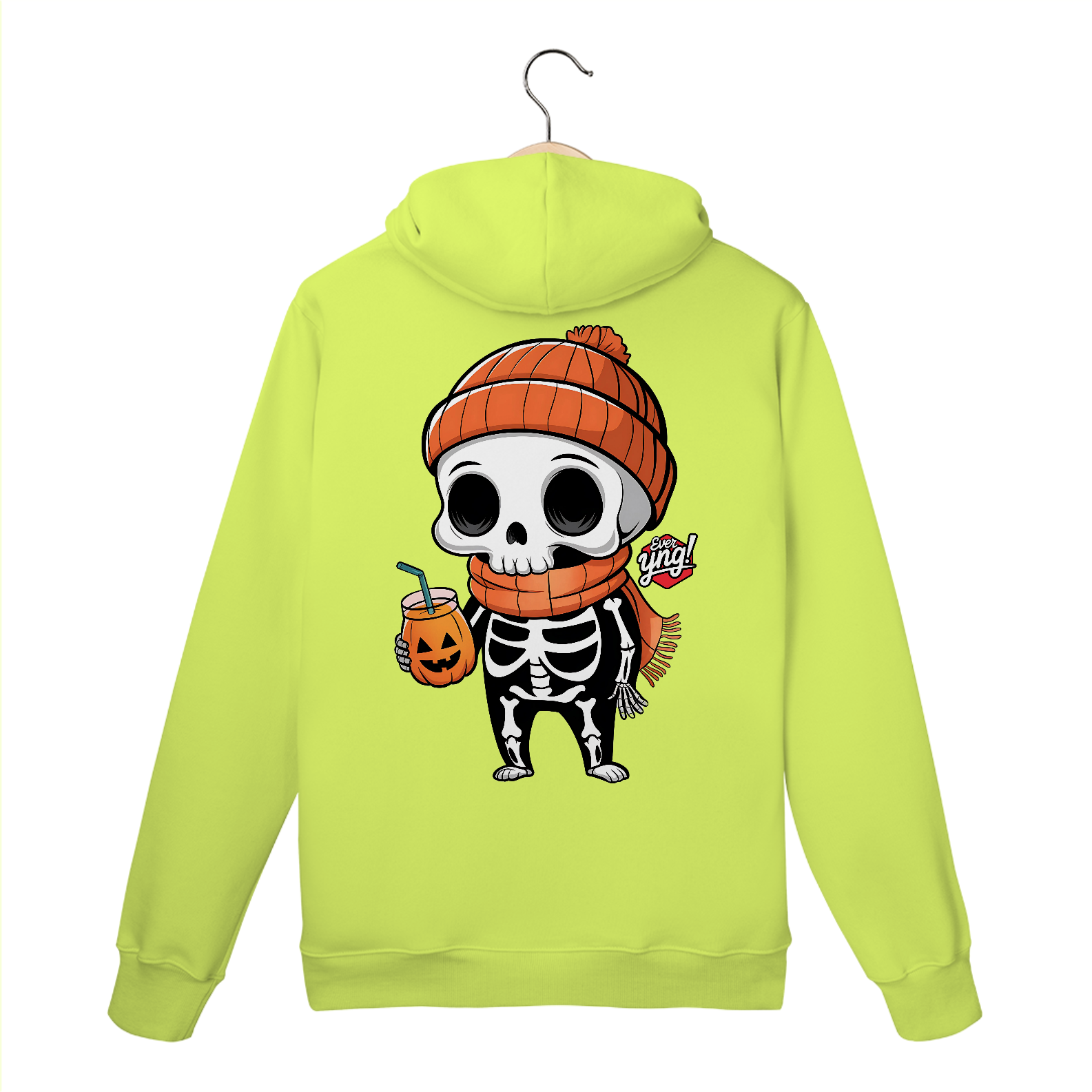 Traga a alegria do Halloween para o seu dia a dia com esta estampa divertida de um esqueleto de desenho animado! Com um gorro laranja e uma xícara de "suco de abóbora", o esqueleto exibe um sorriso contagiante que vai alegrar qualquer look. É uma peça perfeita para as festividades, mas também para quem adora um estilo descontraído e divertido no cotidiano. Com a qualidade da "Ever Yng!", este moletom é um must-have para os jovens que amam se expressar!