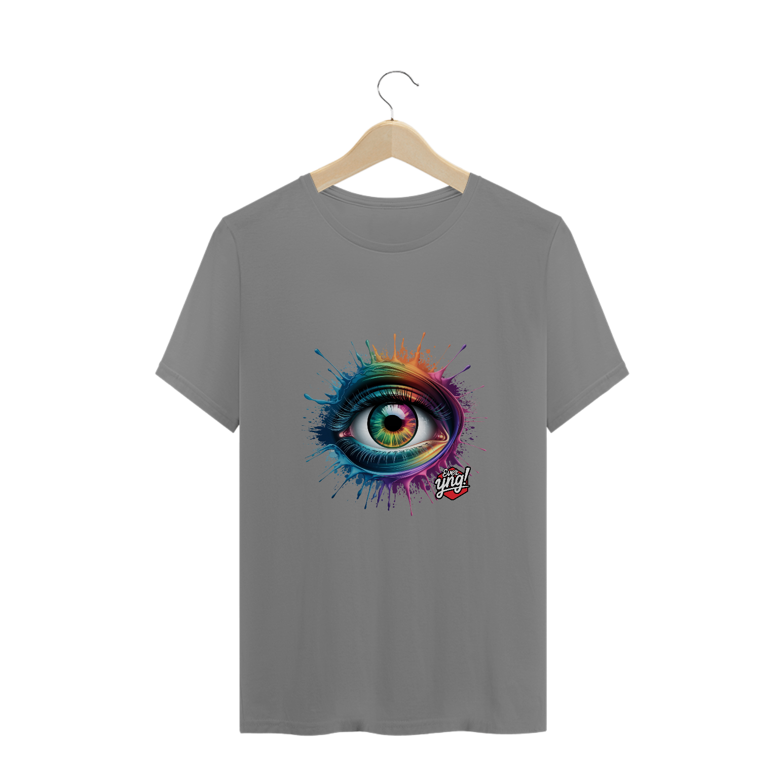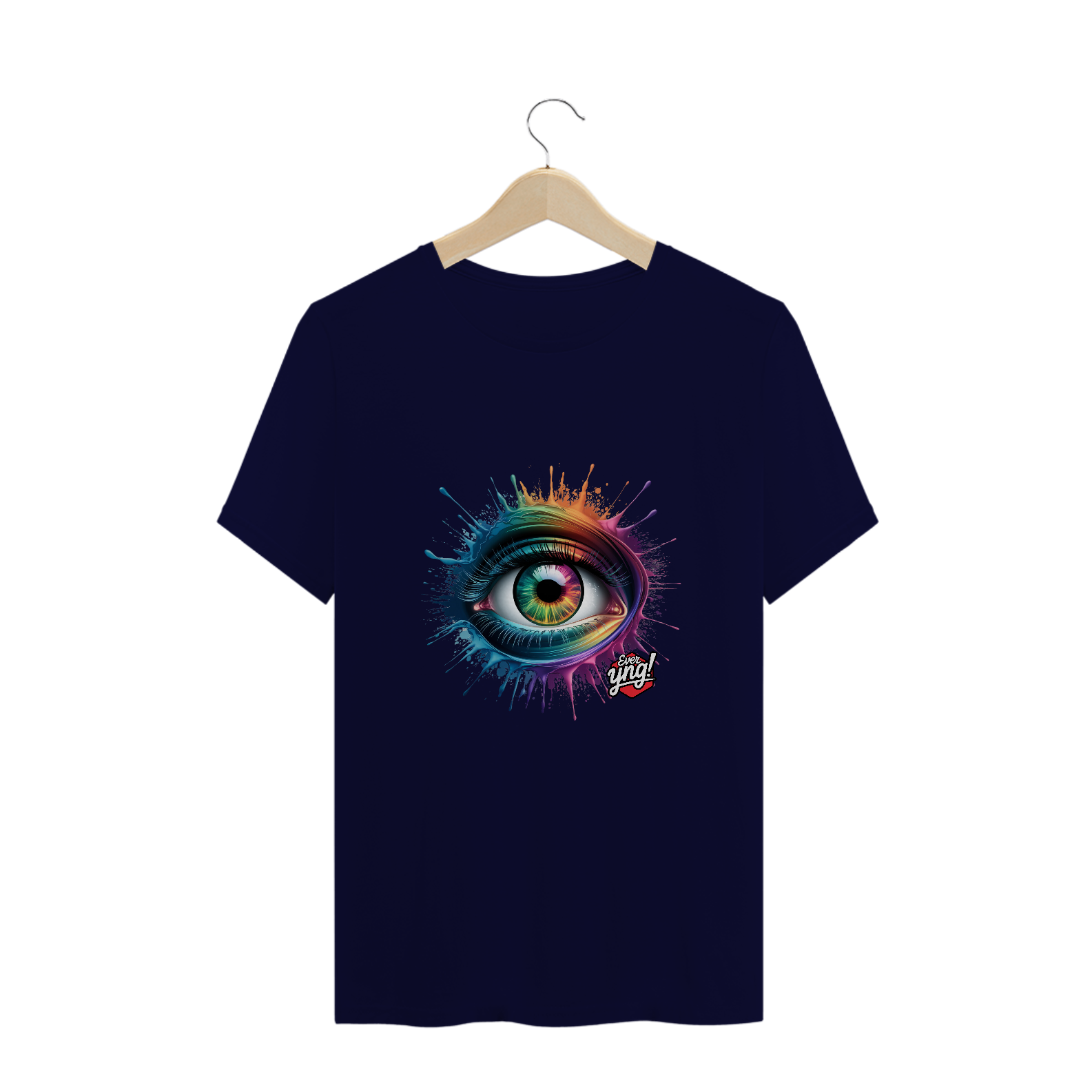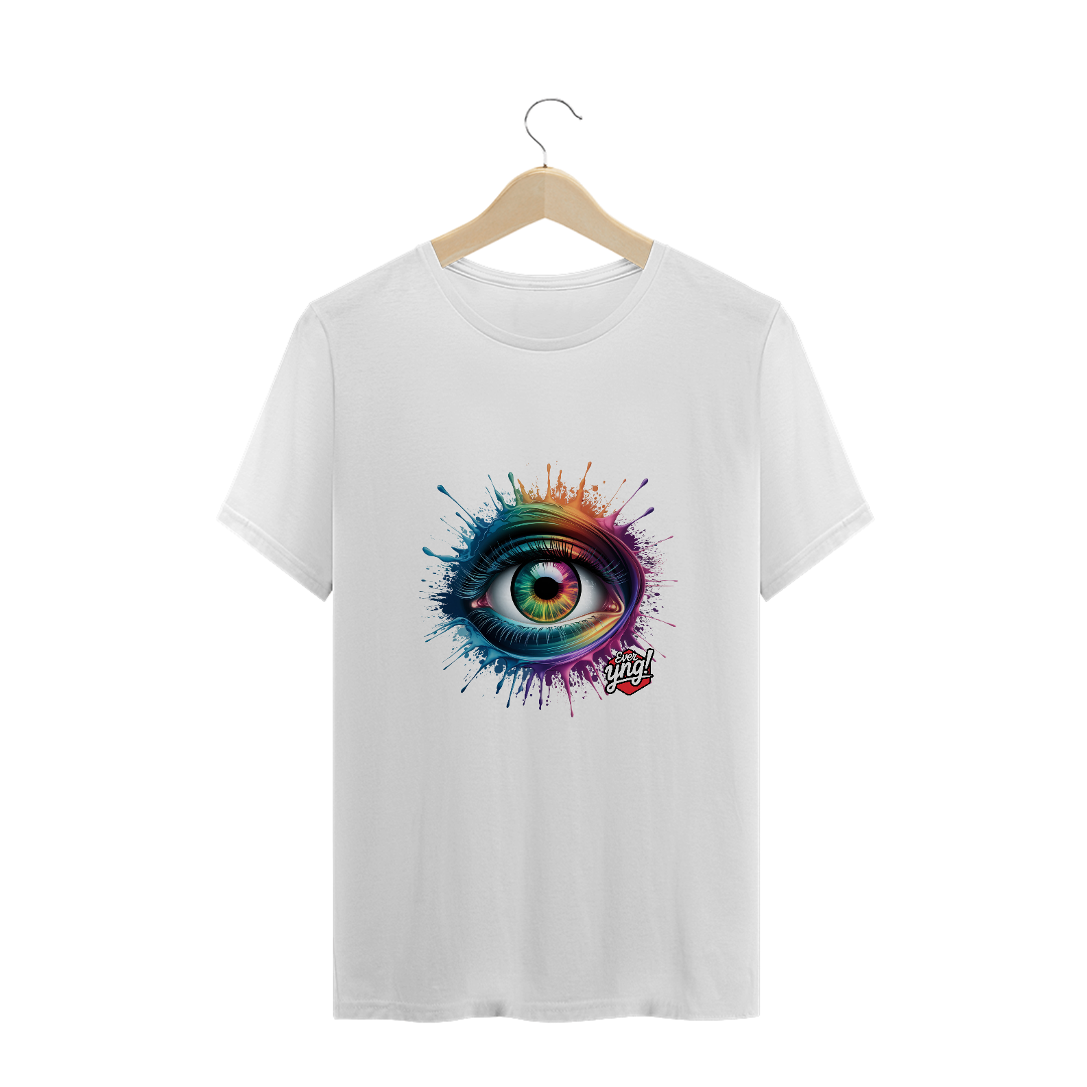 Entre em um mundo de cores e energia com a estampa "Explosão de Olhar". Um olho multicolorido cercado por respingos dinâmicos de tinta em um padrão radial traz uma sensação vibrante de movimento e expressão. Cada detalhe desta peça da Ever Yng! irradia juventude e vitalidade, lembrando que o estilo é eterno e, aqui, envelhecer é opcional. Use arte, use cor, use sua liberdade!
