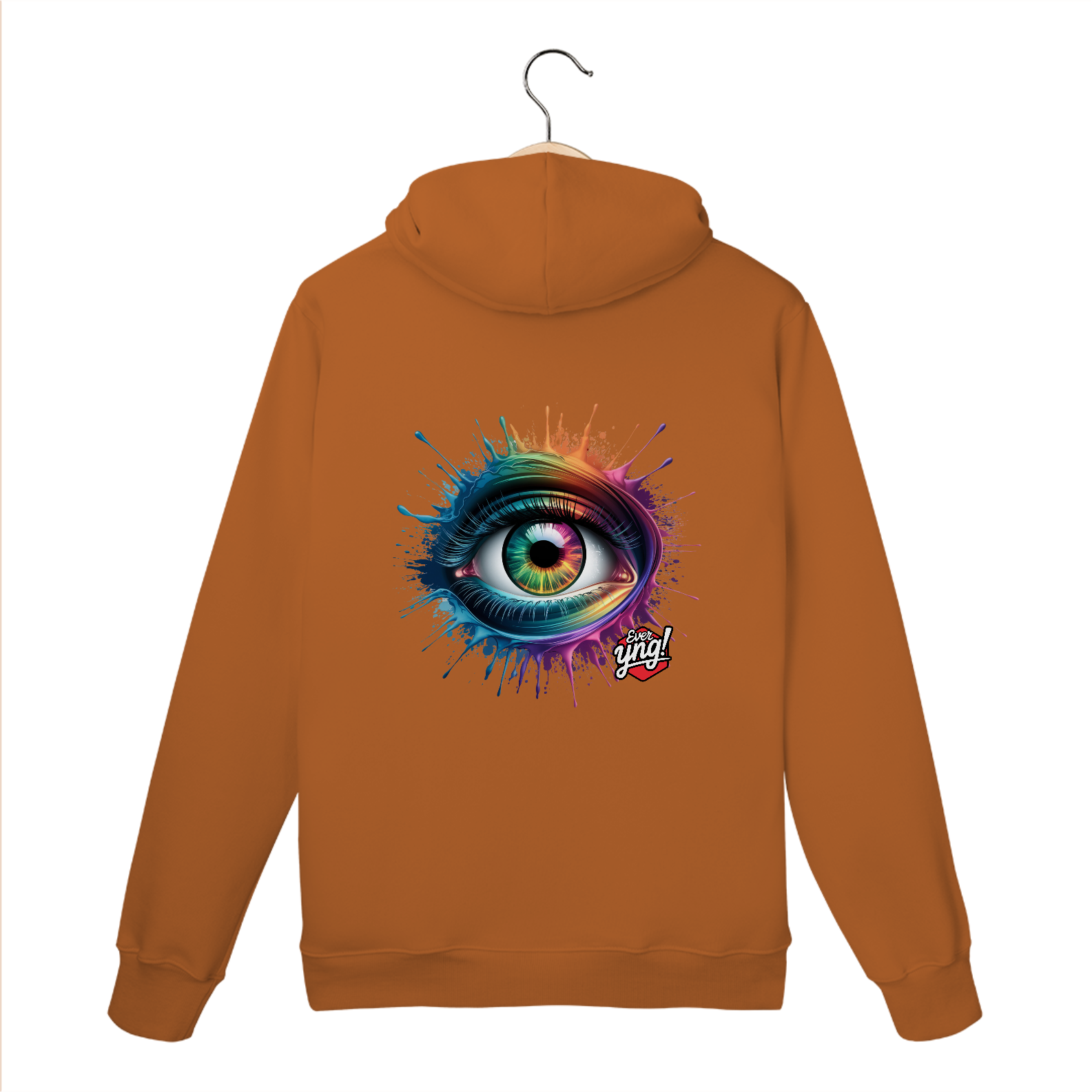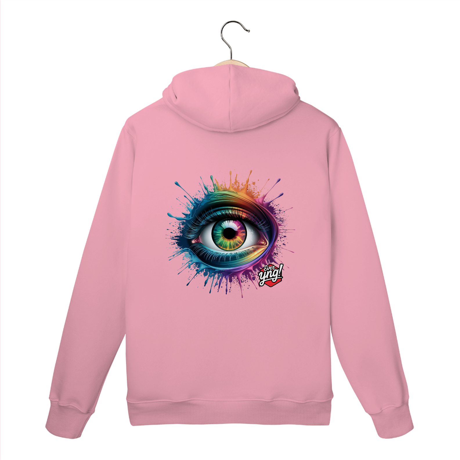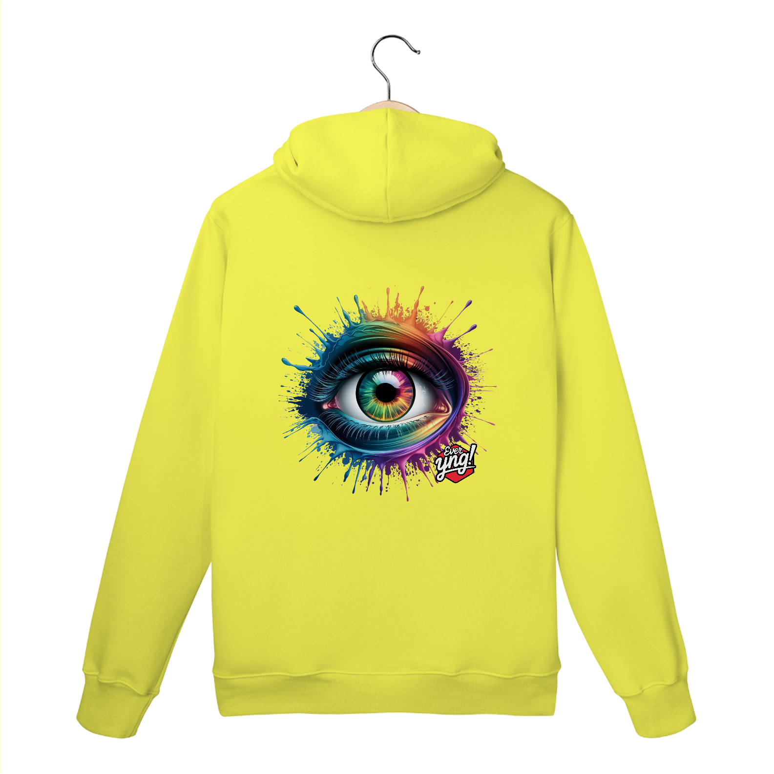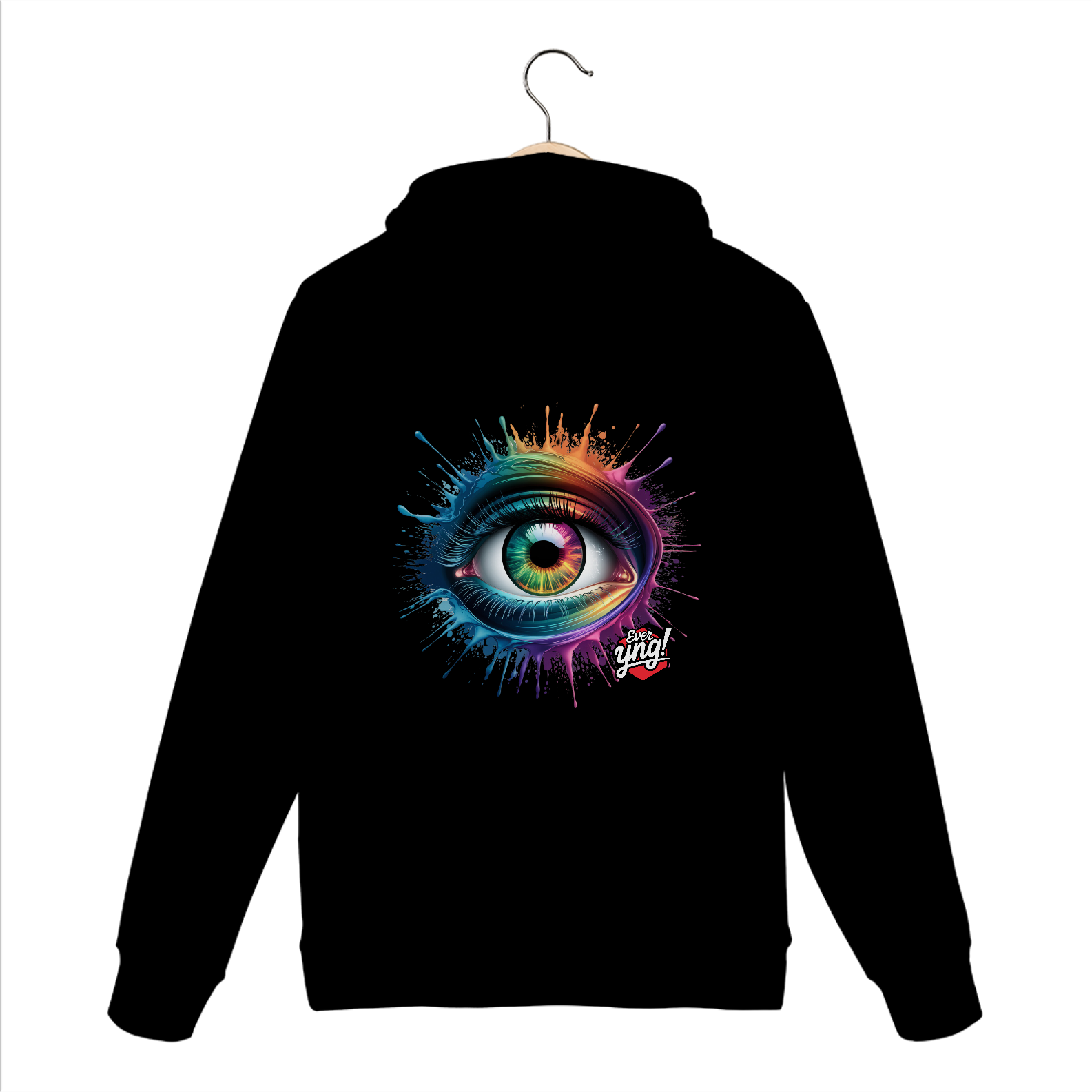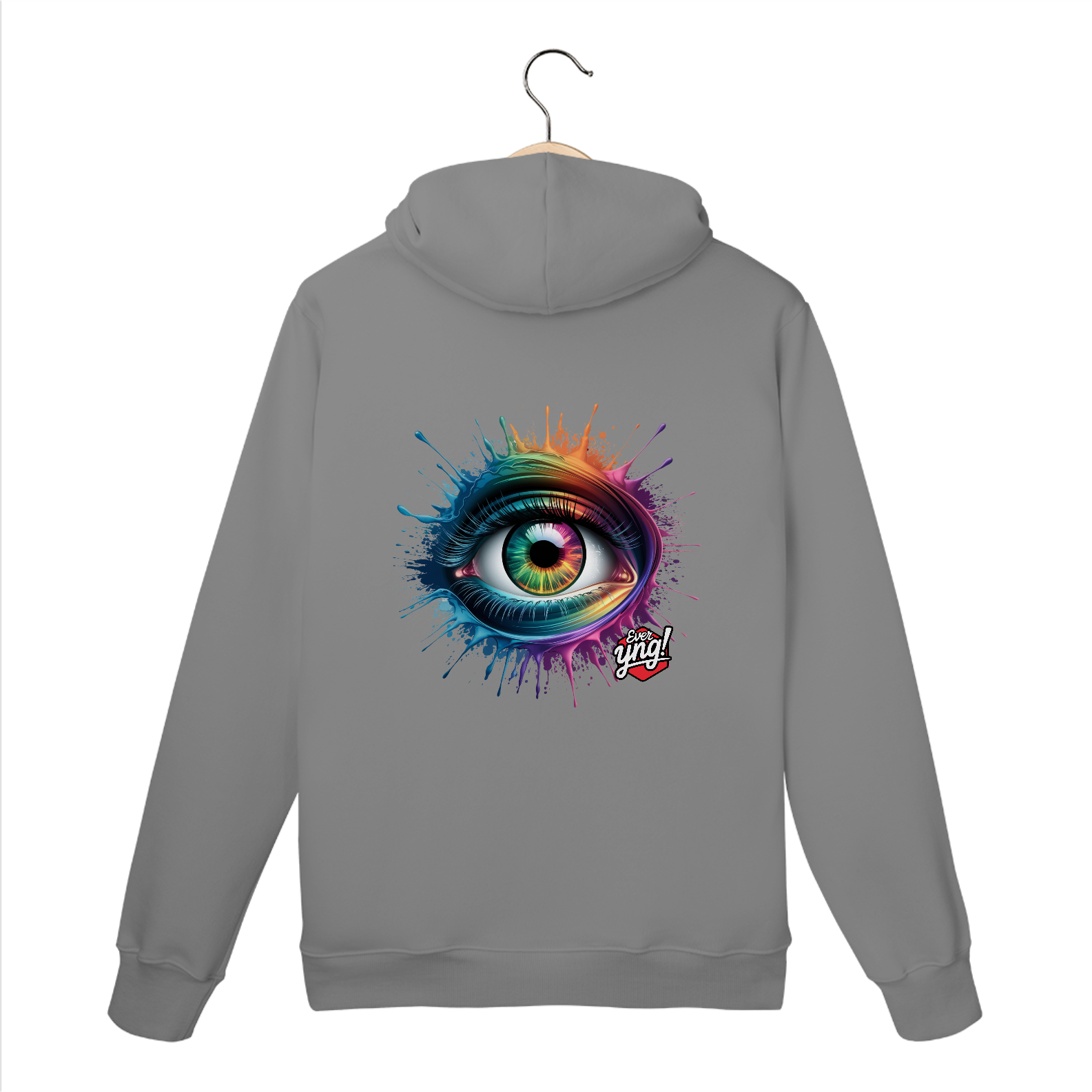 Entre em um mundo de cores e energia com a estampa "Explosão de Olhar". Um olho multicolorido cercado por respingos dinâmicos de tinta em um padrão radial traz uma sensação vibrante de movimento e expressão. Cada detalhe desta peça da Ever Yng! irradia juventude e vitalidade, lembrando que o estilo é eterno e, aqui, envelhecer é opcional. Use arte, use cor, use sua liberdade!