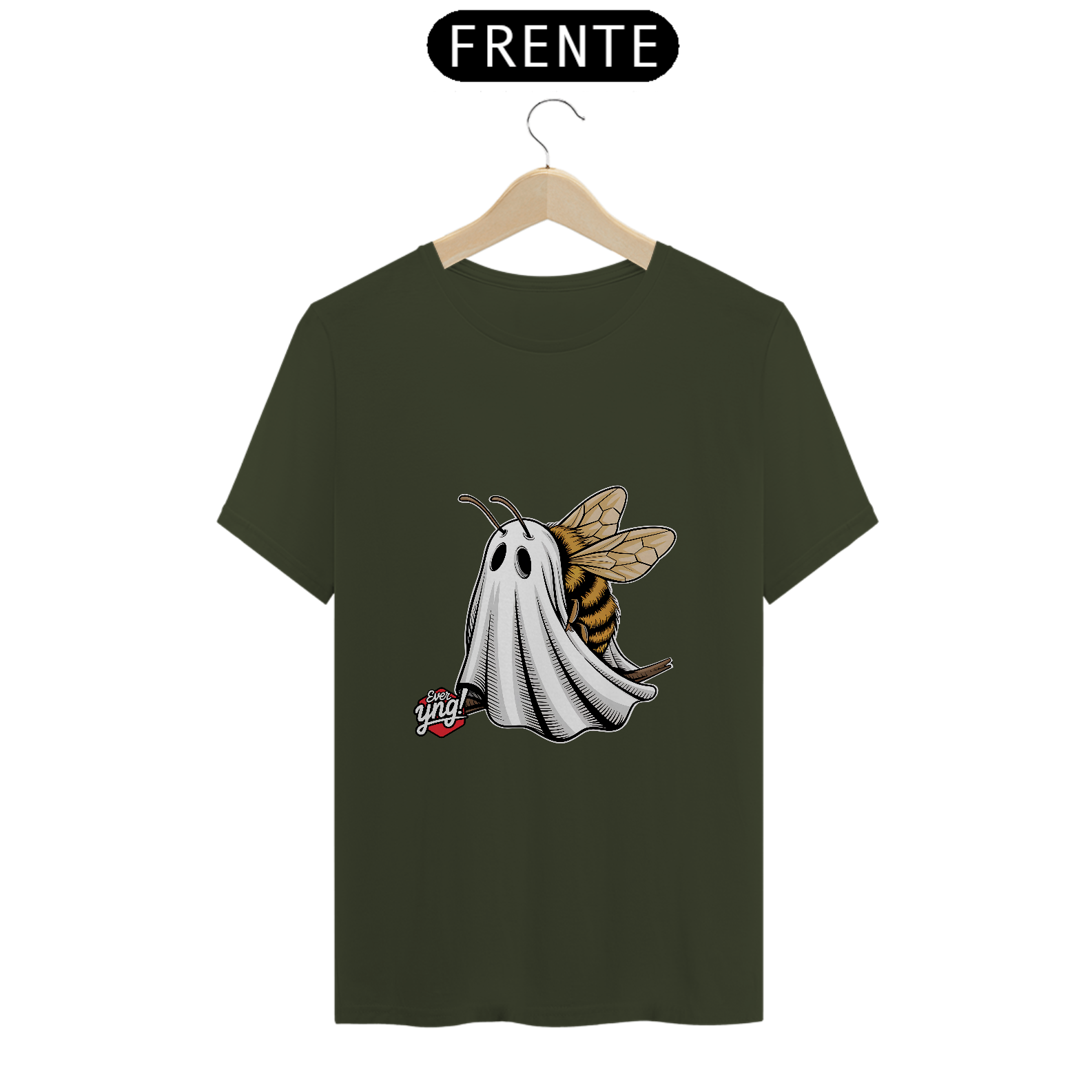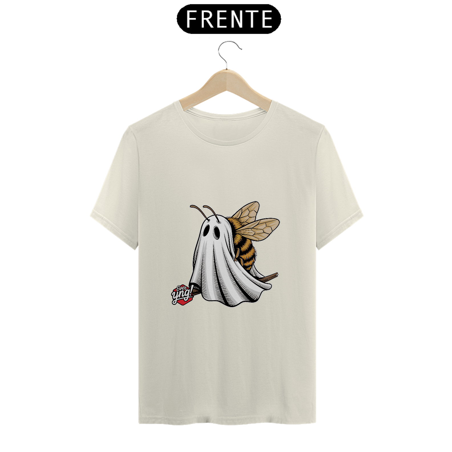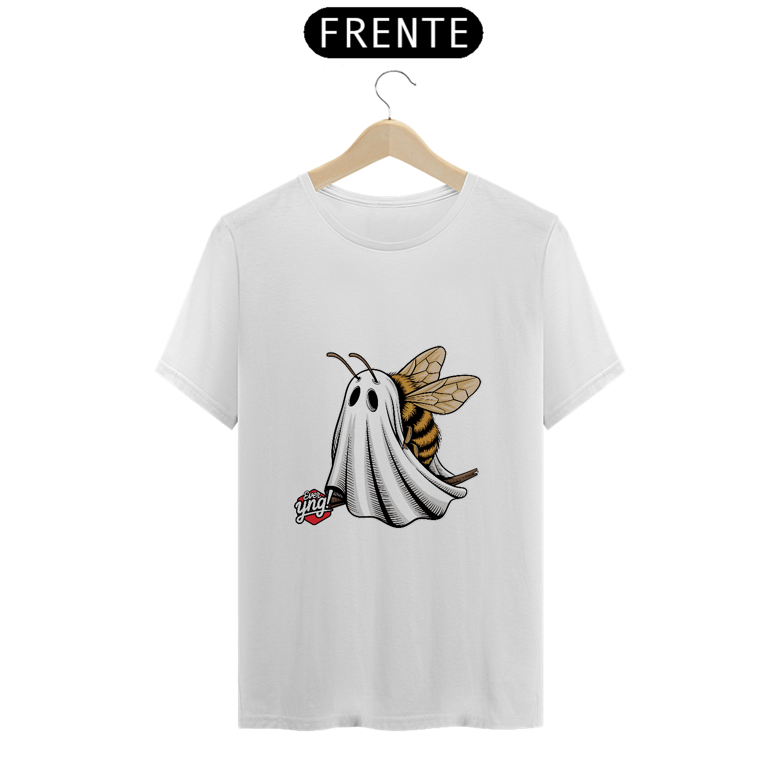 A fusão mais inesperada e criativa está aqui com a estampa "Fantasma Zumbidor"! Apresentando uma abelha fantasma, este design da Ever Yng! combina o toque divertido e assustador em uma única imagem. A abelha com listras amarelas e pretas, envolta em um lençol branco fantasmagórico, flutua com leveza. Leve o zumbido do mistério para o seu estilo e mantenha-se jovem, porque na Ever Yng!, envelhecer é opcional!