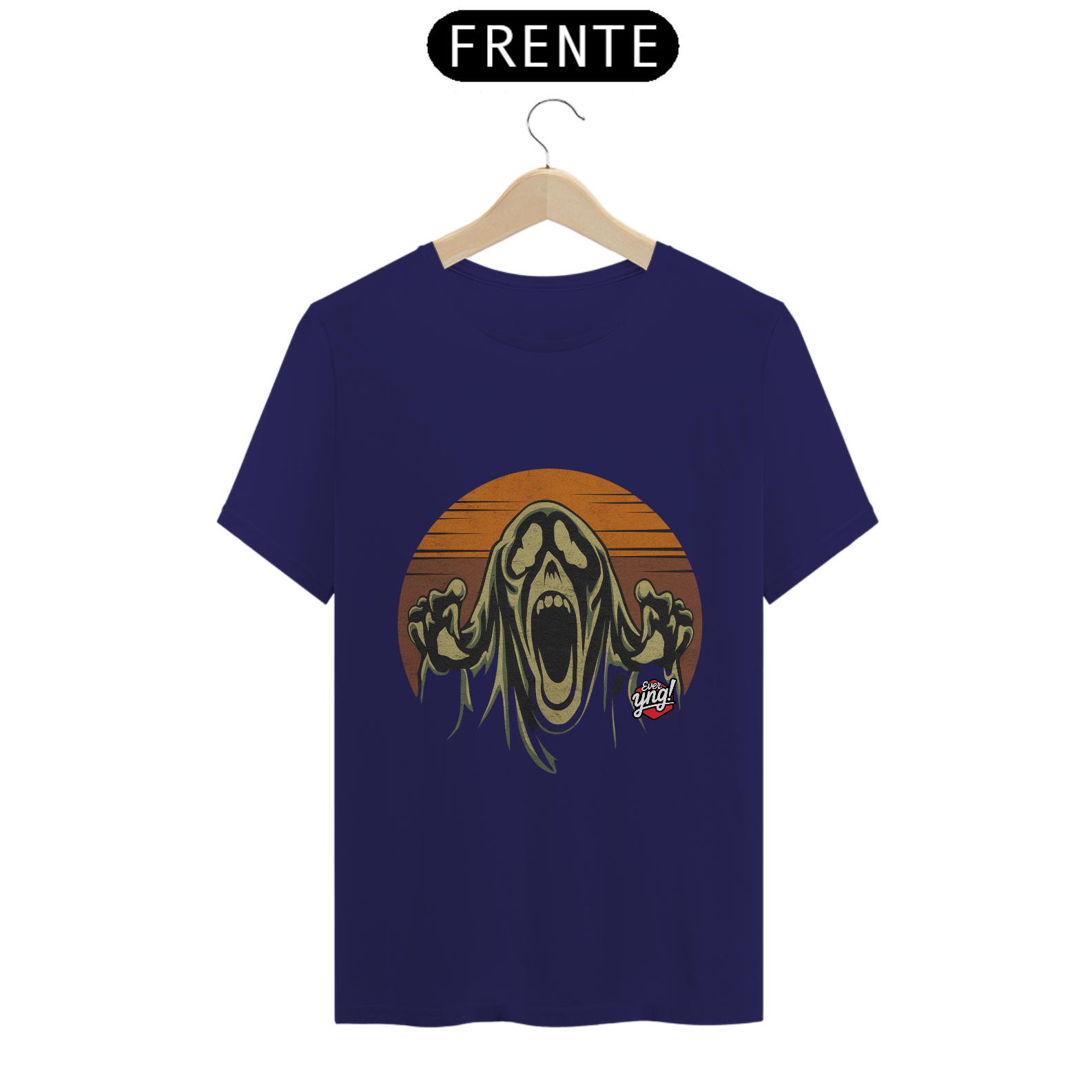 Sinta a presença sobrenatural com a estampa Grito Fantasmagórico da ever Yng!. Um fantasma assustador estende as mãos, enquanto grita com uma intensidade que faz até os mais corajosos tremerem! Com um fundo vibrante laranja-avermelhado, esse design captura a essência de uma noite sombria e misteriosa.