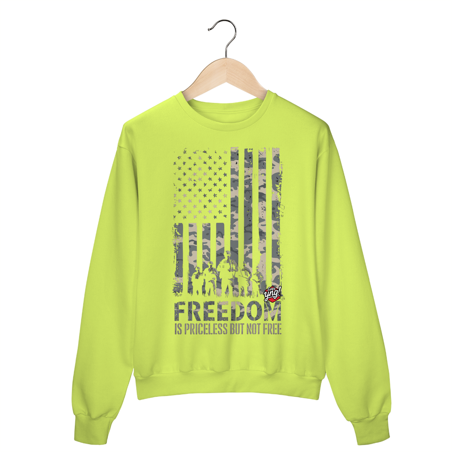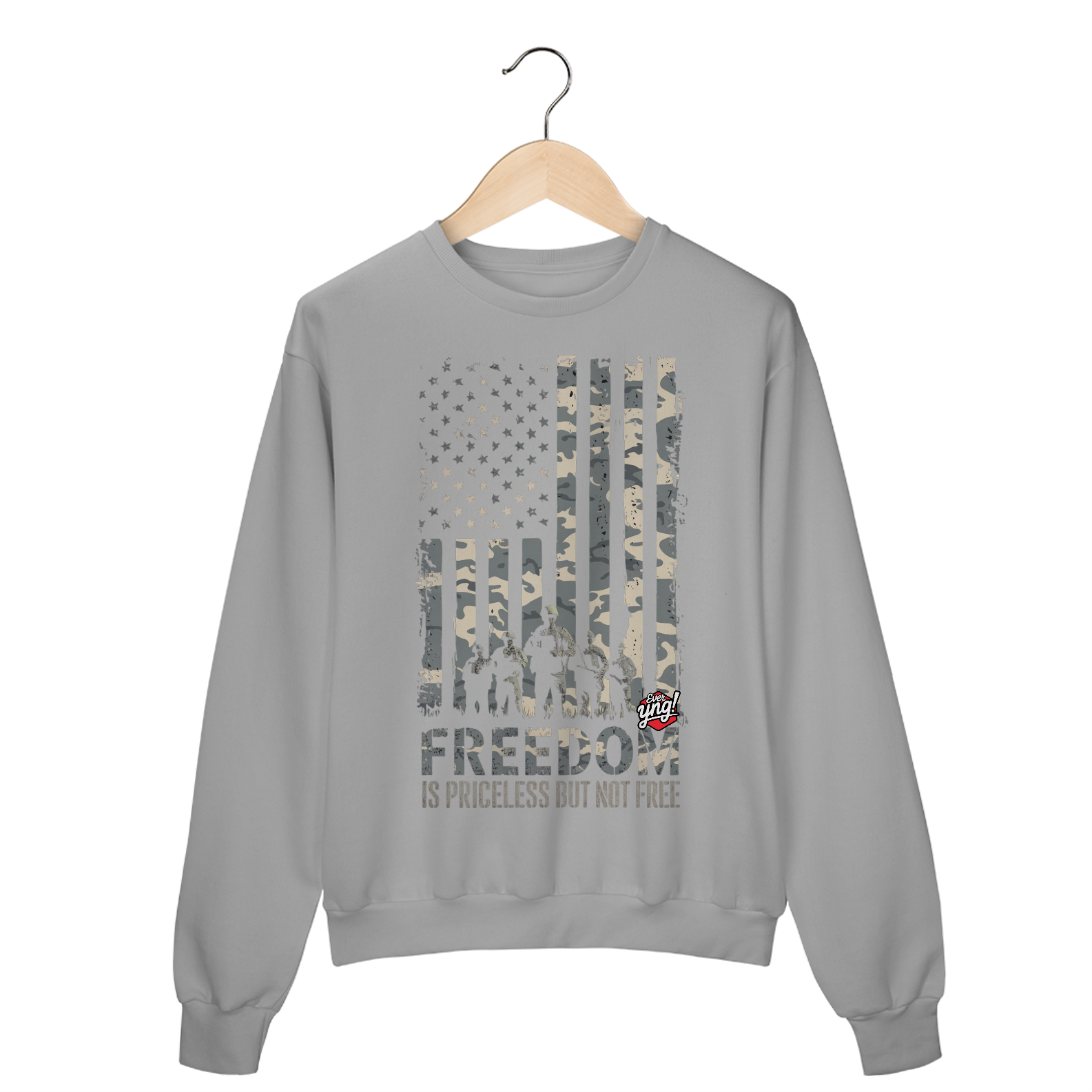 Um tributo à bravura e ao sacrifício, a camisa ever Yng! "Liberdade Não Tem Preço" é uma poderosa declaração. Com a bandeira americana em camuflagem e soldados em silhueta, essa estampa honra aqueles que lutam pela liberdade. A mensagem impactante "A LIBERDADE NÃO TEM PREÇO, MAS NÃO É GRATUITA" reforça a importância de valorizar os sacrifícios feitos. Ideal para quem quer carregar uma mensagem de força e patriotismo no peito.