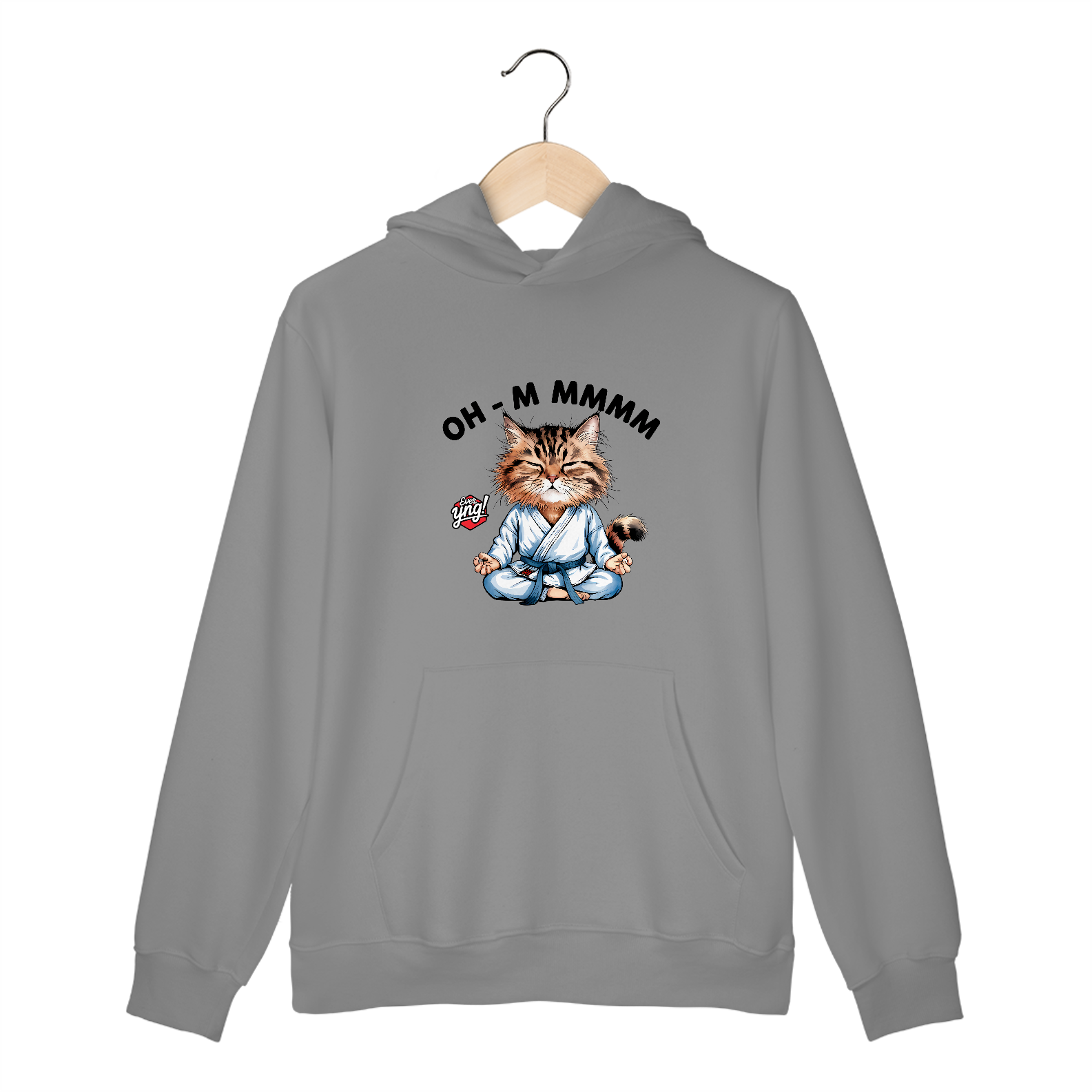 Encontre a paz interior com a estampa "OH-M MMMM" da Ever Yng!. Um gato meditativo em um kimono de artes marciais traz um toque de tranquilidade e humor à sua coleção. Esta peça é perfeita para aqueles que apreciam um bom momento de relaxamento e querem expressar isso de maneira divertida.