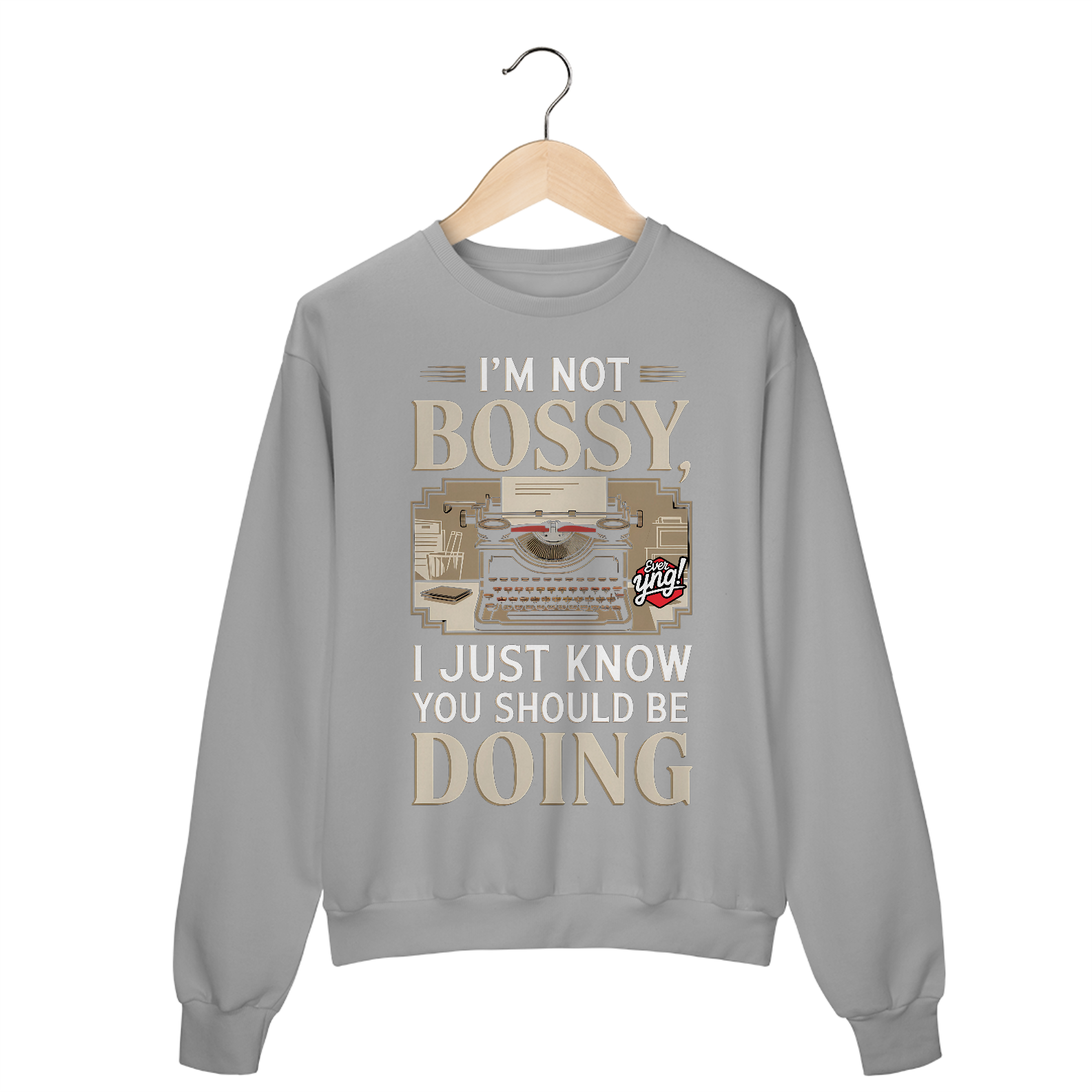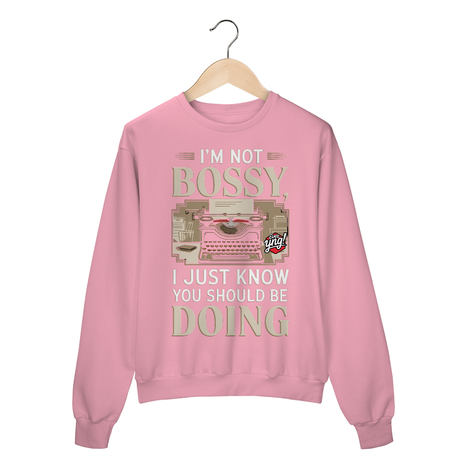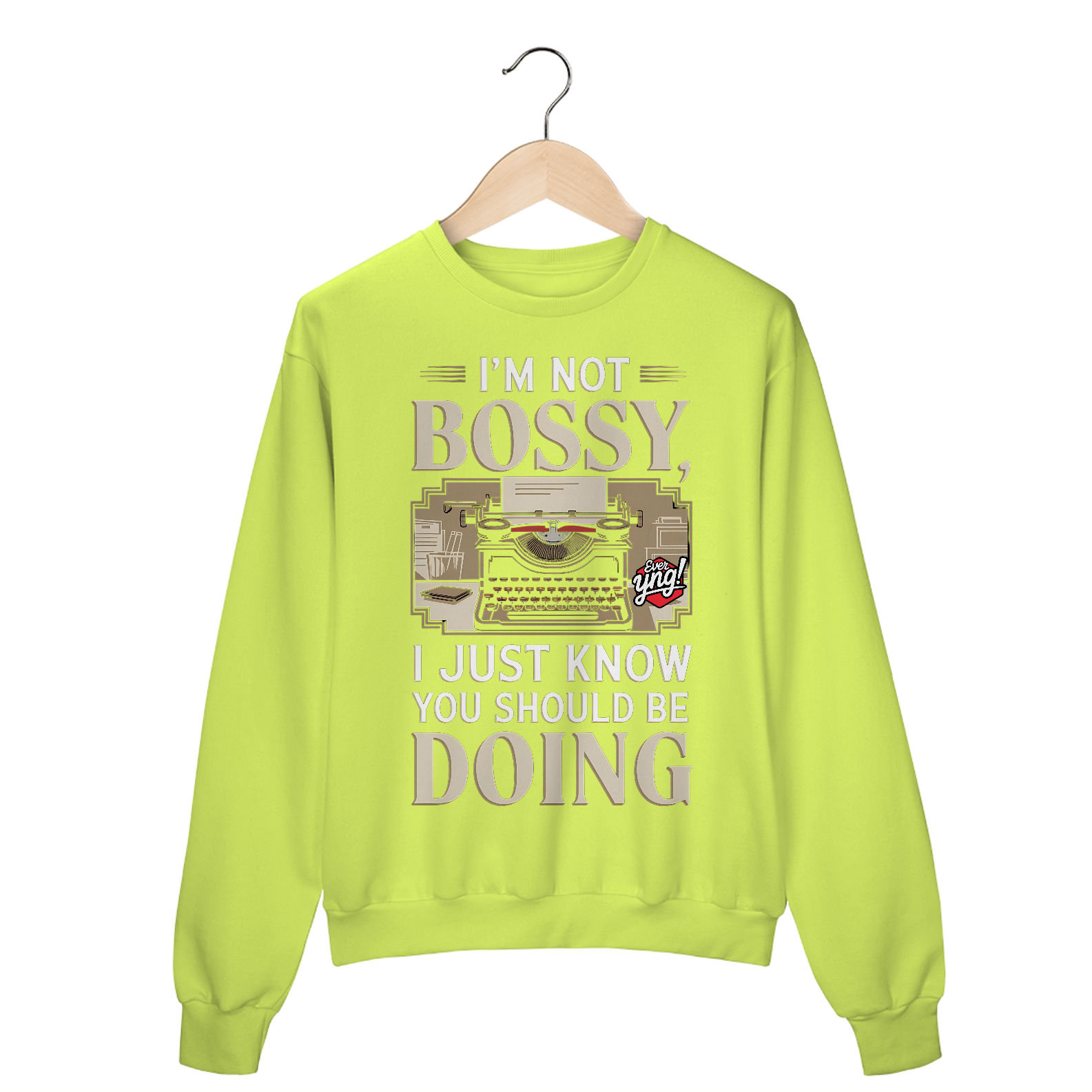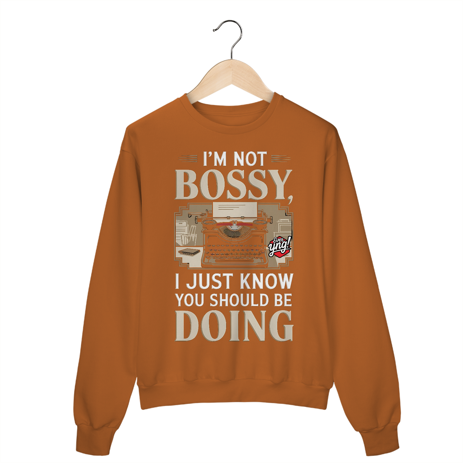 Com um toque vintage, uma máquina de escrever retrô e a frase "NÃO SOU MANDÃO, SÓ SEI QUE VOCÊ DEVERIA FAZER", essa estampa traz um humor sutil e uma pitada de autoridade. Um item para quem gosta de liderar com estilo. A Ever Yng traduz estilo e criatividade com essa peça.