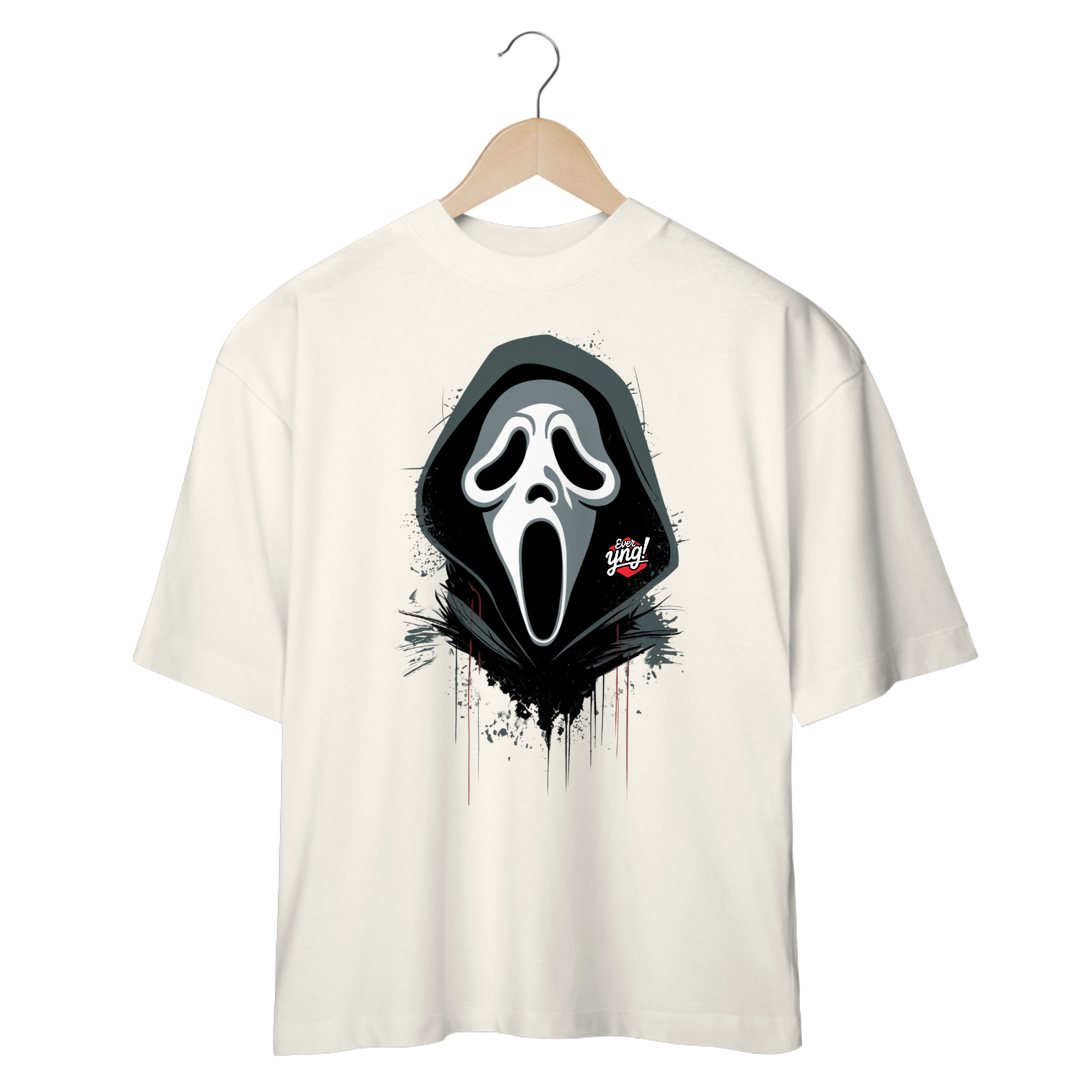 O suspense está no ar com a estampa "O Grito Fantasmagórico", uma criação estilosa da ever Yng! Este rosto assombrado, em branco etéreo, paira sobre um fundo bege suave, envolto em um capuz preto sombrio. Seus olhos vazios e a boca aberta em um grito silencioso são intensificados pelos respingos vermelhos dramáticos, que trazem um toque de mistério e tensão. Ideal para quem gosta de moda com uma pitada de terror e estilo enigmático. Lembre-se: envelhecer é opcional, e o estilo dark também pode ser jovem.