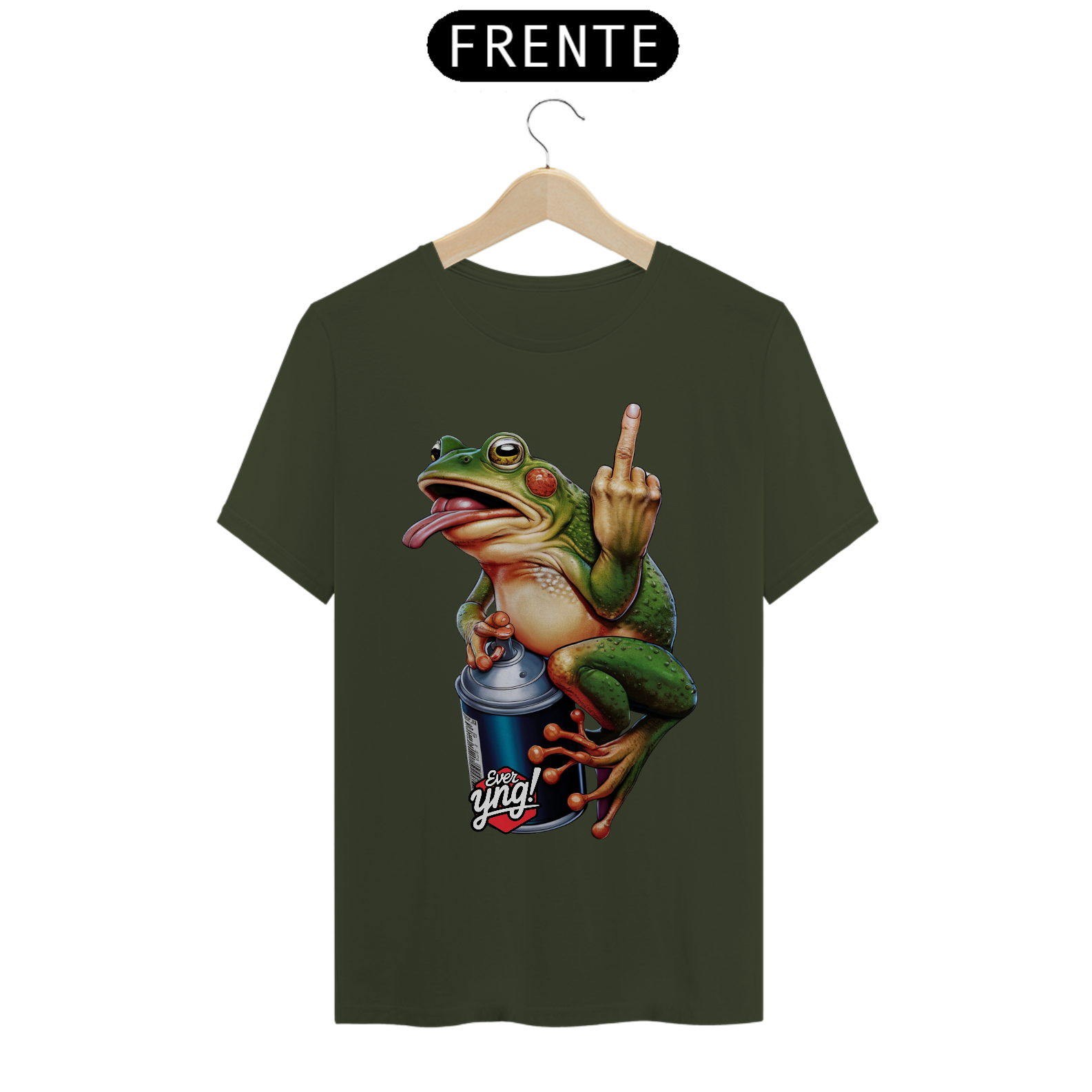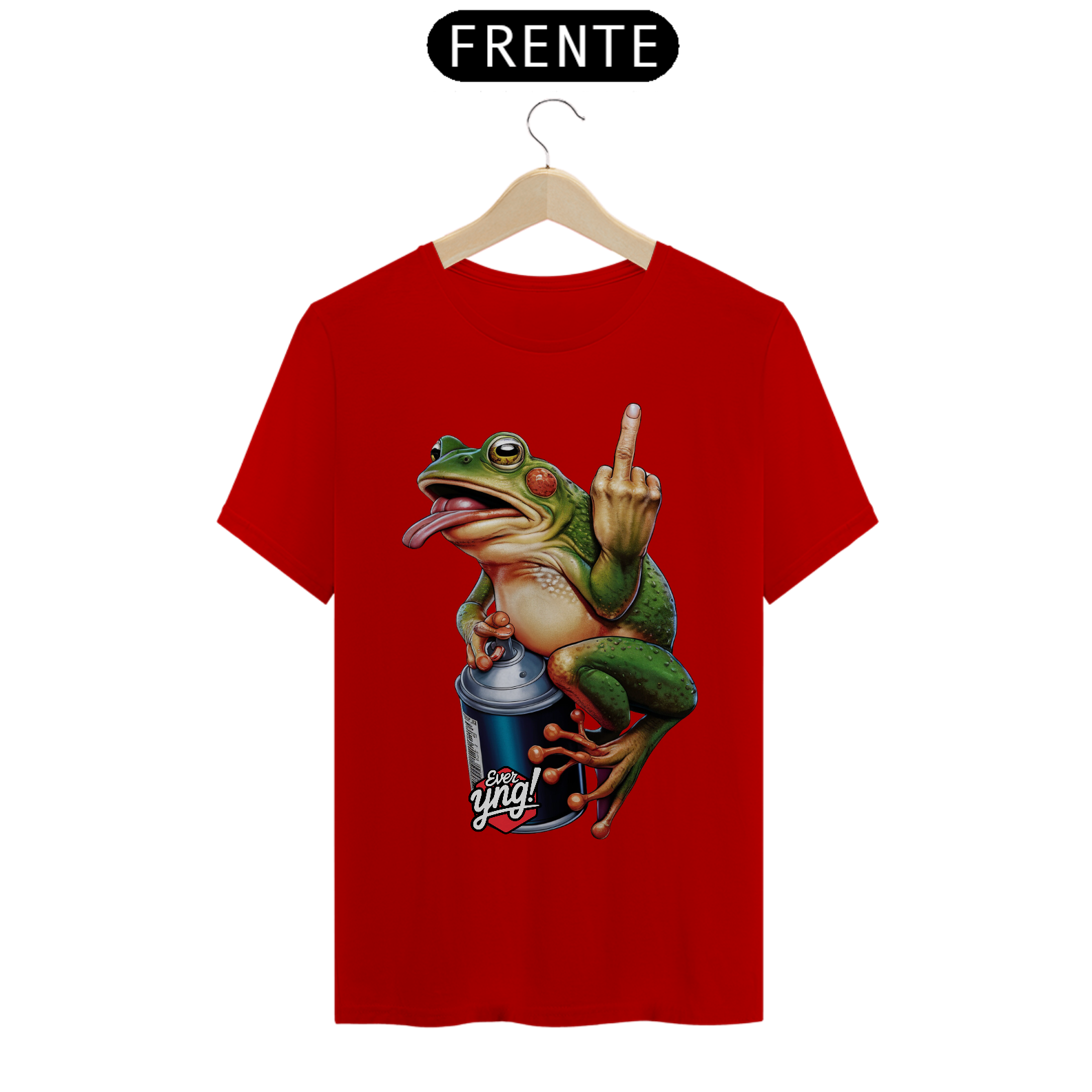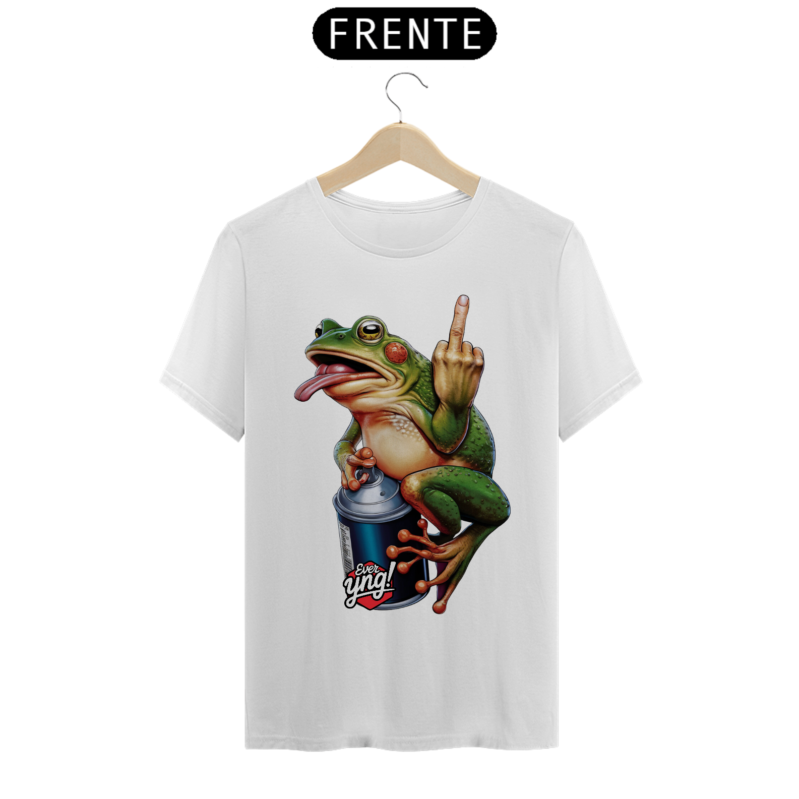 Prepare-se para quebrar padrões com o “Sapo Rebelde”, uma peça divertida e cheia de atitude da ever Yng! Este sapo vibrante, de tons verdes, laranja e vermelho, não está aqui para brincadeira. Sentado em uma lata de spray e exibindo um gesto atrevido com o dedo, o sapo desafia convenções e traz uma explosão de cores. Para quem gosta de moda ousada e jovem, esta é a peça perfeita para exibir seu estilo e senso de humor rebelde. Afinal, envelhecer é opcional – mas ser jovem é uma escolha de atitude.