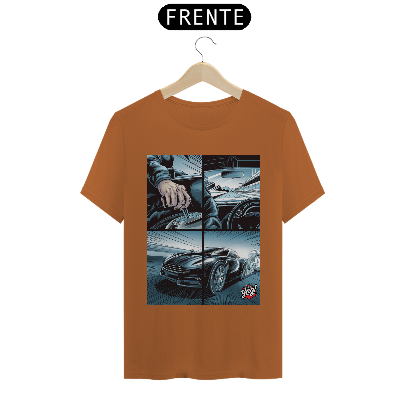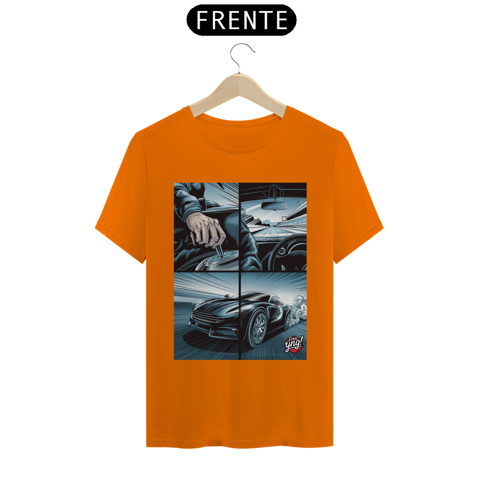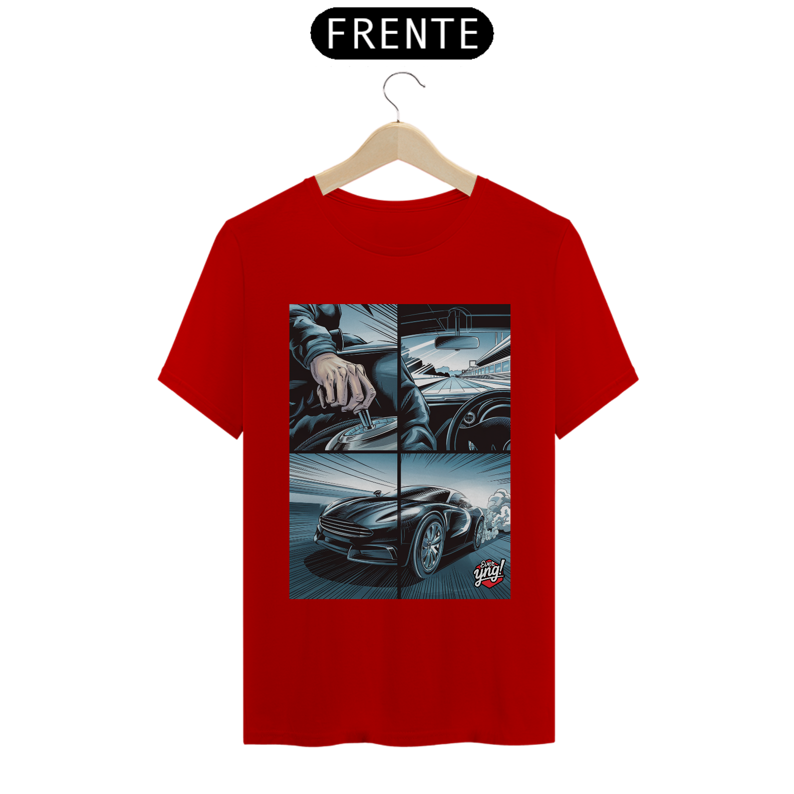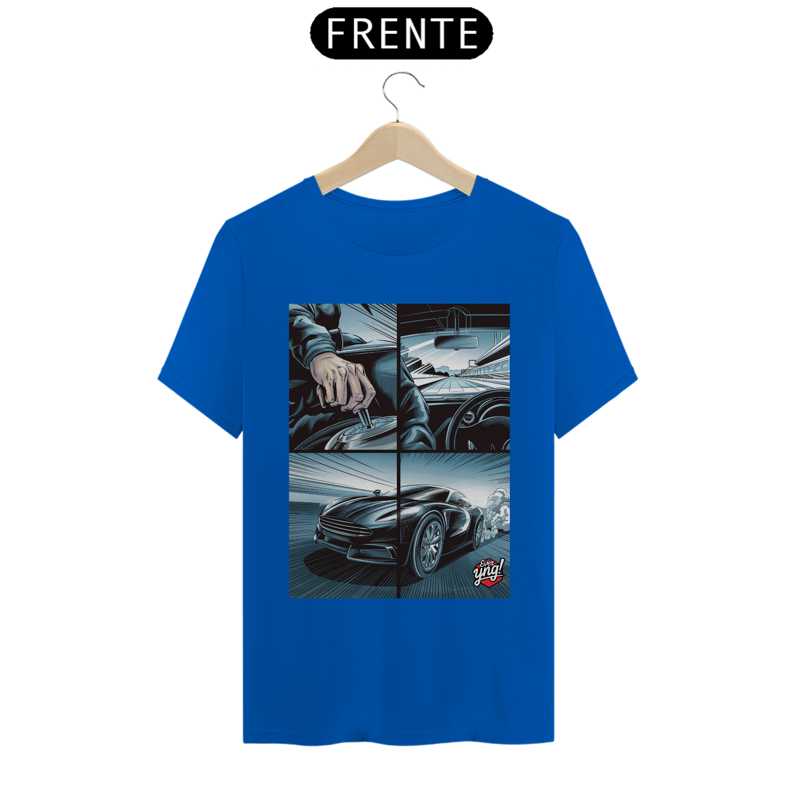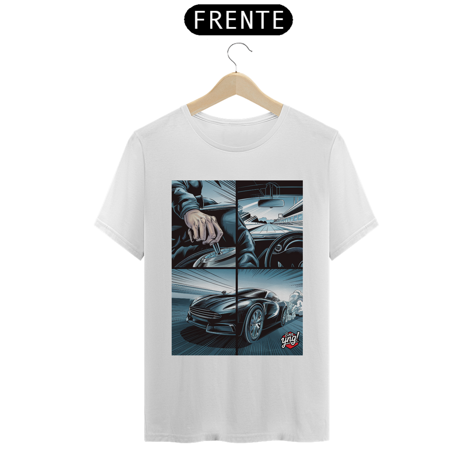 Para os amantes da adrenalina e da sensação de liberdade ao volante, a camisa *ever Yng!* "Velocidade em 4 Painéis" captura o dinamismo das estradas com um toque de quadrinhos. A estampa dividida em quatro partes retrata cada detalhe de uma viagem emocionante: desde a visão do volante até a estrada aberta e o carro em plena aceleração. Com linhas que sugerem movimento e velocidade, essa peça é perfeita para quem vive a vida no limite.