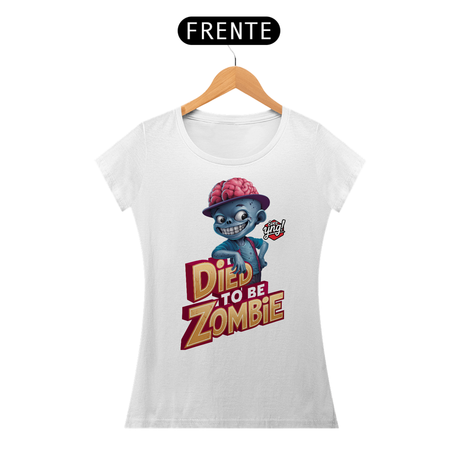 Mostre seu lado divertido com "Zumbi descolado". Esta peça traz um zumbi de desenho animado com um sorriso travesso e um cérebro exposto, encostado em uma placa que diz "Morreu para ser zumbi". Com cores vibrantes e um design engraçado, essa estampa é perfeita para quem adora um toque de humor e irreverência. Vista-se de forma ousada e divirta-se!