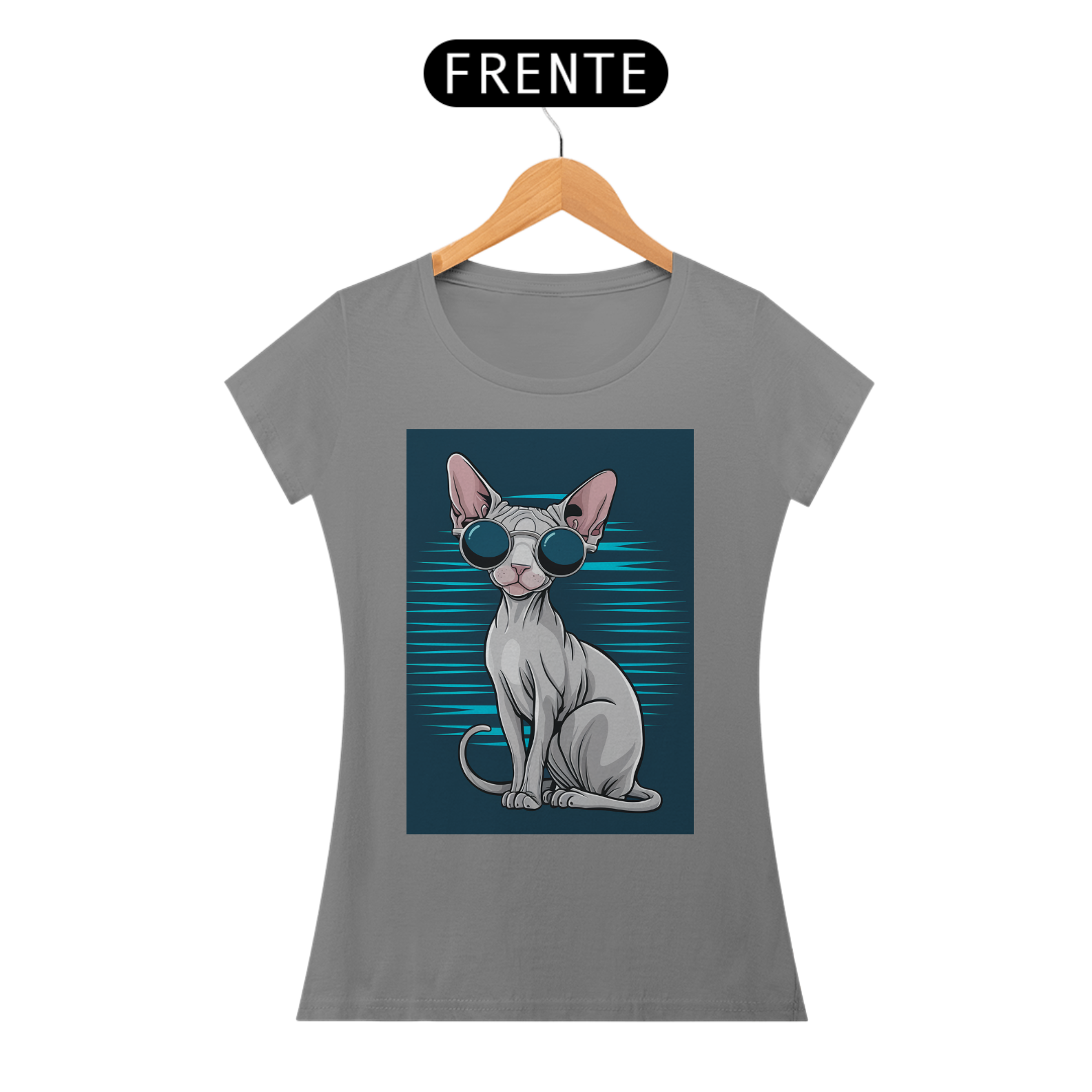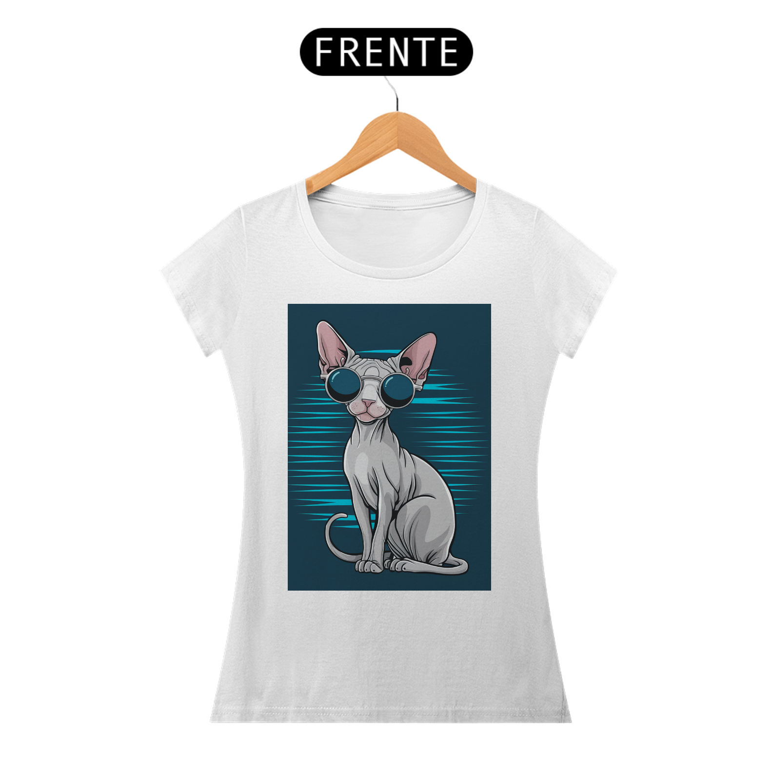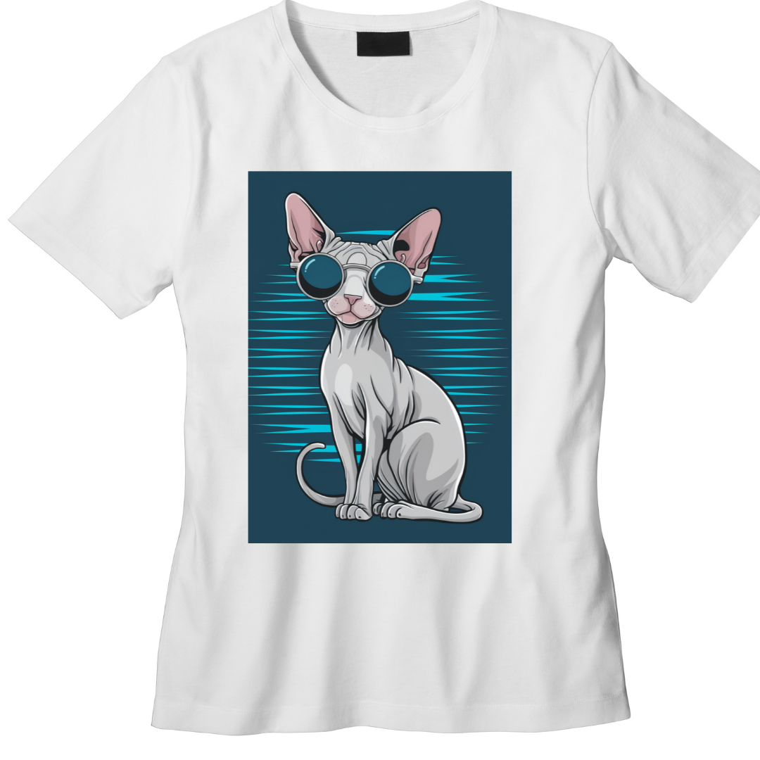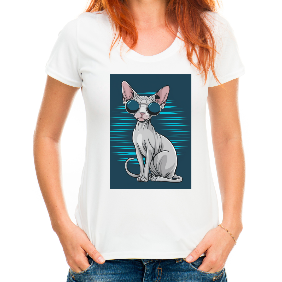 A camiseta perfeita para os amantes de gatos e quem adora um visual moderno e criativo! Este design apresenta um elegante gato Sphynx usando óculos de sol, trazendo personalidade e atitude para seu guarda-roupa. Com tecido macio e leve, ela é ideal para o dia a dia ou até mesmo para eventos casuais.