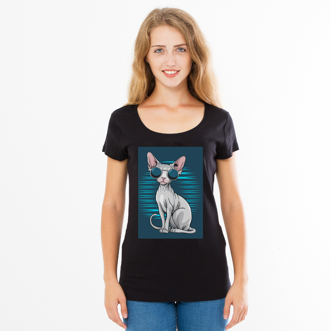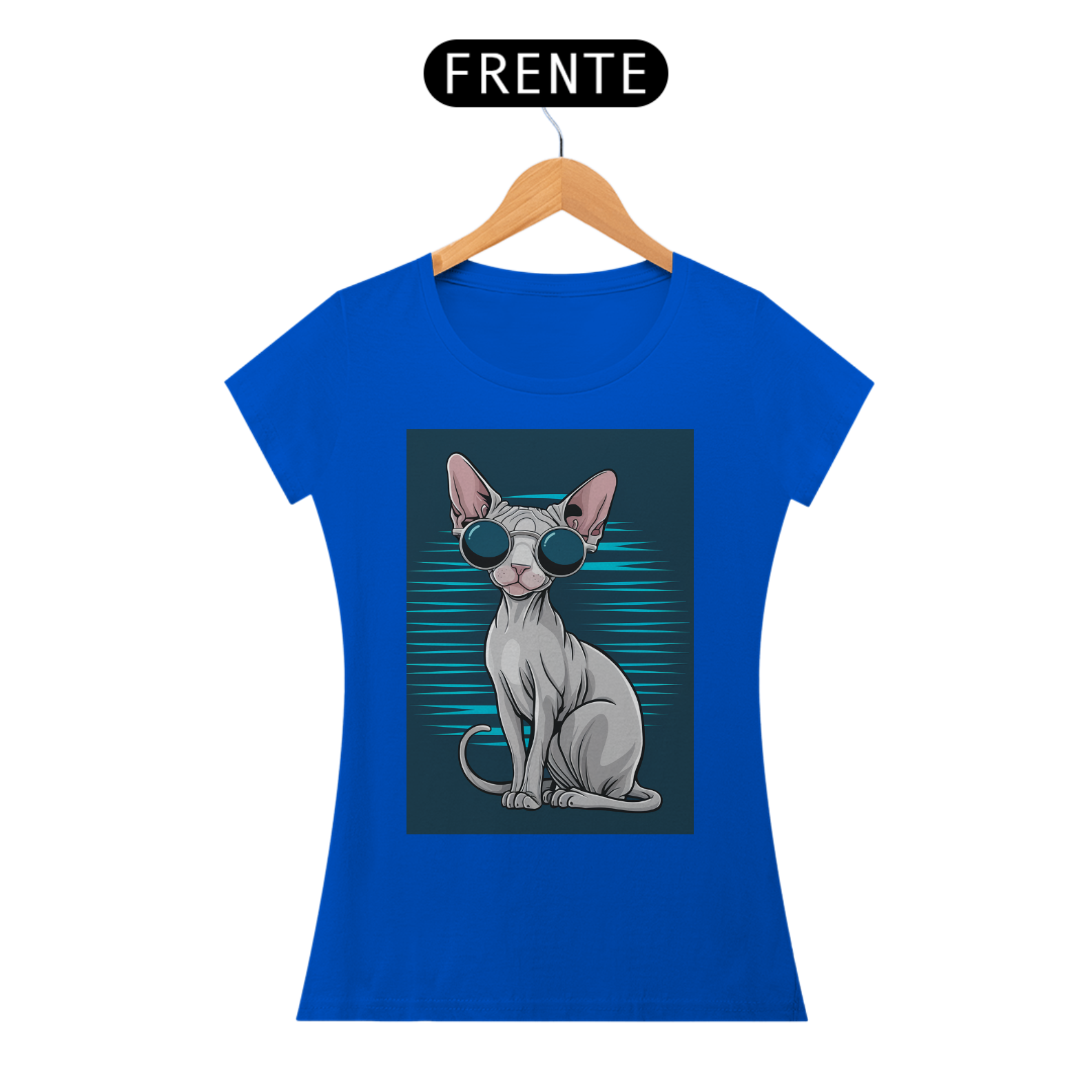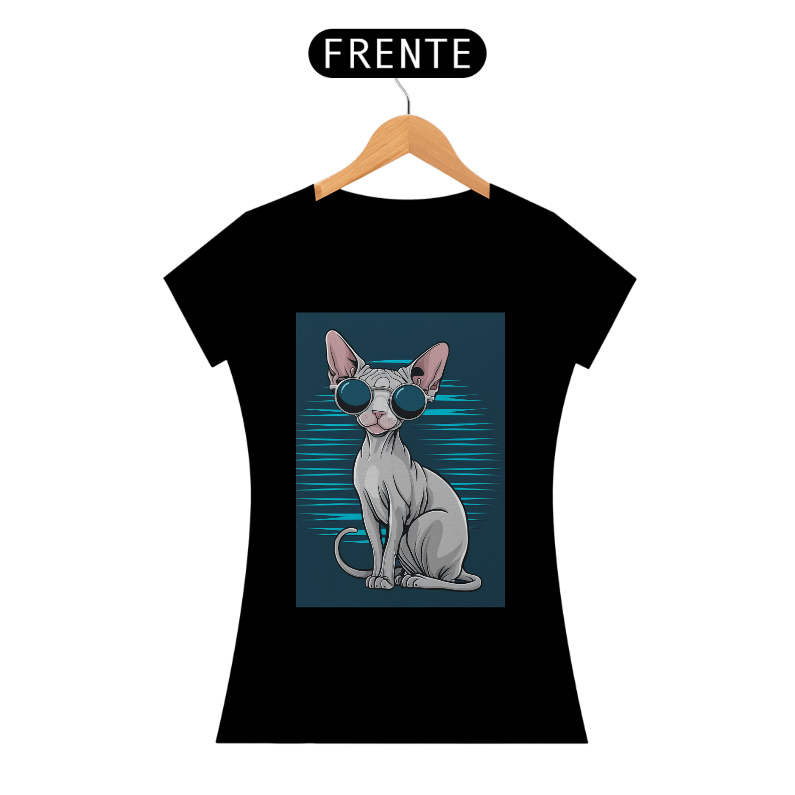 A camiseta perfeita para os amantes de gatos e quem adora um visual moderno e criativo! Este design apresenta um elegante gato Sphynx usando óculos de sol, trazendo personalidade e atitude para seu guarda-roupa. Com tecido macio e leve, ela é ideal para o dia a dia ou até mesmo para eventos casuais.