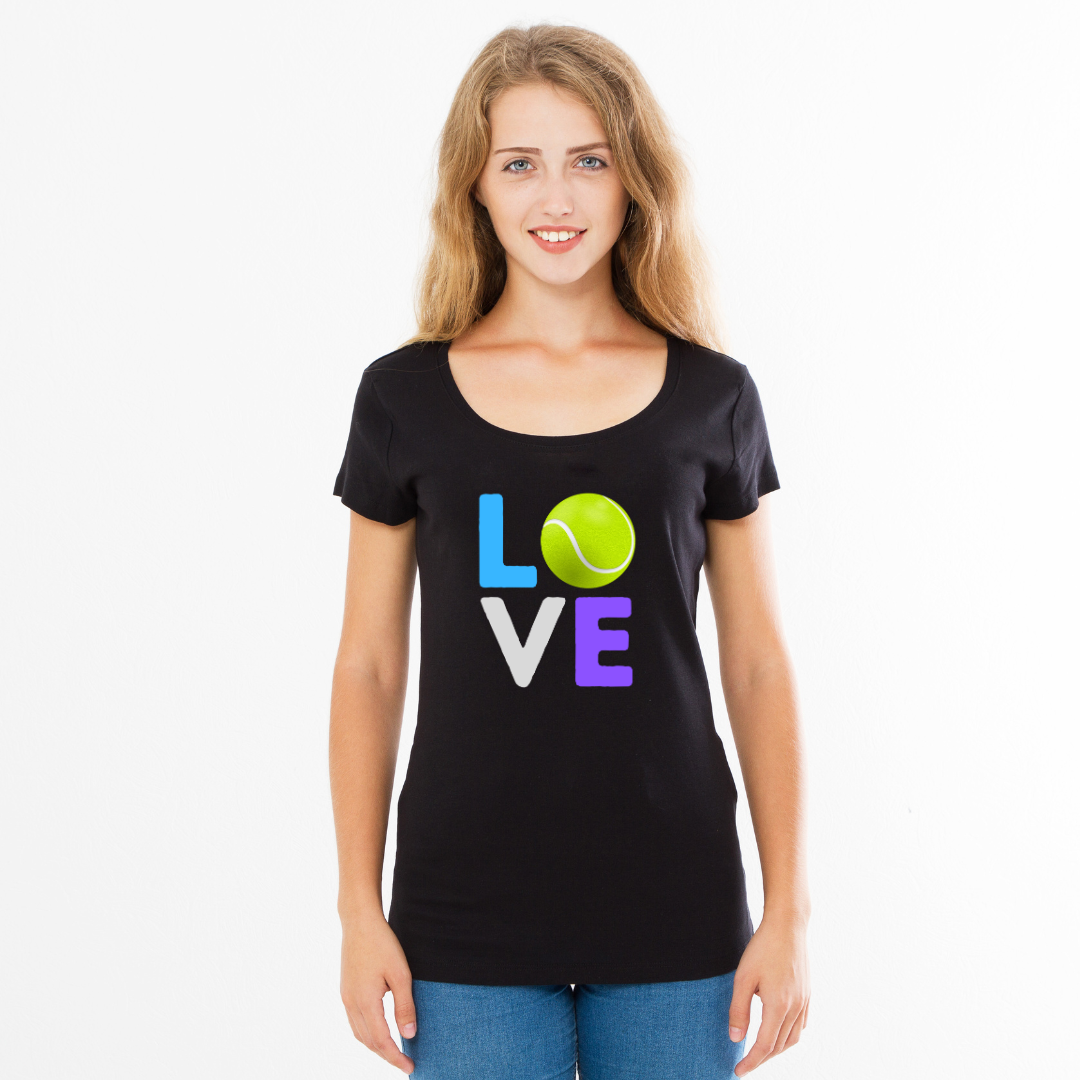 Mostre seu amor pelo tênis com a nossa camiseta feminina exclusiva "LOVE", com um design vibrante que combina as palavras "LOVE" com uma bola de tênis icônica. Ideal para jogadoras de tênis ou amantes do esporte, esta camiseta oferece conforto e estilo em uma única peça. Feita de algodão macio, com corte que se ajusta perfeitamente ao corpo, é a escolha ideal para quem quer praticar esportes ou relaxar com estilo.