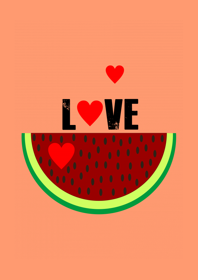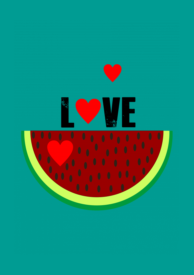love, melancia, coração, estampa colorida.