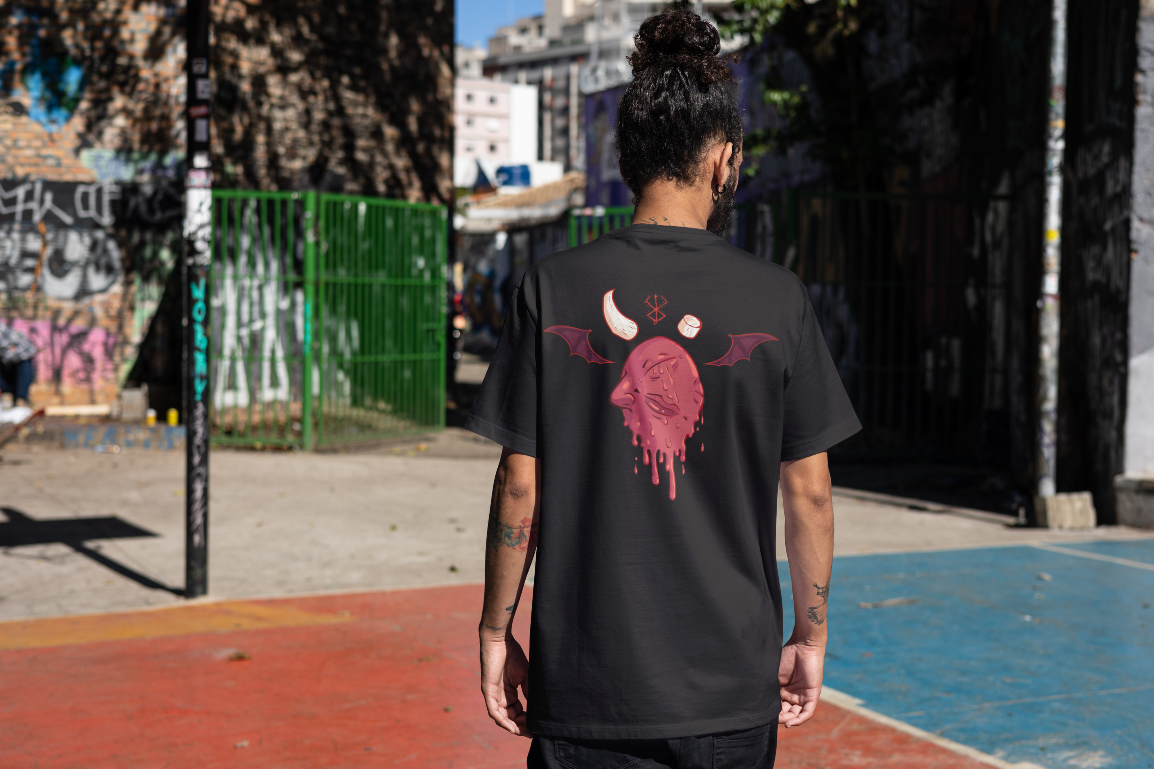 Cores do produto: Como cada tela de computador ou celular tem seu próprio jeito de mostrar cores, então a cor da sua camiseta e da estampa pode ser um pouco diferente do que você viu online.