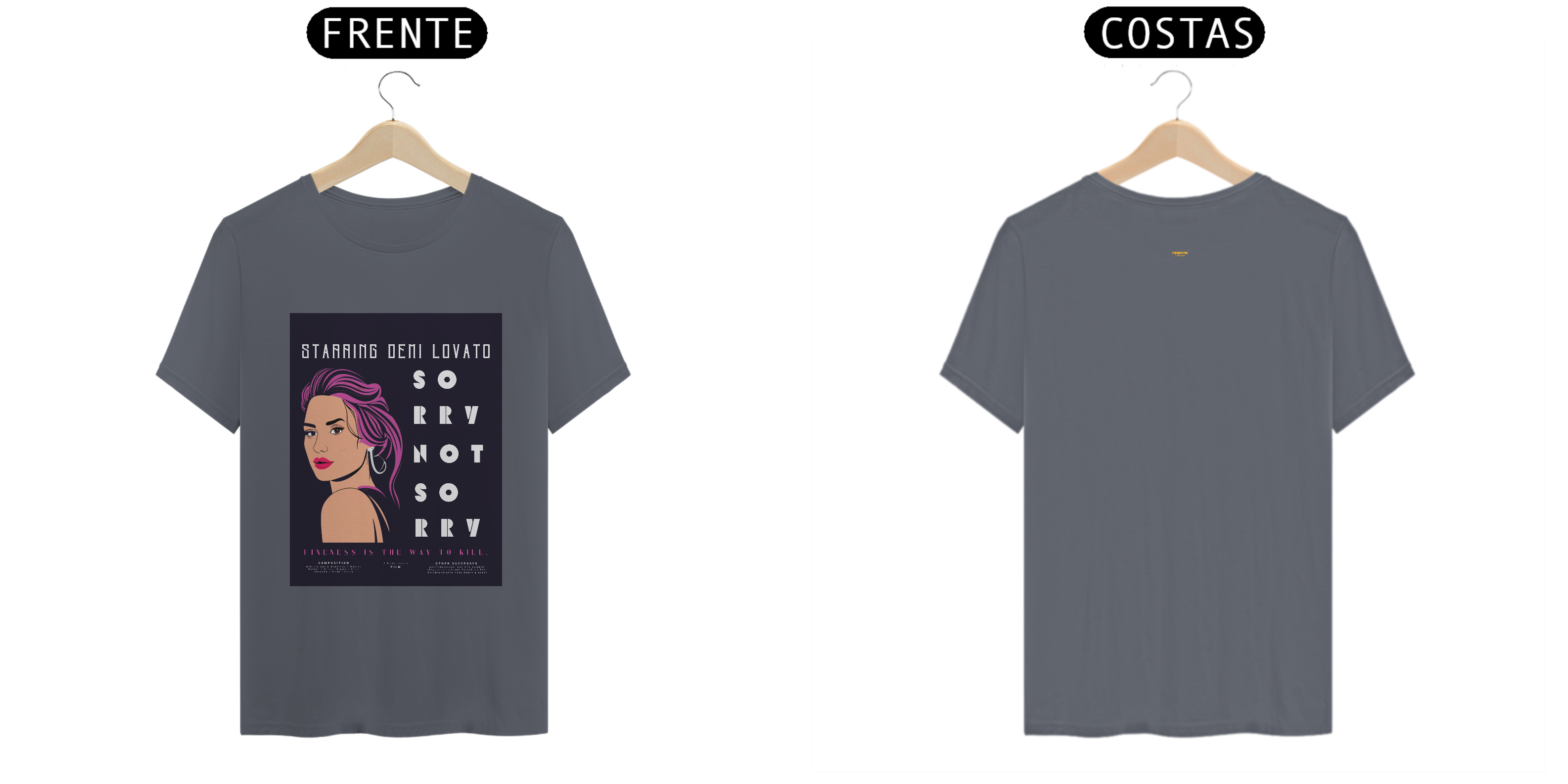 Cores do produto: Como cada tela de computador ou celular tem seu próprio jeito de mostrar cores, então a cor da sua camiseta e da estampa pode ser um pouco diferente do que você viu online.